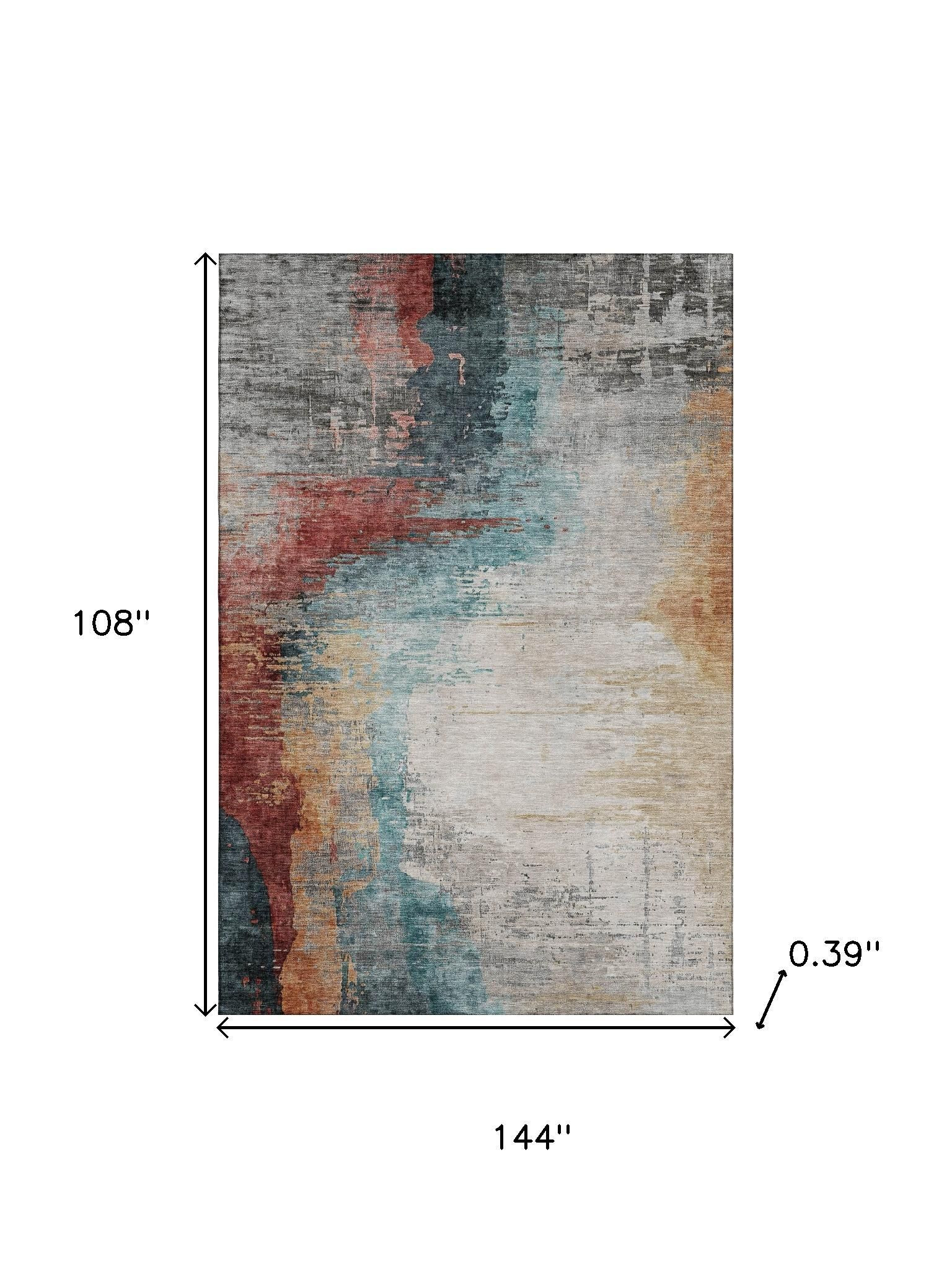 Add great coloration and comfortable texture to your space with this 9-foot x 12-foot teal and mauve abstract washable area rug with uv protection. Ideal for spaces with kids and pets, this rug is stain resistant to help repel dirt and spilled liquids. Built to last, this rug crafted from polyester fibers is known for its durability and long lasting appeal. Rugs are a great way to showcase your style, hide imperfections, warm your home and reduce noise. This larger sized, transitional styled rug is ready to create a focal point or statement piece in your room. 108.00-inch h x 144.00-inch w x 0.39-inch d.