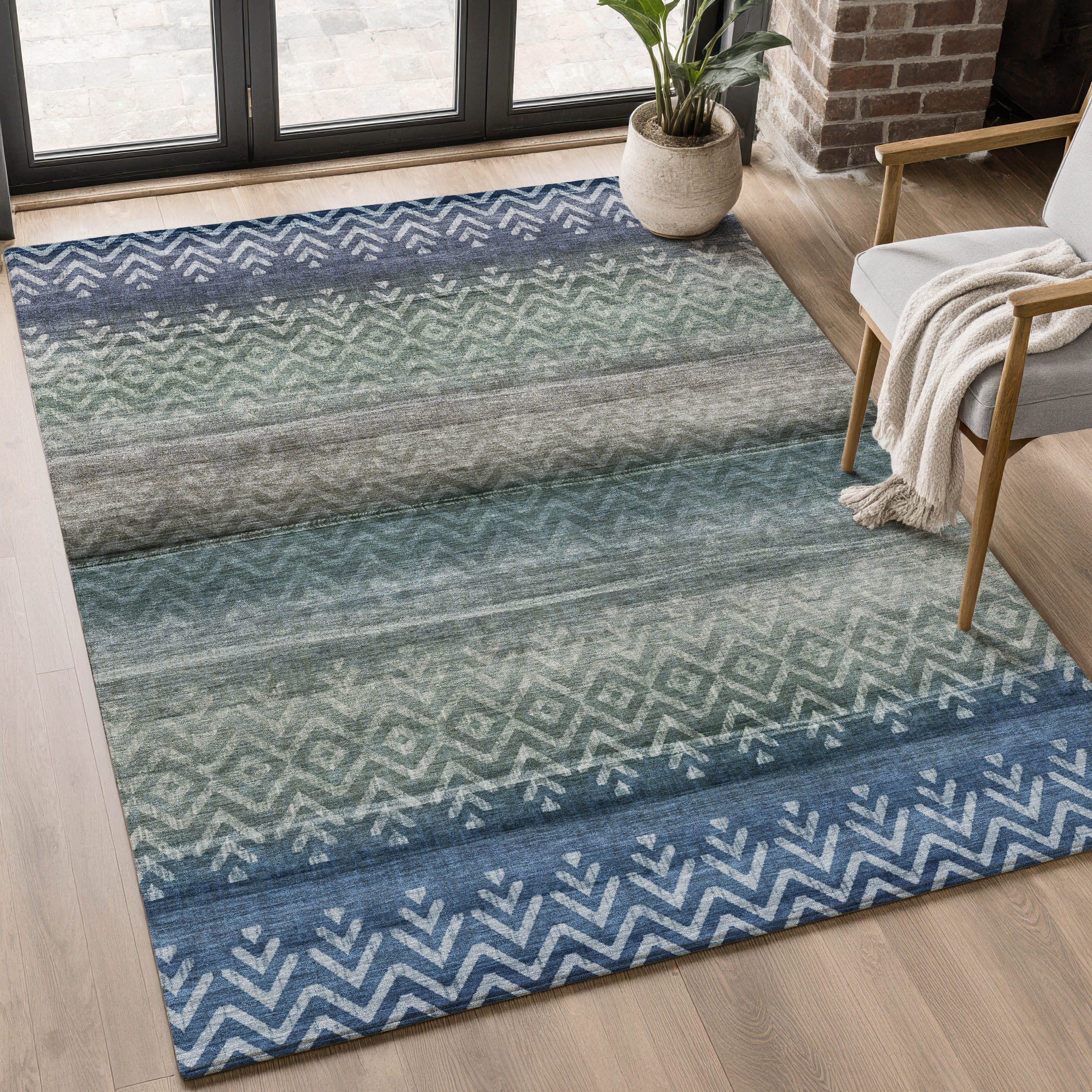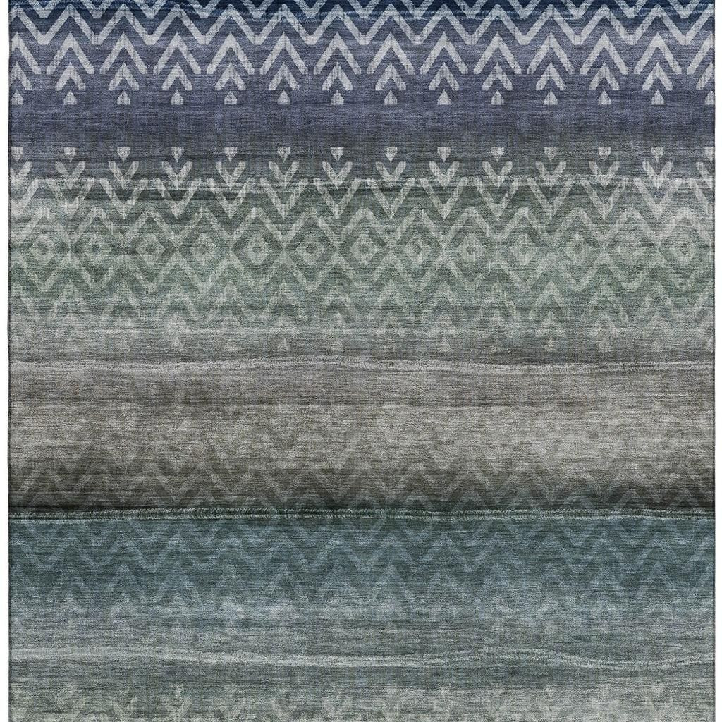 This 5-foot x 8-foot blue and gray geometric washable area rug with uv protection, is a great way to add warmth to a room. Ideal for spaces with kids and pets, this rug is stain resistant to help repel dirt and spilled liquids. Built to last, this rug crafted from polyester fibers is known for its durability and long lasting appeal. Rugs are a great way to showcase your style, hide imperfections, warm your home and reduce noise. This larger sized, transitional styled rug is ready to create a focal point or statement piece in your room. 60.00-inch h x 90.00-inch w x 0.39-inch d.