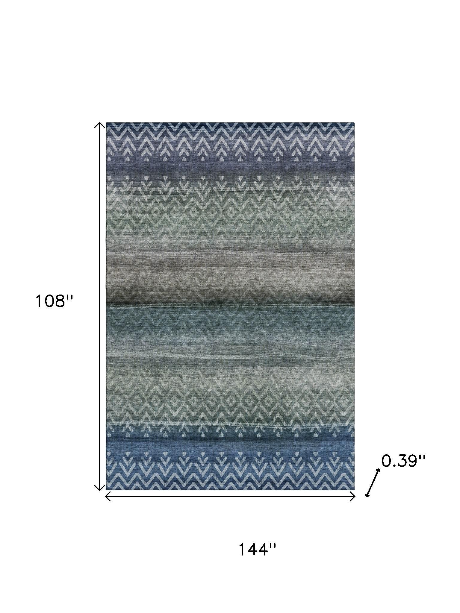 Add great coloration and comfortable texture to your space with this 9-foot x 12-foot blue and gray geometric washable area rug with uv protection. Ideal for spaces with kids and pets, this rug is stain resistant to help repel dirt and spilled liquids. Built to last, this rug crafted from polyester fibers is known for its durability and long lasting appeal. Rugs are a great way to showcase your style, hide imperfections, warm your home and reduce noise. This larger sized, transitional styled rug is ready to create a focal point or statement piece in your room. 108.00-inch h x 144.00-inch w x 0.39-inch d.