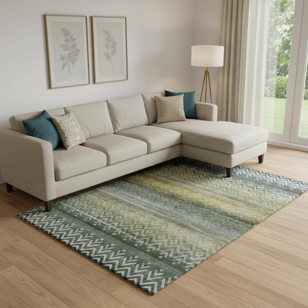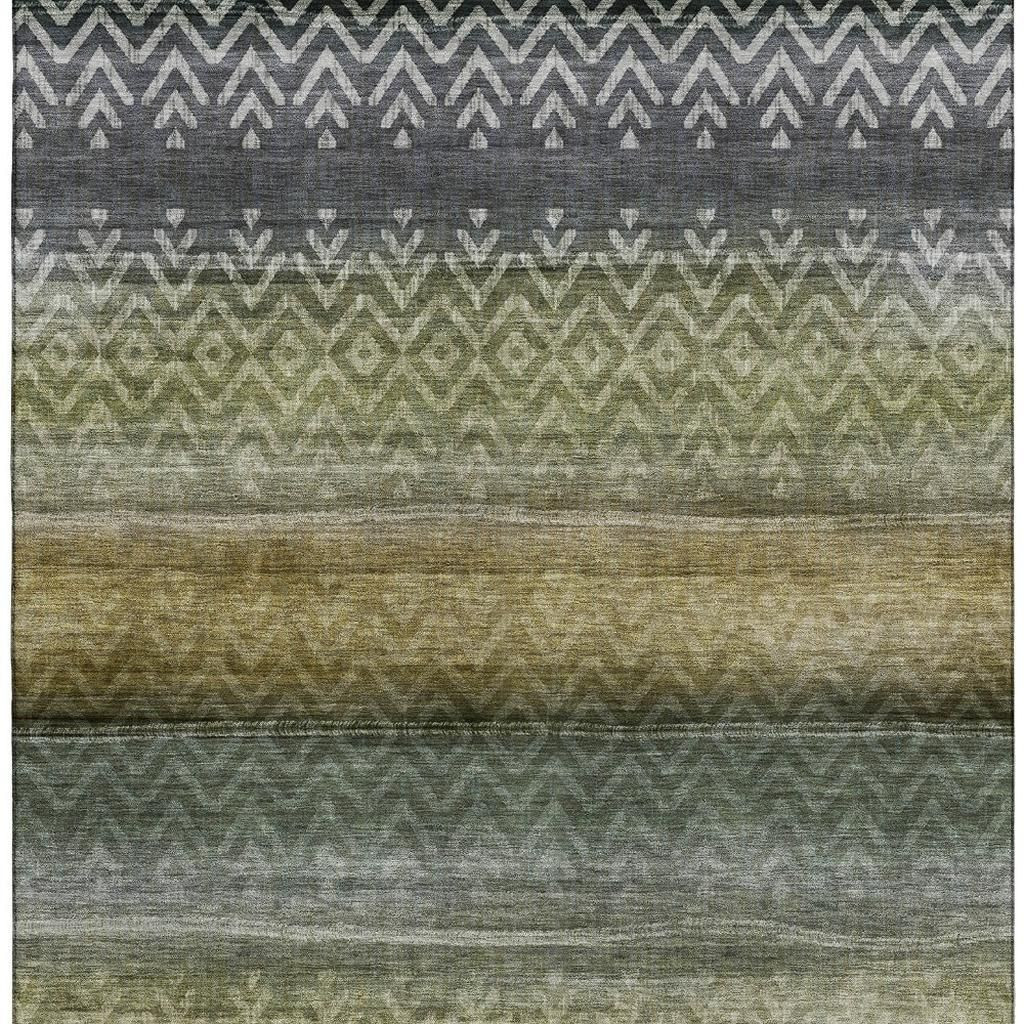 Add some artistry to your room with this 9-foot x 12-foot green and charcoal geometric washable area rug with uv protection. Ideal for spaces with kids and pets, this rug is stain resistant to help repel dirt and spilled liquids. Built to last, this rug crafted from polyester fibers is known for its durability and long lasting appeal. Rugs are a great way to showcase your style, hide imperfections, warm your home and reduce noise. This larger sized, transitional styled rug is ready to create a focal point or statement piece in your room. 108.00-inch h x 144.00-inch w x 0.39-inch d.