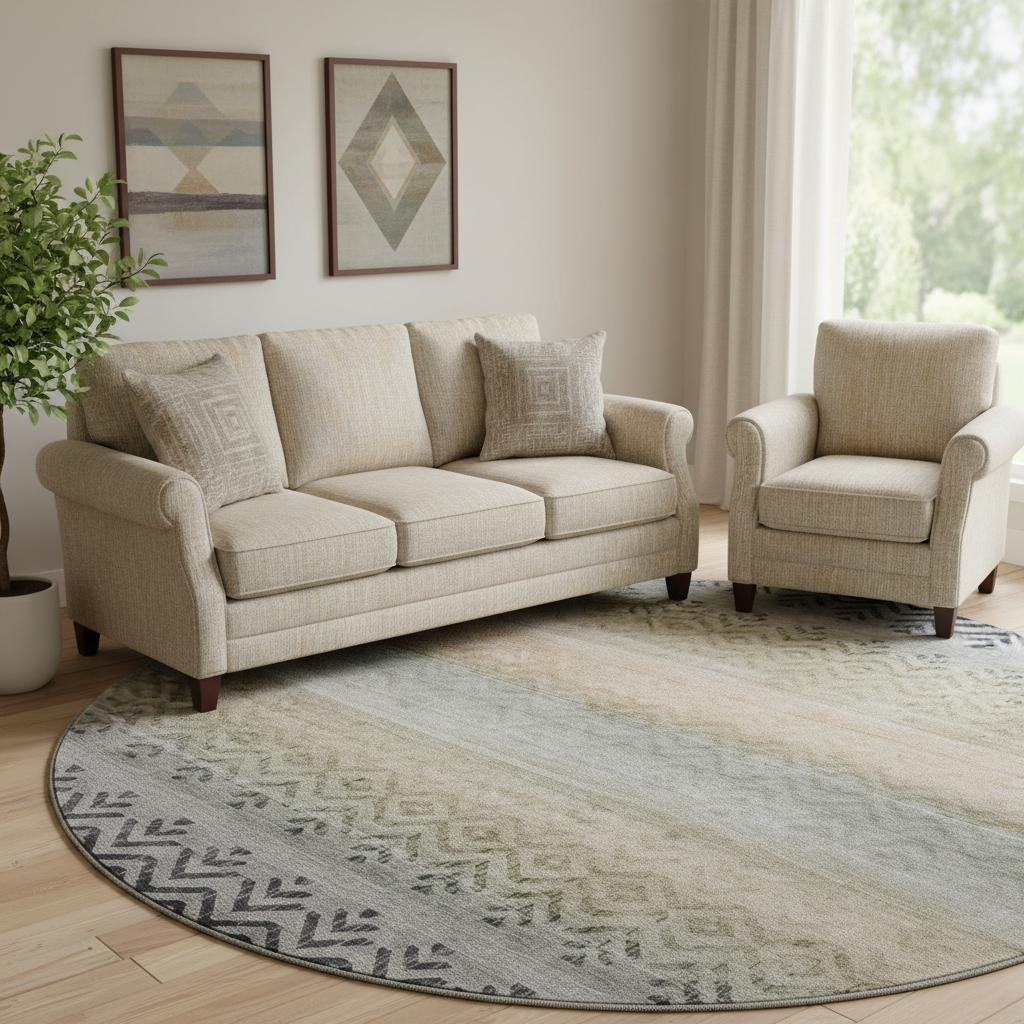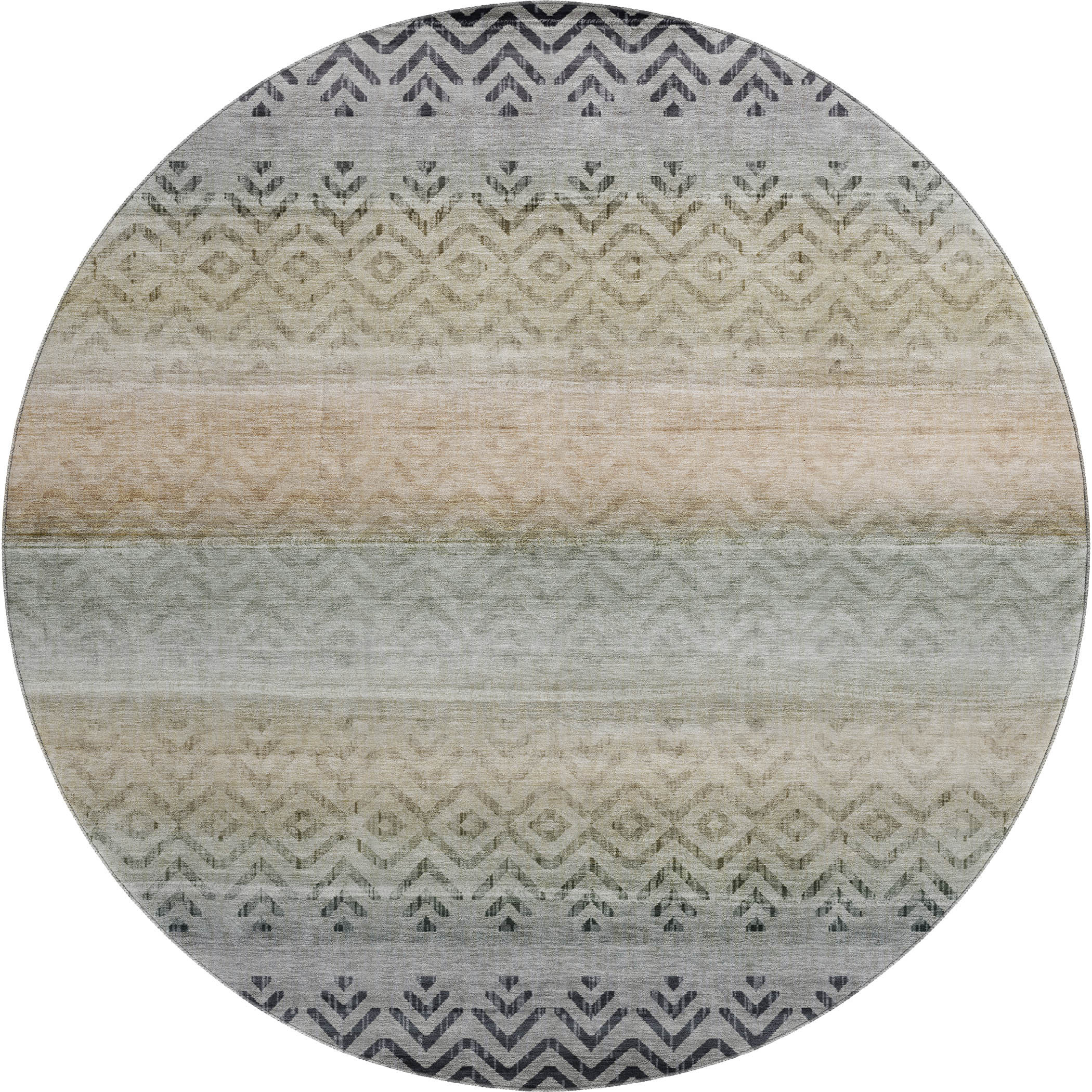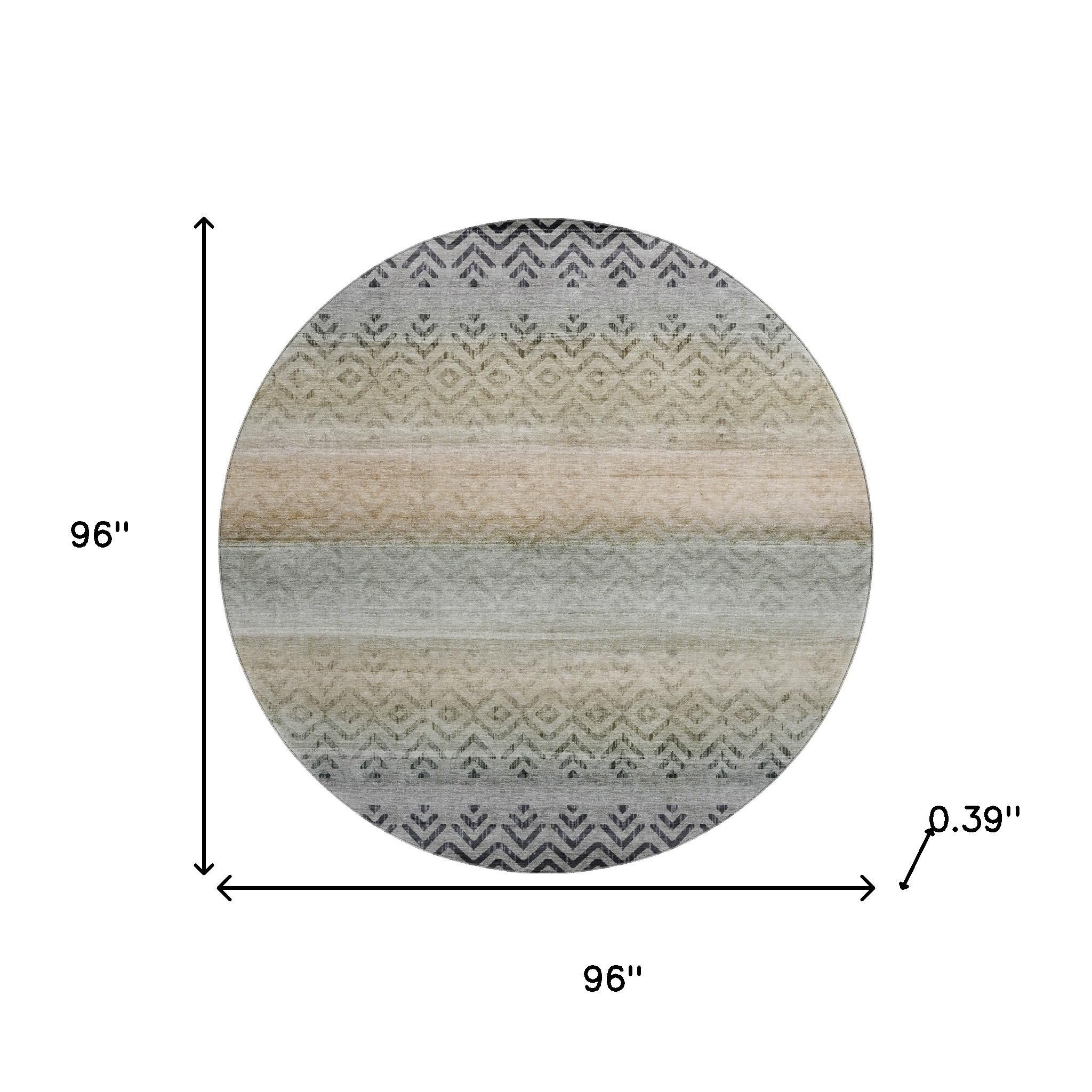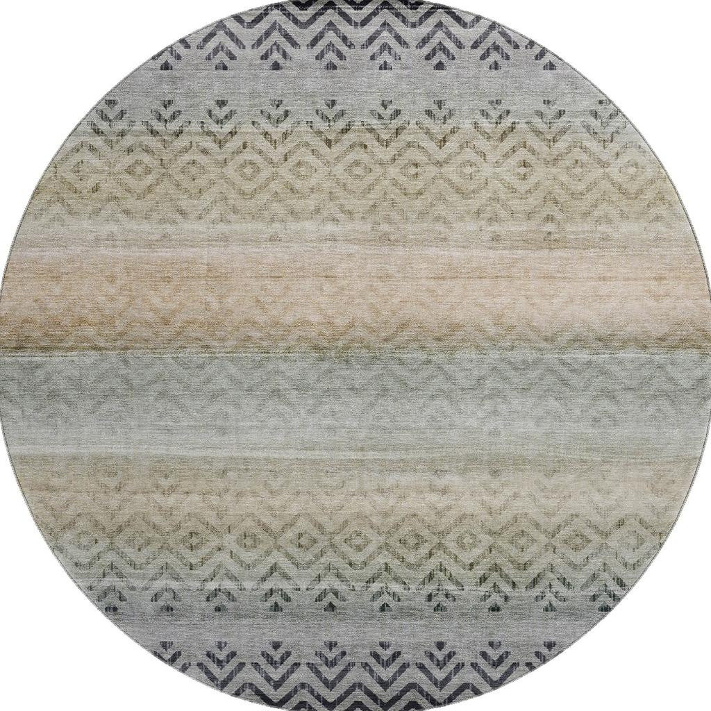 Add great coloration and comfortable texture to your space with this 8-foot gray and charcoal geometric washable round rug with uv protection. Ideal for spaces with kids and pets, this rug is stain resistant to help repel dirt and spilled liquids. Built to last, this rug crafted from polyester fibers is known for its durability and long lasting appeal. Rugs are a great way to showcase your style, hide imperfections, warm your home and reduce noise. This larger sized, transitional styled rug is ready to create a focal point or statement piece in your room. 96.00-inch h x 96.00-inch w x 0.39-inch d.