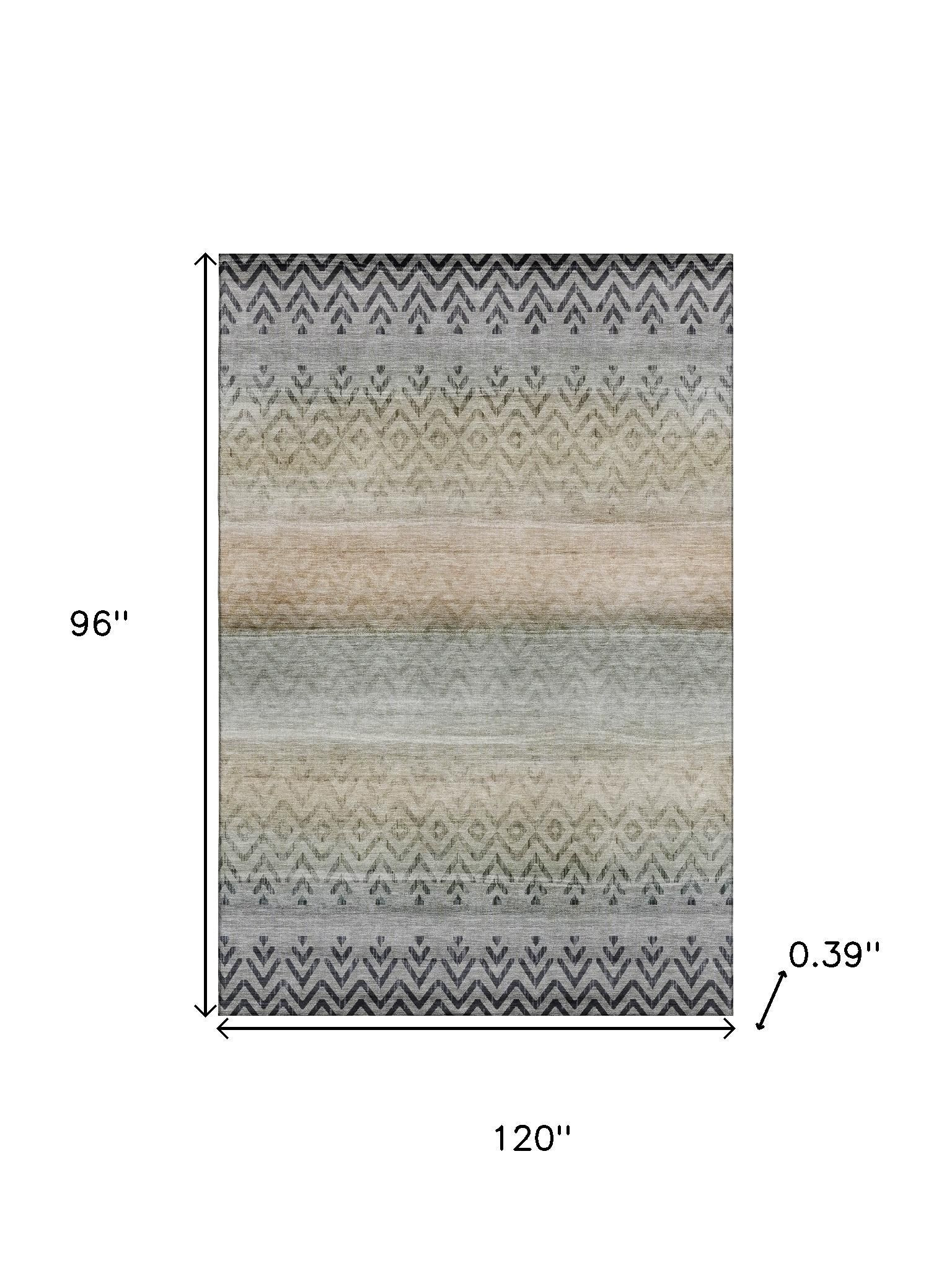 Set an inviting tone in your space with this 8-foot x 10-foot gray and charcoal geometric washable area rug with uv protection. Ideal for spaces with kids and pets, this rug is stain resistant to help repel dirt and spilled liquids. Built to last, this rug crafted from polyester fibers is known for its durability and long lasting appeal. Rugs are a great way to showcase your style, hide imperfections, warm your home and reduce noise. This larger sized, transitional styled rug is ready to create a focal point or statement piece in your room. 96.00-inch h x 120.00-inch w x 0.39-inch d.