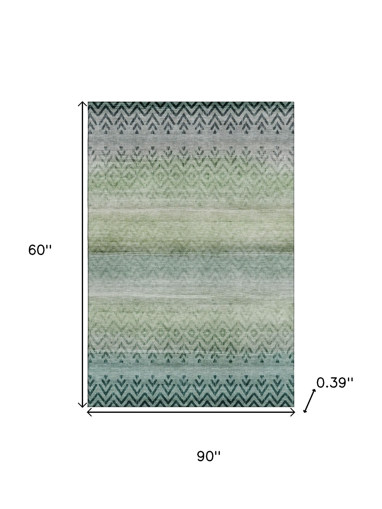 Set an inviting tone in your space with this 5-foot x 8-foot teal and gray geometric washable area rug with uv protection. Ideal for spaces with kids and pets, this rug is stain resistant to help repel dirt and spilled liquids. Built to last, this rug crafted from polyester fibers is known for its durability and long lasting appeal. Rugs are a great way to showcase your style, hide imperfections, warm your home and reduce noise. This larger sized, transitional styled rug is ready to create a focal point or statement piece in your room. 60.00-inch h x 90.00-inch w x 0.39-inch d.