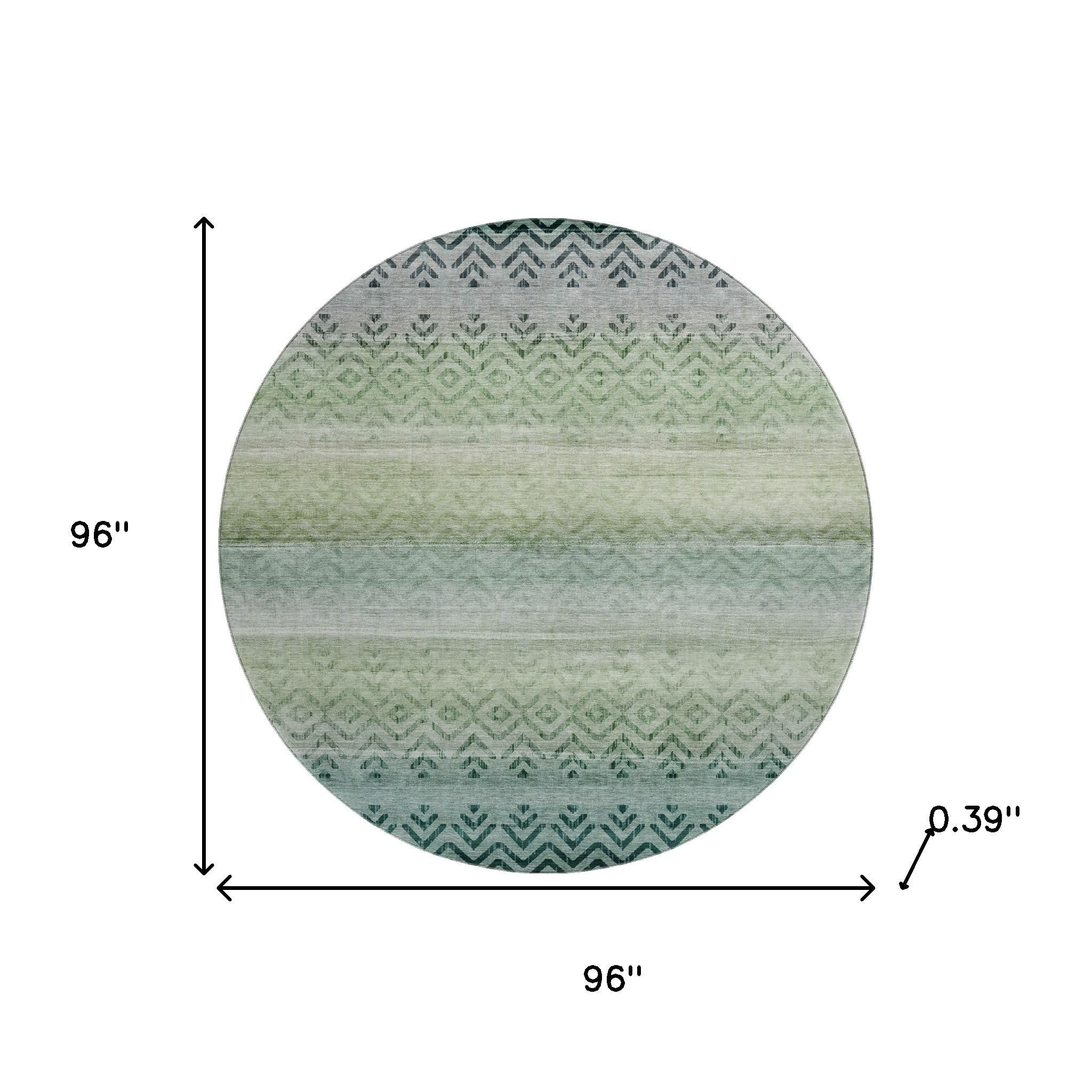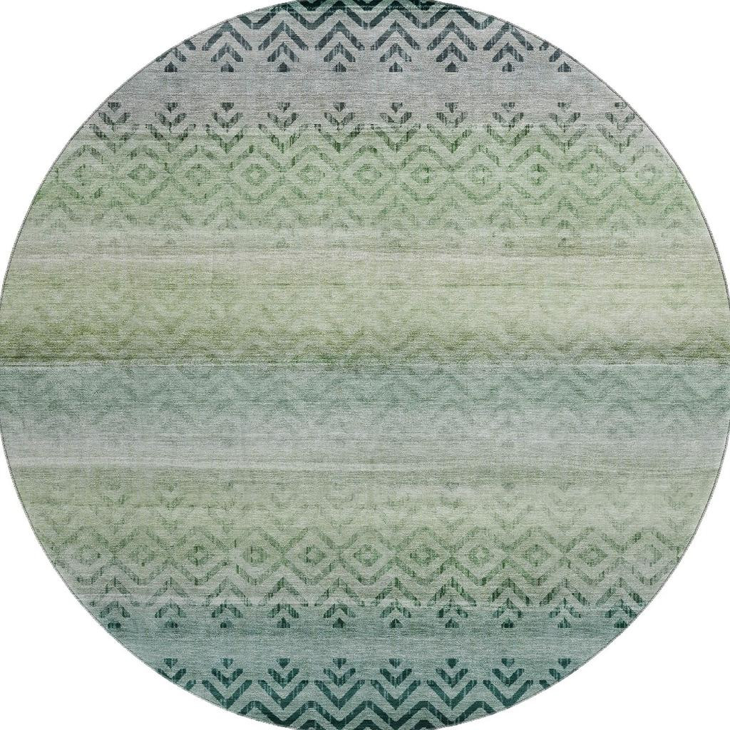 Add great coloration and comfortable texture to your space with this 8-foot teal and gray geometric washable round rug with uv protection. Ideal for spaces with kids and pets, this rug is stain resistant to help repel dirt and spilled liquids. Built to last, this rug crafted from polyester fibers is known for its durability and long lasting appeal. Rugs are a great way to showcase your style, hide imperfections, warm your home and reduce noise. This larger sized, transitional styled rug is ready to create a focal point or statement piece in your room. 96.00-inch h x 96.00-inch w x 0.39-inch d.