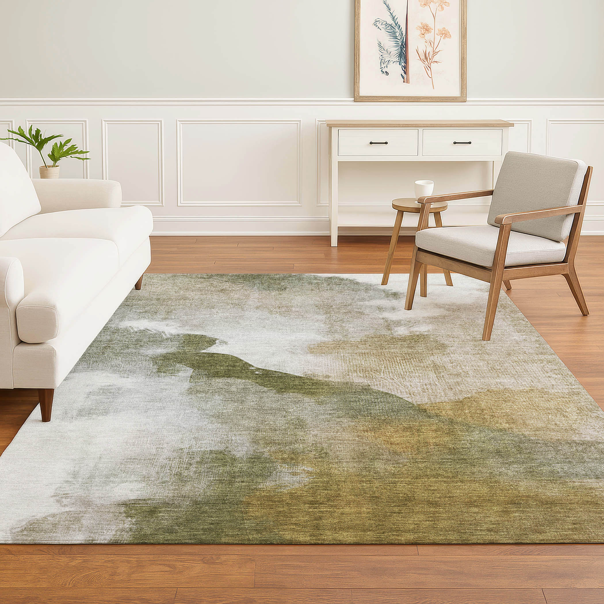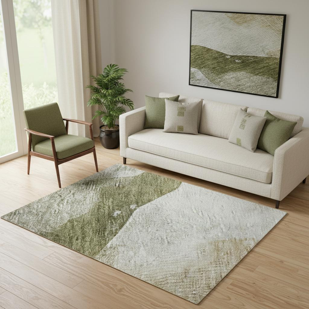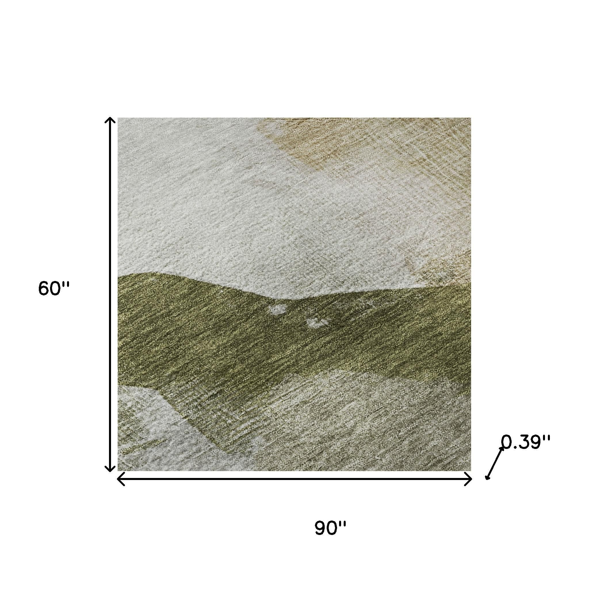 Set an inviting tone in your space with this 5-foot x 8-foot green and ivory abstract washable area rug with uv protection. Ideal for spaces with kids and pets, this rug is stain resistant to help repel dirt and spilled liquids. Built to last, this rug crafted from polyester fibers is known for its durability and long lasting appeal. Rugs are a great way to showcase your style, hide imperfections, warm your home and reduce noise. This larger sized, transitional styled rug is ready to create a focal point or statement piece in your room. 60.00-inch h x 90.00-inch w x 0.39-inch d.