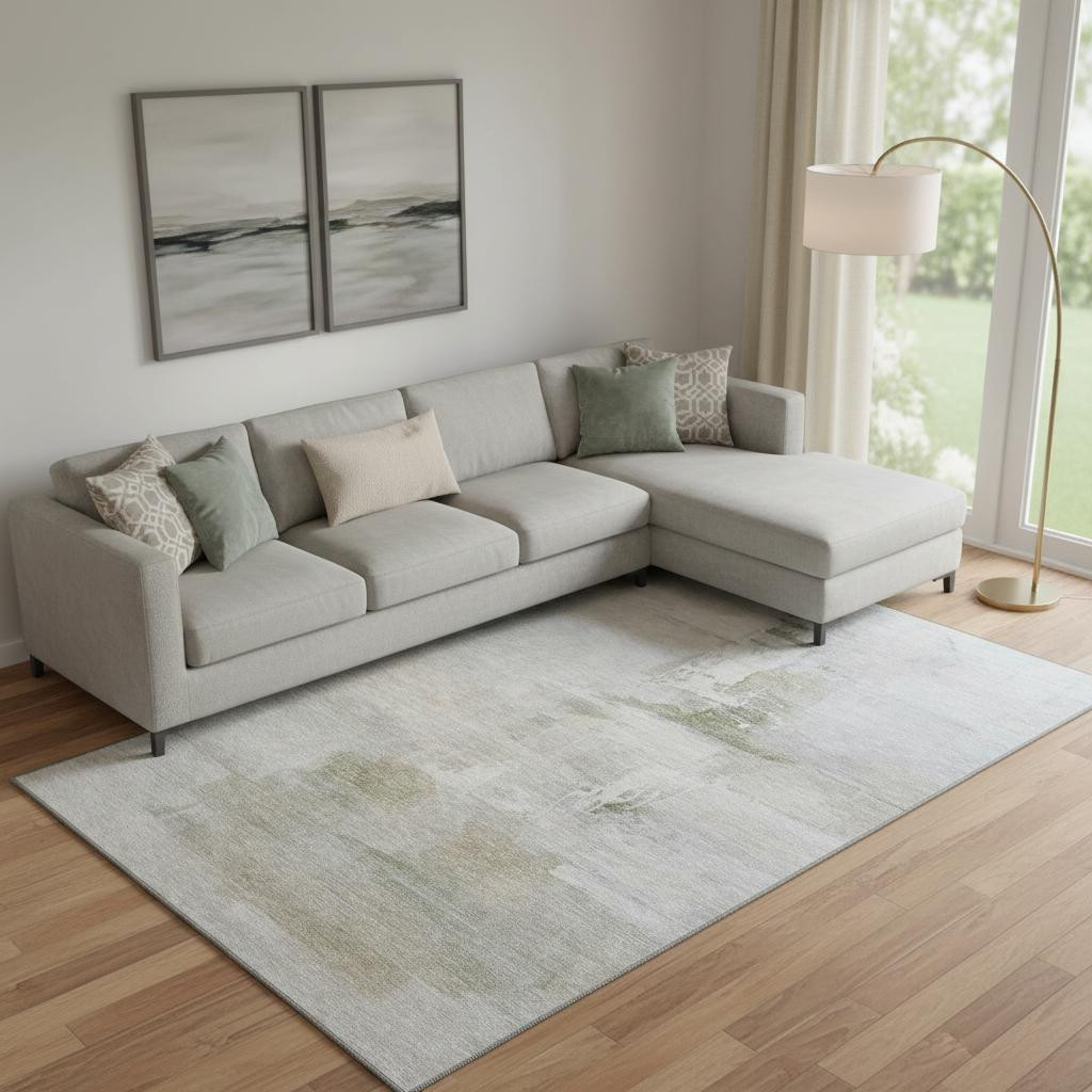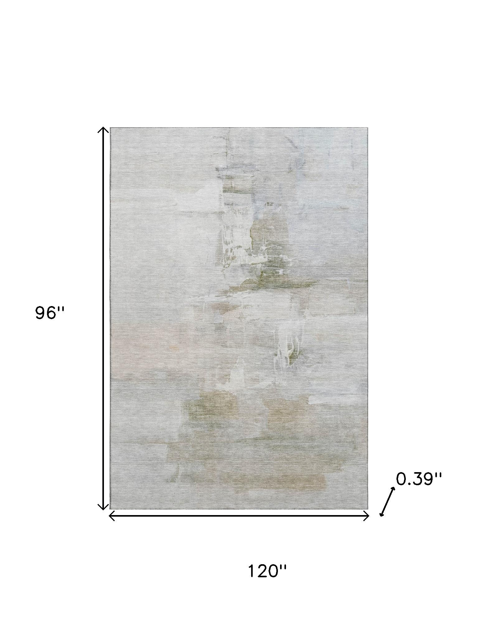 This 8-foot x 10-foot linen and ivory abstract washable area rug with uv protection, is a great way to add warmth to a room. Ideal for spaces with kids and pets, this rug is stain resistant to help repel dirt and spilled liquids. Built to last, this rug crafted from polyester fibers is known for its durability and long lasting appeal. Rugs are a great way to showcase your style, hide imperfections, warm your home and reduce noise. This larger sized, transitional styled rug is ready to create a focal point or statement piece in your room. 96.00-inch h x 120.00-inch w x 0.39-inch d.