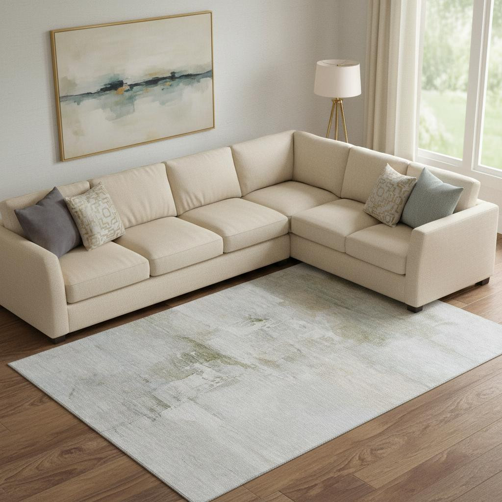 Add great coloration and comfortable texture to your space with this 9-foot x 12-foot linen and ivory abstract washable area rug with uv protection. Ideal for spaces with kids and pets, this rug is stain resistant to help repel dirt and spilled liquids. Built to last, this rug crafted from polyester fibers is known for its durability and long lasting appeal. Rugs are a great way to showcase your style, hide imperfections, warm your home and reduce noise. This larger sized, transitional styled rug is ready to create a focal point or statement piece in your room. 108.00-inch h x 144.00-inch w x 0.39-inch d.