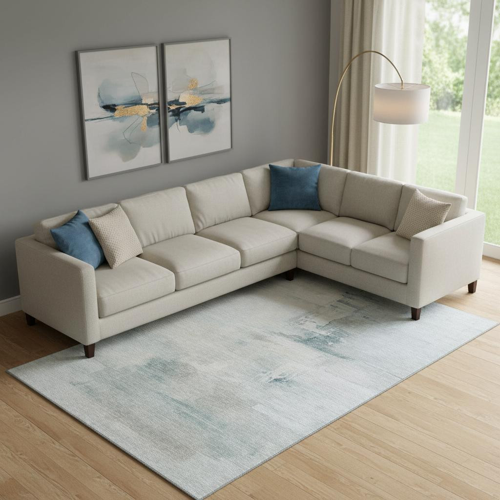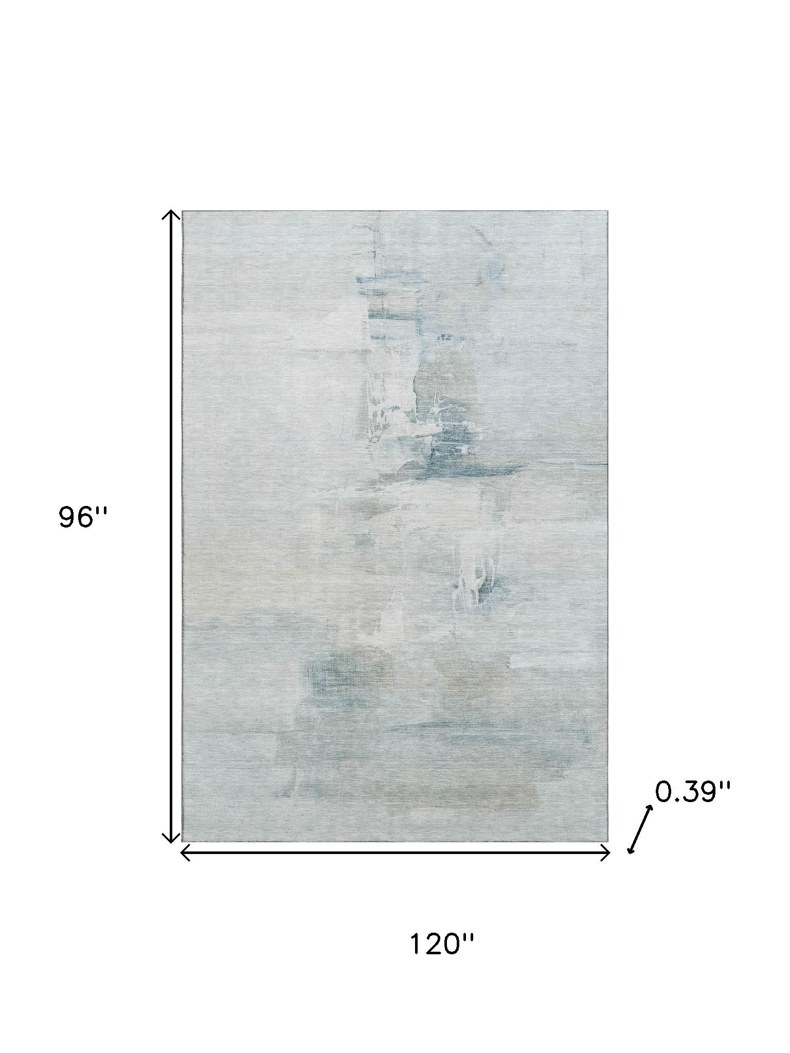 This 8-foot x 10-foot sky blue and ivory abstract washable area rug with uv protection, is a great way to add warmth to a room. Ideal for spaces with kids and pets, this rug is stain resistant to help repel dirt and spilled liquids. Built to last, this rug crafted from polyester fibers is known for its durability and long lasting appeal. Rugs are a great way to showcase your style, hide imperfections, warm your home and reduce noise. This larger sized, transitional styled rug is ready to create a focal point or statement piece in your room. 96.00-inch h x 120.00-inch w x 0.39-inch d.