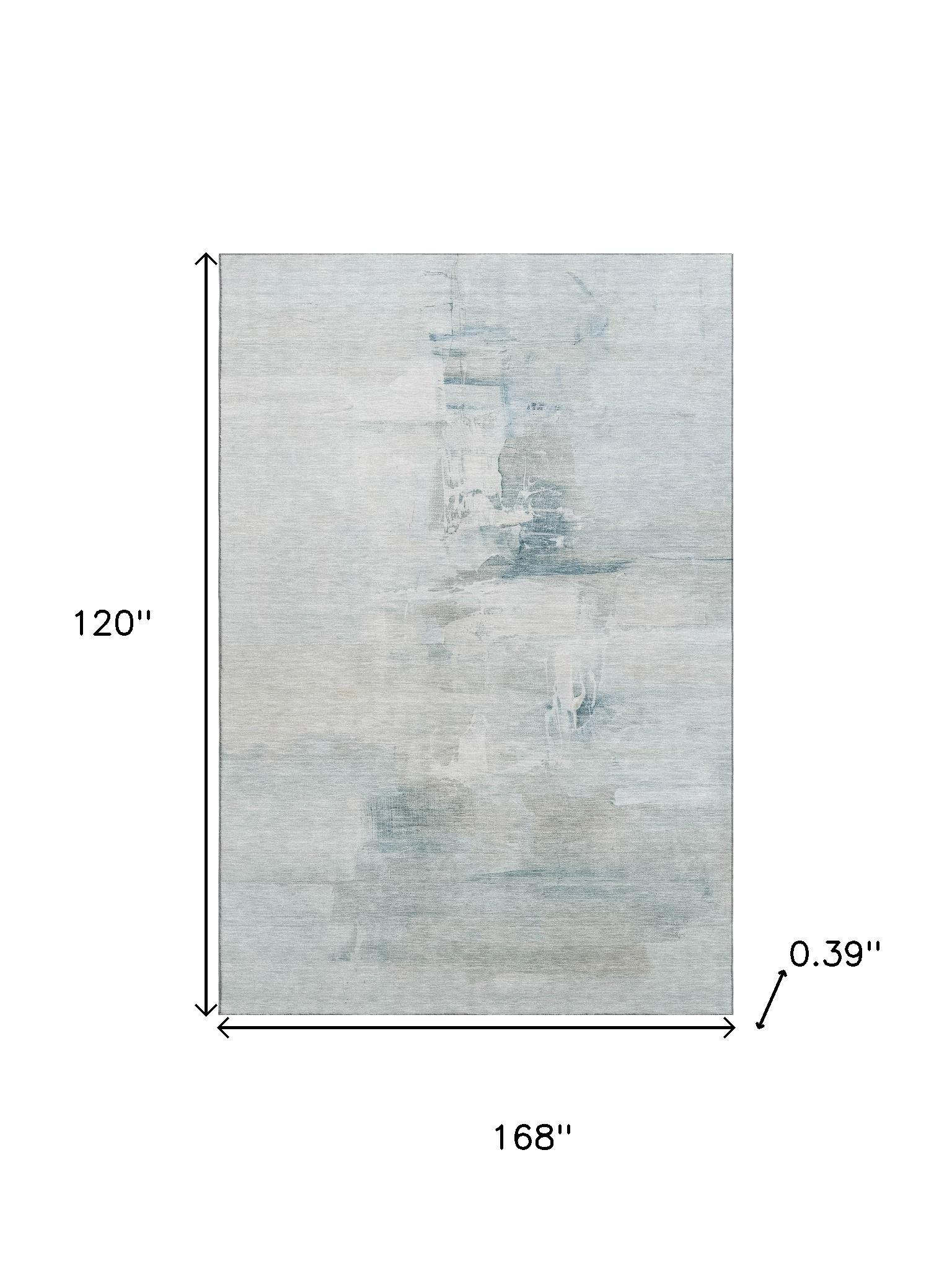 Add some artistry to your room with this 10-foot x 14-foot sky blue and ivory abstract washable area rug with uv protection. Ideal for spaces with kids and pets, this rug is stain resistant to help repel dirt and spilled liquids. Built to last, this rug crafted from polyester fibers is known for its durability and long lasting appeal. Rugs are a great way to showcase your style, hide imperfections, warm your home and reduce noise. This larger sized, transitional styled rug is ready to create a focal point or statement piece in your room. 120.00-inch h x 168.00-inch w x 0.39-inch d.