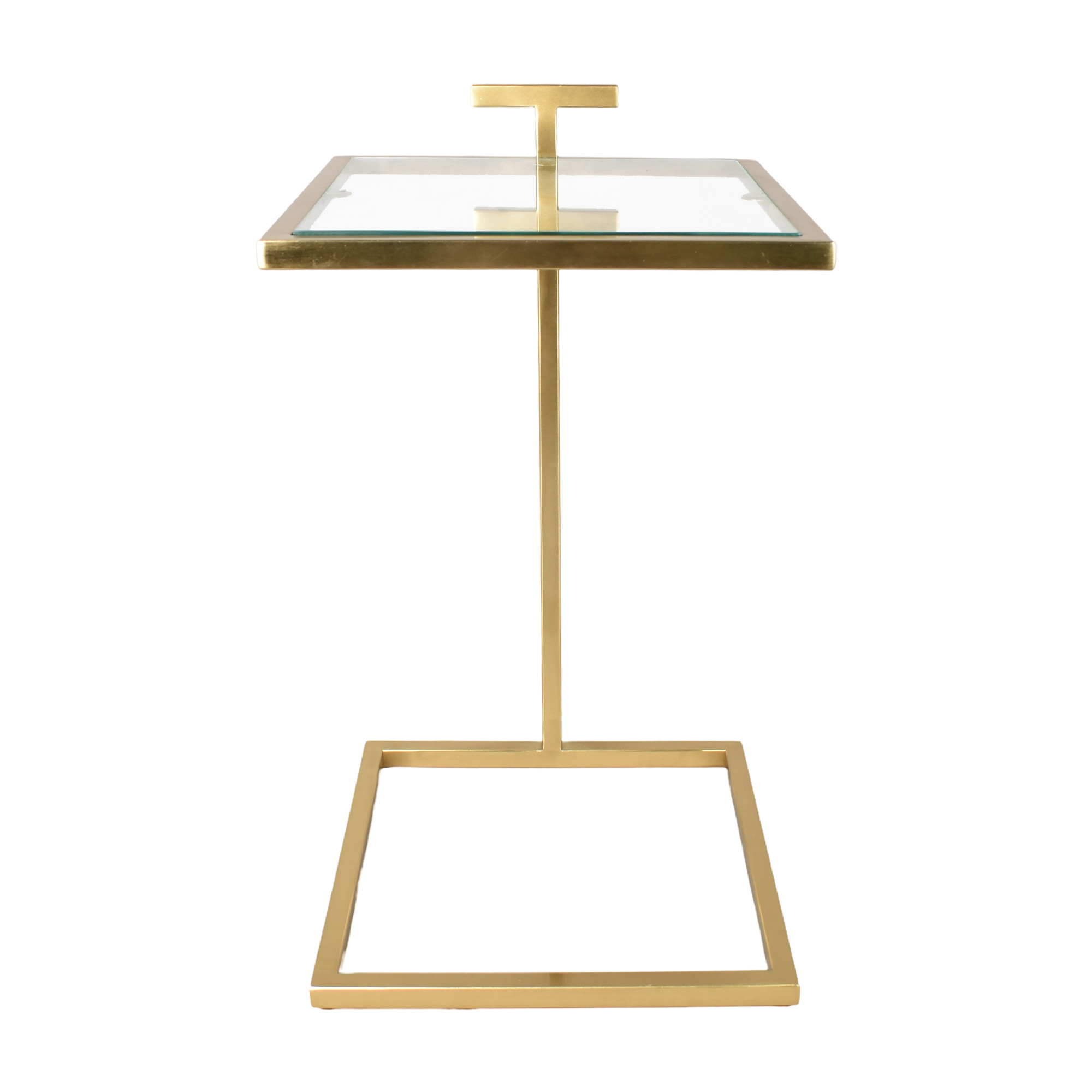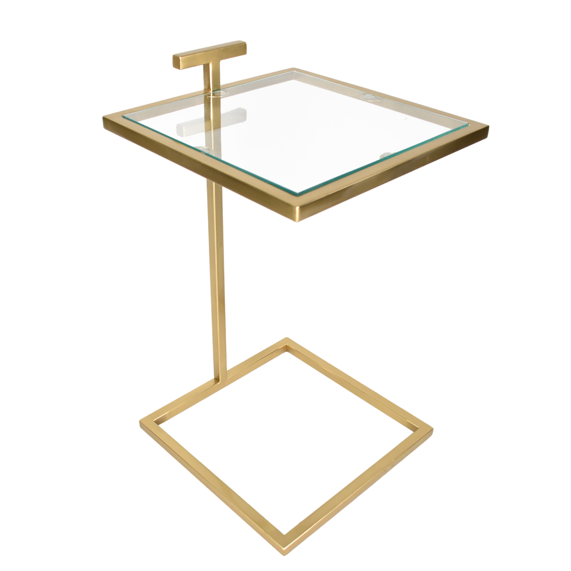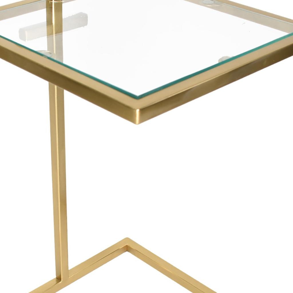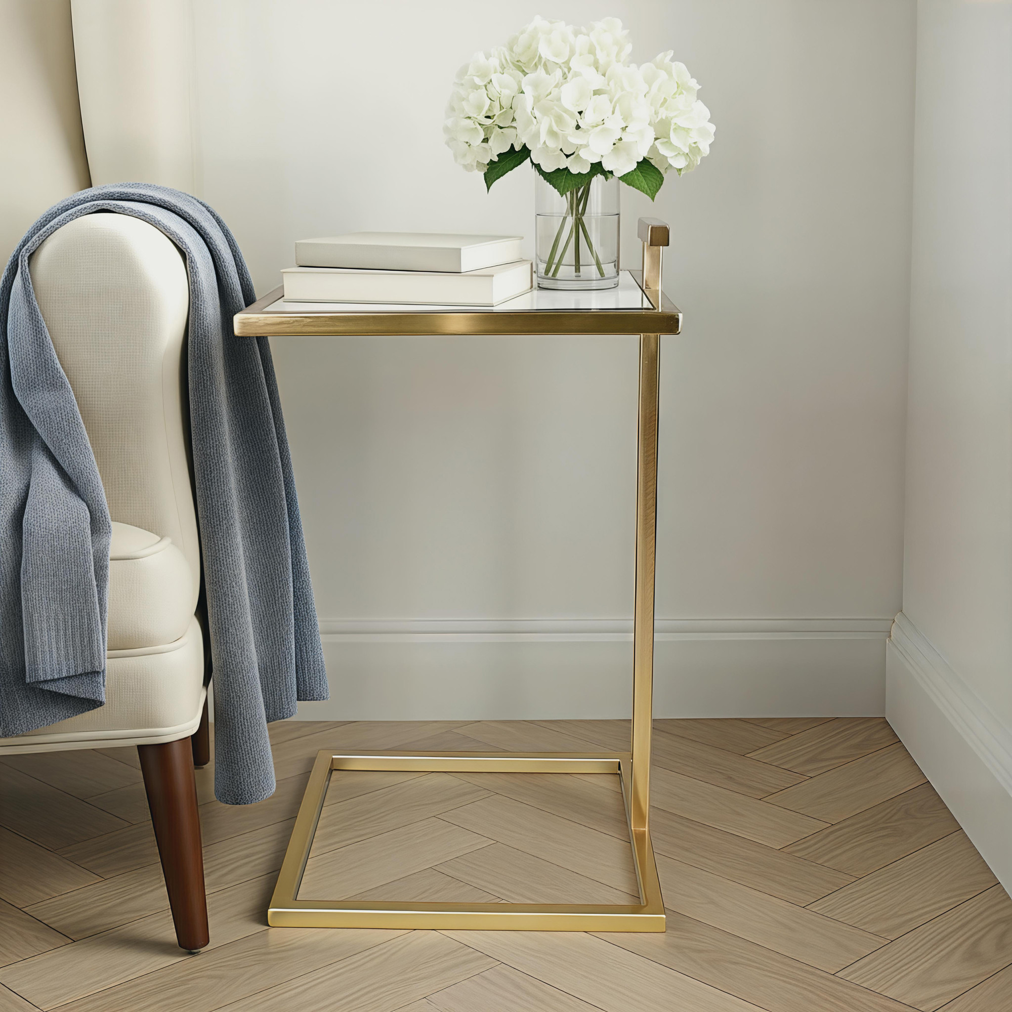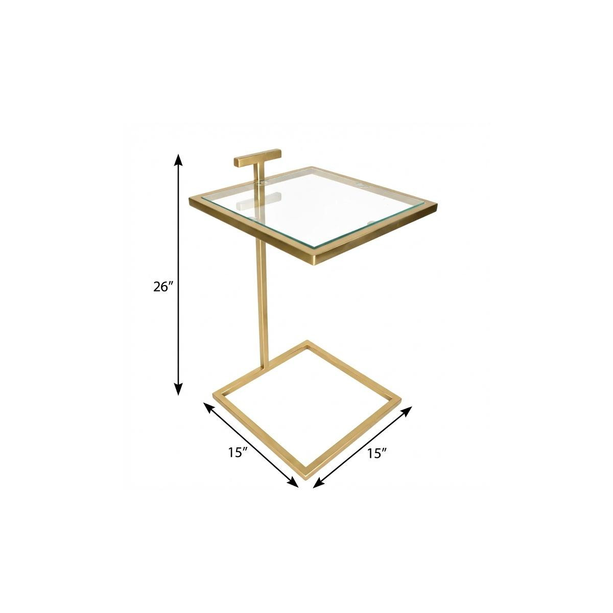 Optimize your space and add some charm to your room with the 26-inch clear and gold tempered glass and iron square end table. Quality construction from the gold iron base combines with clear tempered glass of the top to give this table a fresh and updated look. An ideal location for placing your snacks and drinks, and a place to keep your lamp, frames, or other accessories. This versatile table is a great accent for most any room. 26.00-inch h x 15.00-inch w x 15.00-inch d.