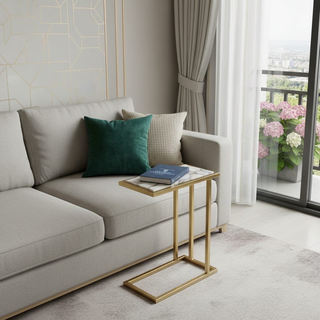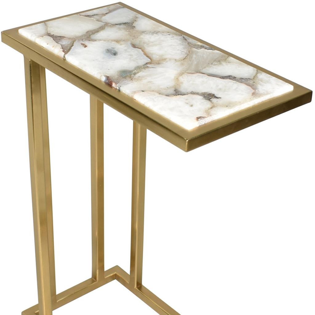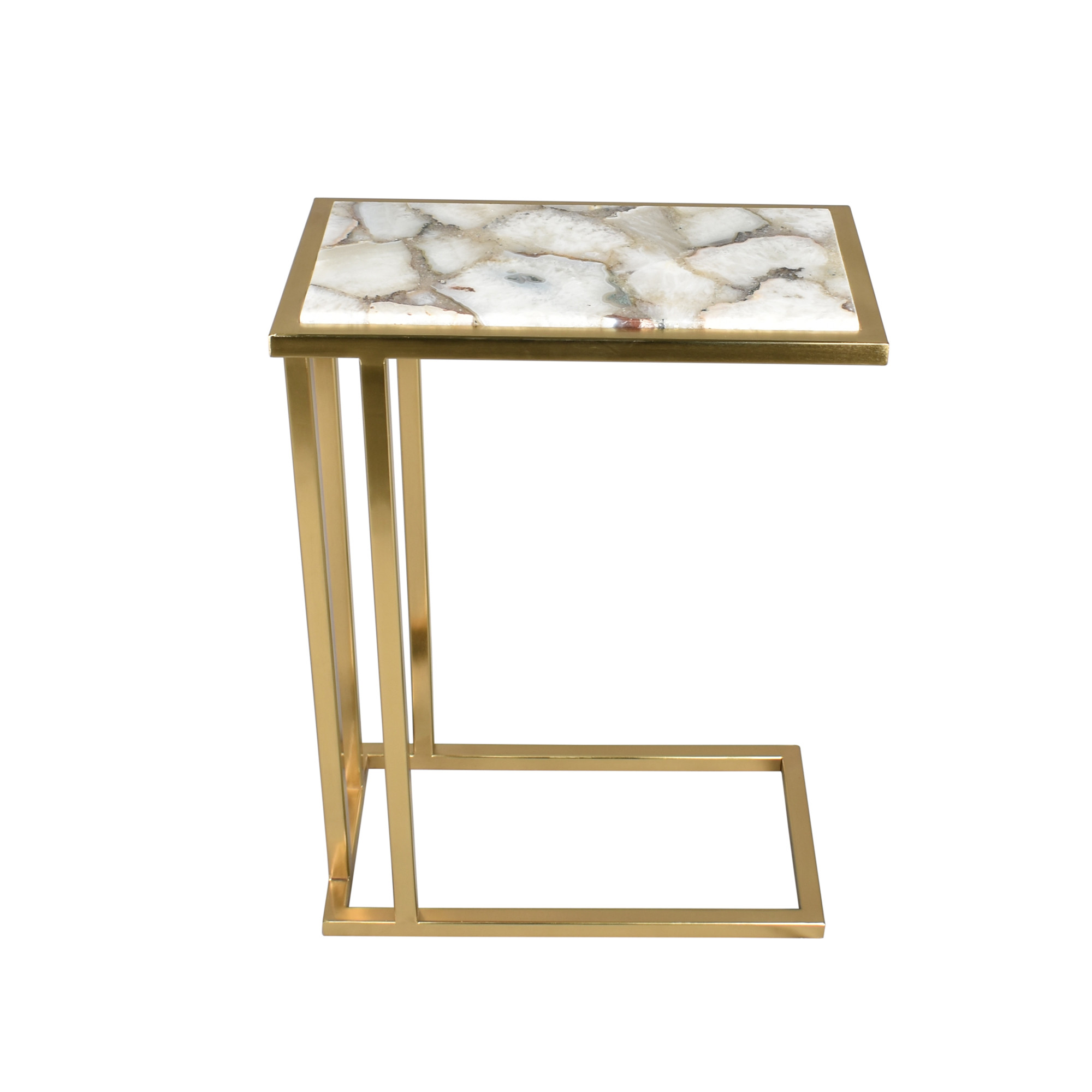 Distinctive in style the 24-inch white and gold marble and iron end table radiates a versatile charm. Quality construction from the gold iron base combines with white marble of the top to give this table a fresh and updated look. A great accent on either side of the sofa or bed, this adorable end or side table is just what you need. You can match it with other pieces to get the ideal look for your place. 24.00-inch h x 9.75-inch w x 17.70-inch d.