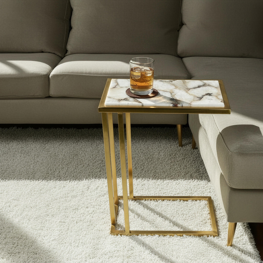 white iron marble end table, iron marble end table, 24" gold white iron marble, marble end table, gold white iron marble end |