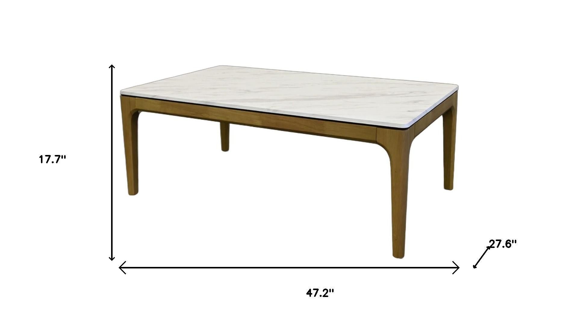 Make your living room or family room really stand out with this 47-inch white and natural faux marble and solid wood coffee table. A natural solid wood frame is finished off with a white faux marble top that is the epitome of quality construction and design. This rectangular table is an classic yet updated way to accent your room. It has an attractive design that will definitely breathe some fresh air into your interior. 17.70-inch h x 47.20-inch w x 27.60-inch d.
