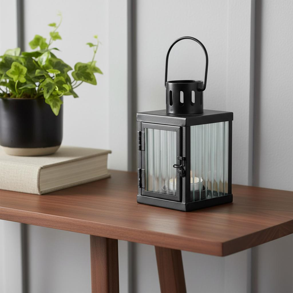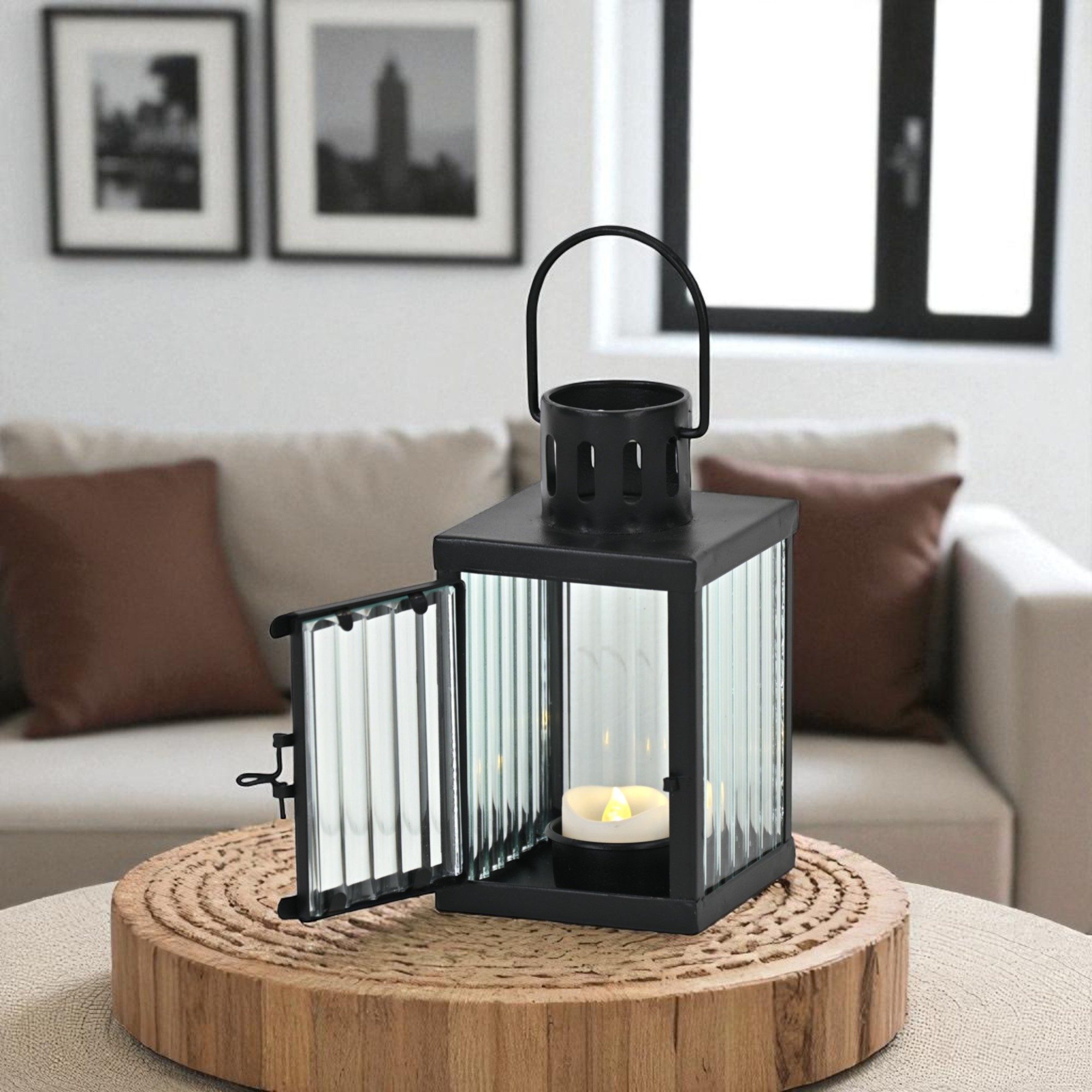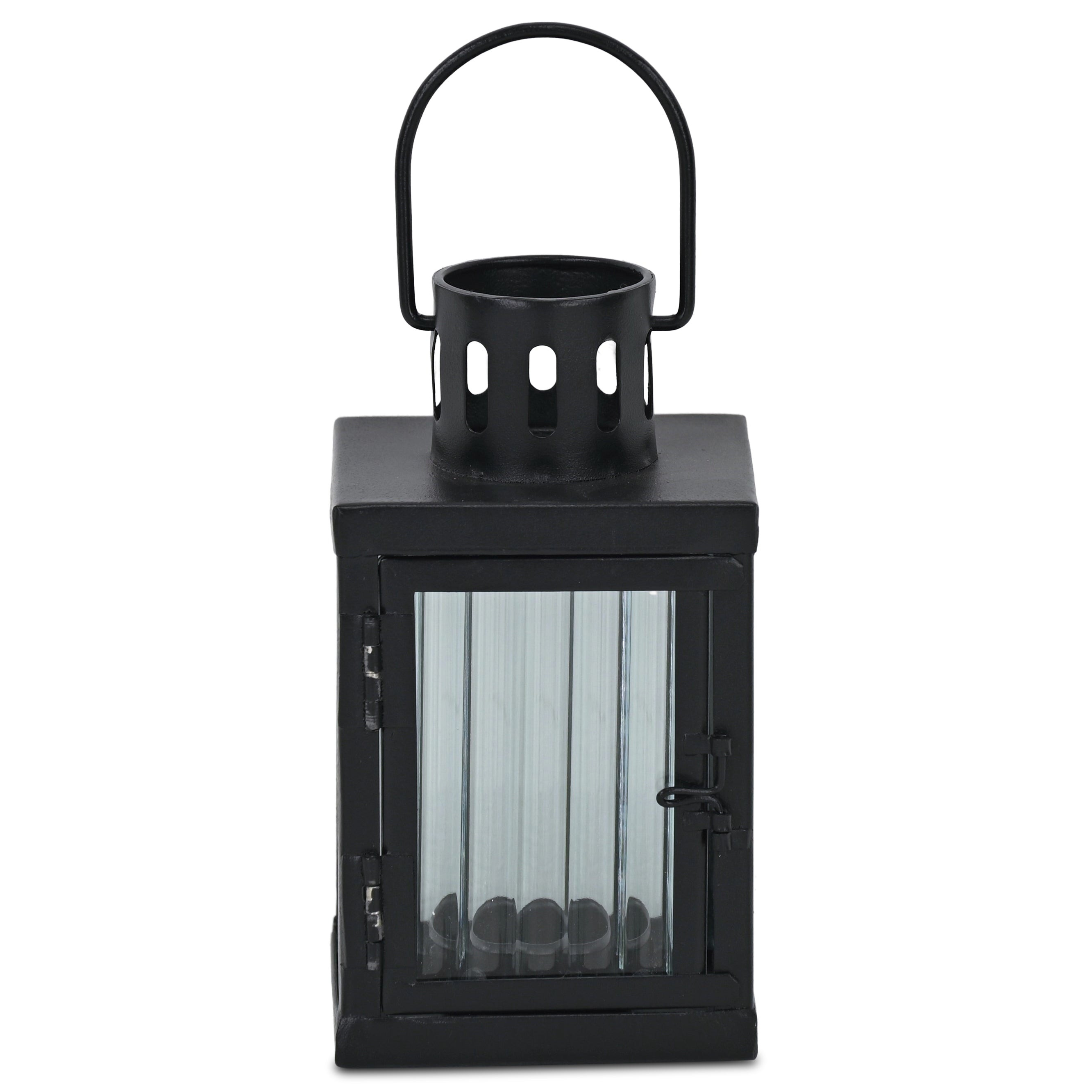 You can showcase this 7-inch black metal tabletop lantern candle holder on its own as alternative centerpieces or position it among flower arrangements on your tables. A perfect functional and decorative accent piece for weddings, dining tables and living rooms alike. Handmade by skilled craftsmen and designed to add a glamorous glow to any event or table setting. Dress up your home to impress every season with this fabulous candleholder. Candleholders are an attractive way to turn a simple candle into a piece of décor. 6.75-inch h x 3.50-inch w x 3.50-inch d.
