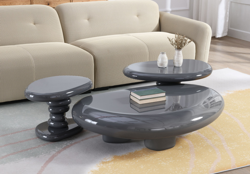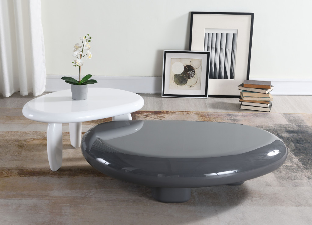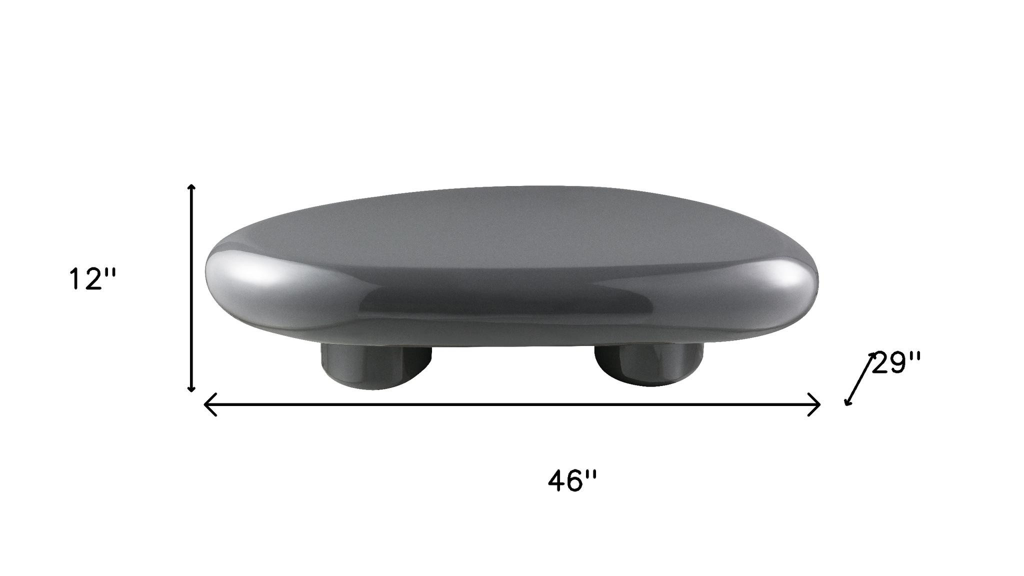 Make a statement with the 46-inch gray wood and steel oval coffee table and infuse a dash of character and personality into your space. This low profile table features an updated monotone color scheme with gray as the main color on both the top and base. This oval table features an updated take on a classic with its curvy edges and high gloss finish. It has an attractive contemporary design that will definitely breathe some fresh air into your interior. 12.00-inch h x 46.00-inch w x 29.00-inch d.