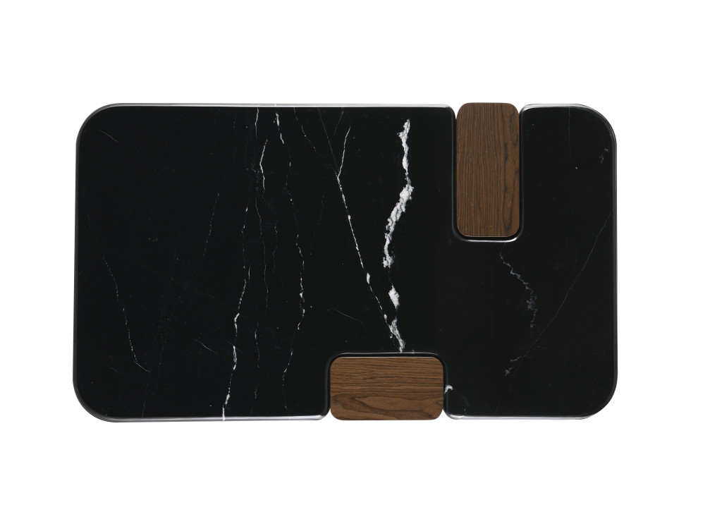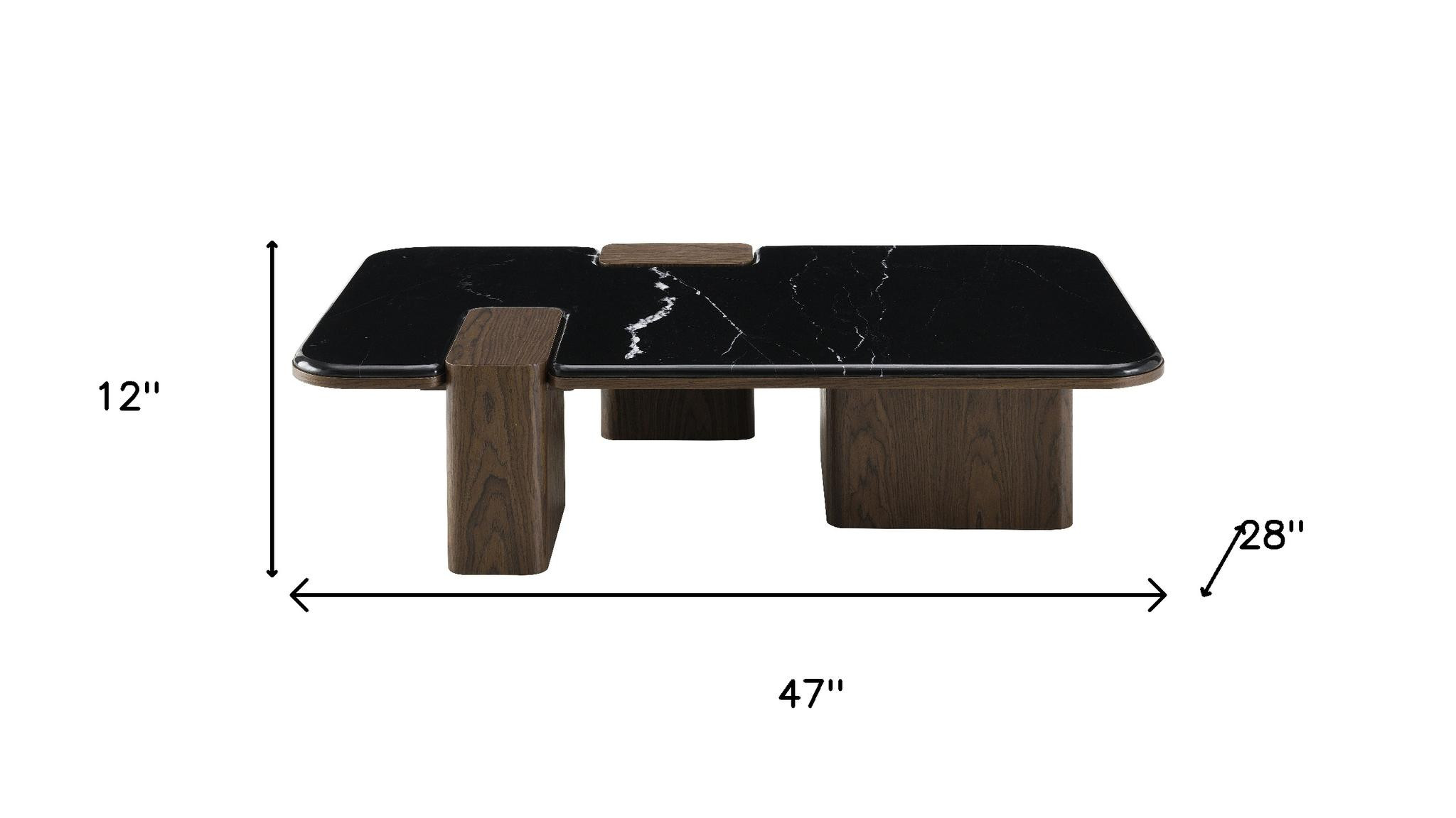 Give your living room, family room, or office the perfect anchor piece with this 47-inch black and walnut genuine marble and wood coffee table. A walnut solid and manufactured wood frame is finished off with a black genuine marble top that is the epitome of quality construction and design. This rectangular table is an classic yet updated way to accent your room. If you're looking for something that can fit into a living area, bedroom, or office, this coffee table is for you. 12.00-inch h x 47.00-inch w x 28.00-inch d.