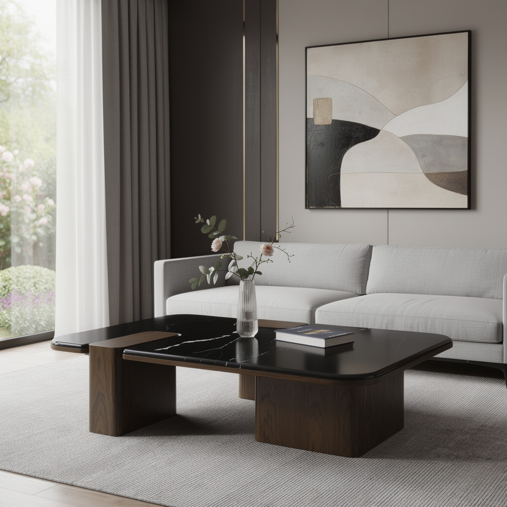 genuine marble wood coffee table, 47" black walnut genuine marble, marble wood coffee table, black walnut genuine marble wood, walnut genuine marble wood coffee |