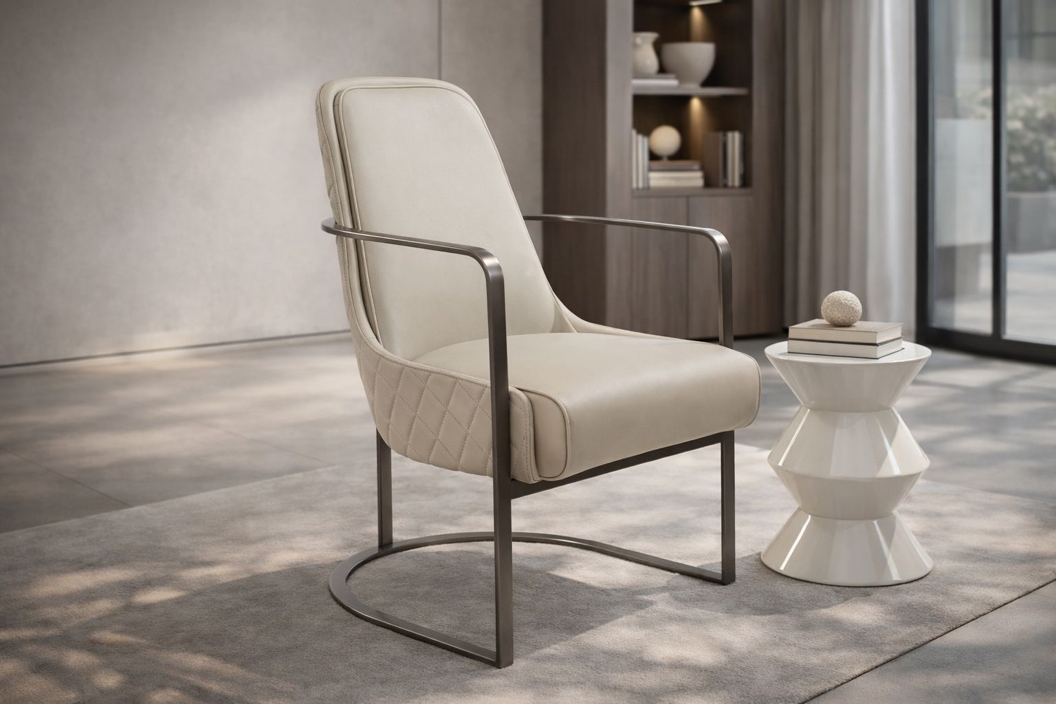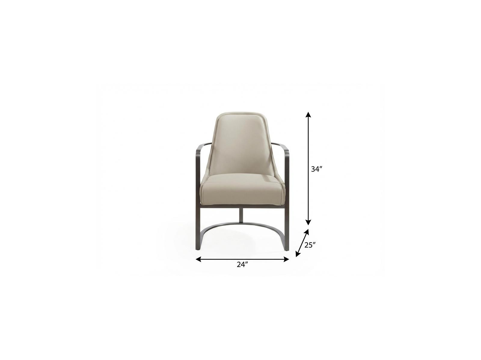 Unique and decorative, this 24-inch gray faux leather and metal lounge chair will leave a lasting impression. Built to last this lounge chair is finished in solid gray faux leather to give your room a great update. The high quality metal inner frame flaunts convenient armrests and a tight back that are complimented by soft and comfortable cushioning. 34.00-inch h x 24.00-inch w x 25.00-inch d.