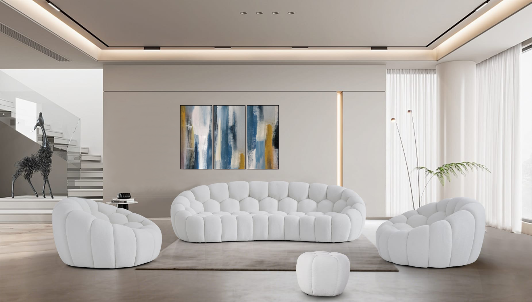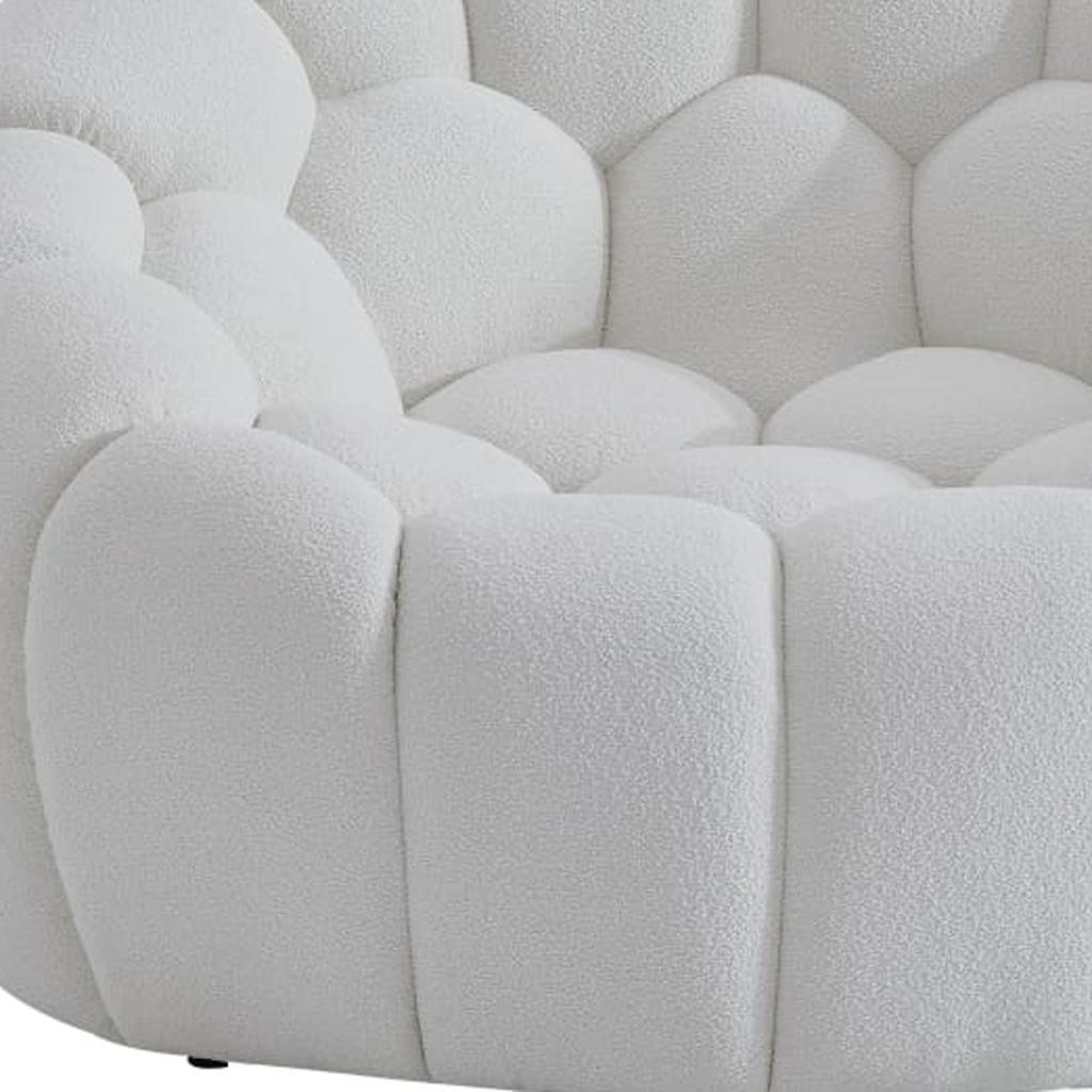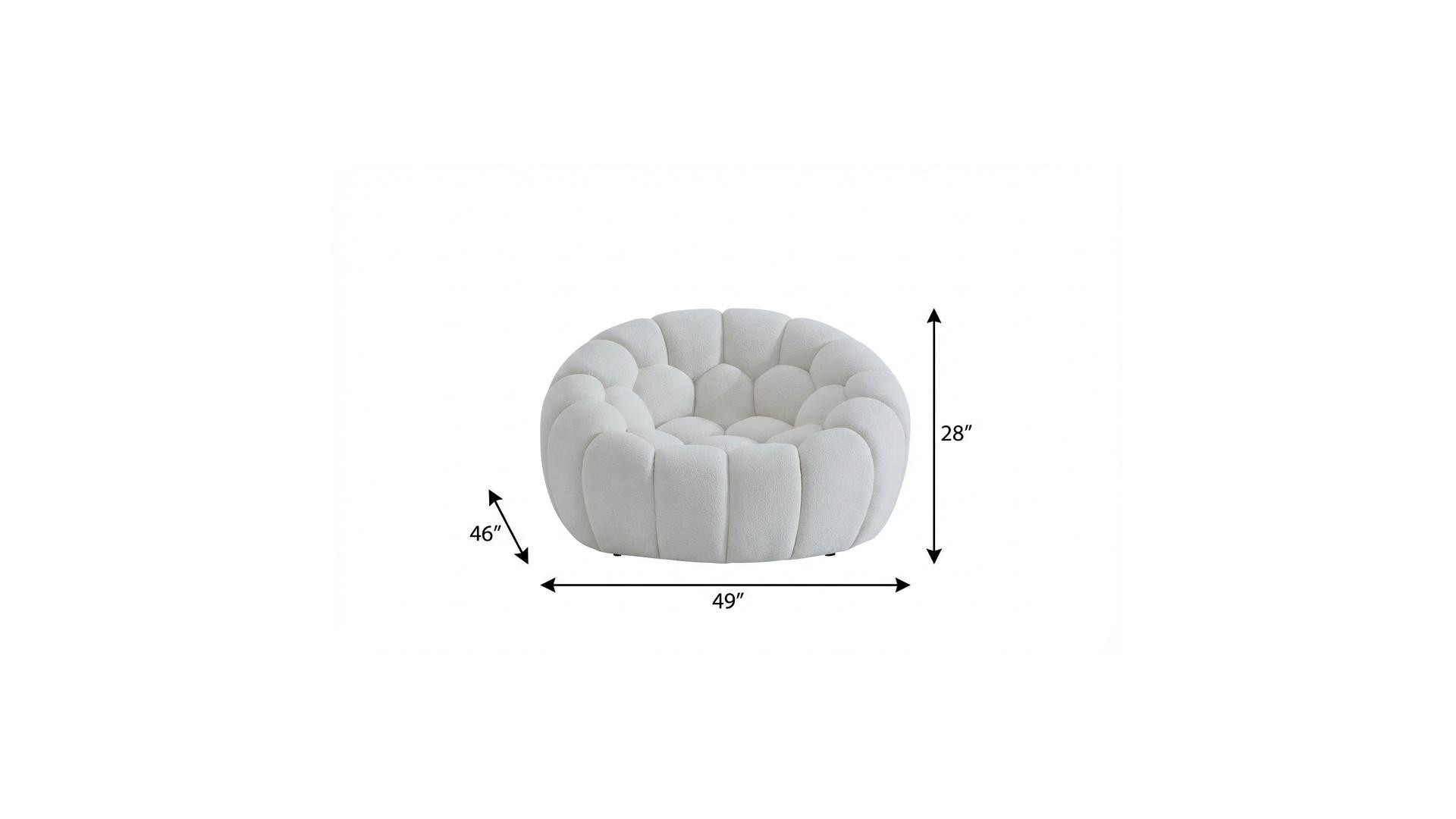 A mix of form and function, this 49-inch white tufted boucle lounge chair will bring a good looking and usable accent to your space. Built to last this lounge chair is finished in soft and textural tufted white boucle to give your room a great update. The sturdy inner frame is built with high quality manufactured wood to give you a solid base, but the cushioning and texture will keep you cozy and comfy for hours. 28.00-inch h x 49.00-inch w x 46.00-inch d.