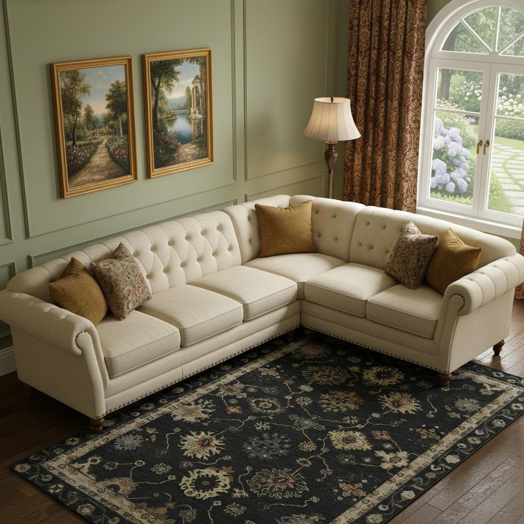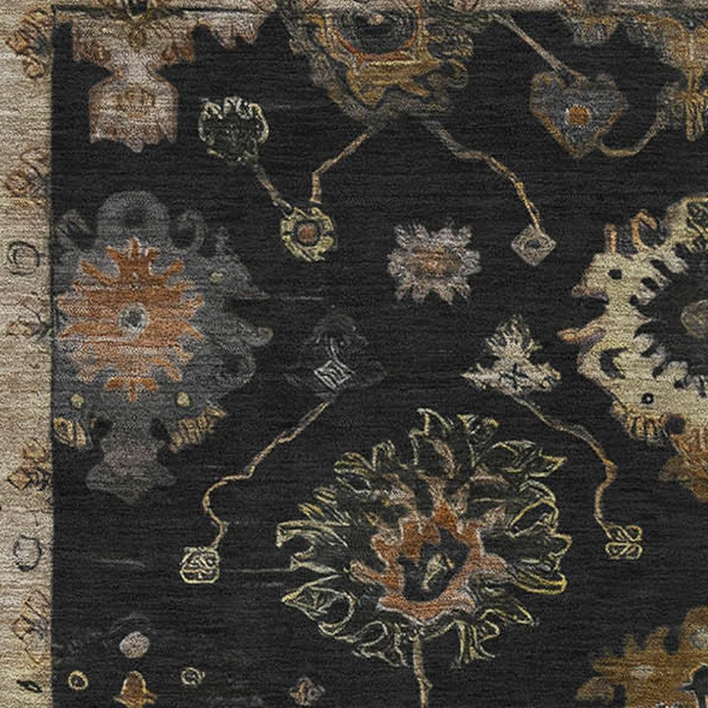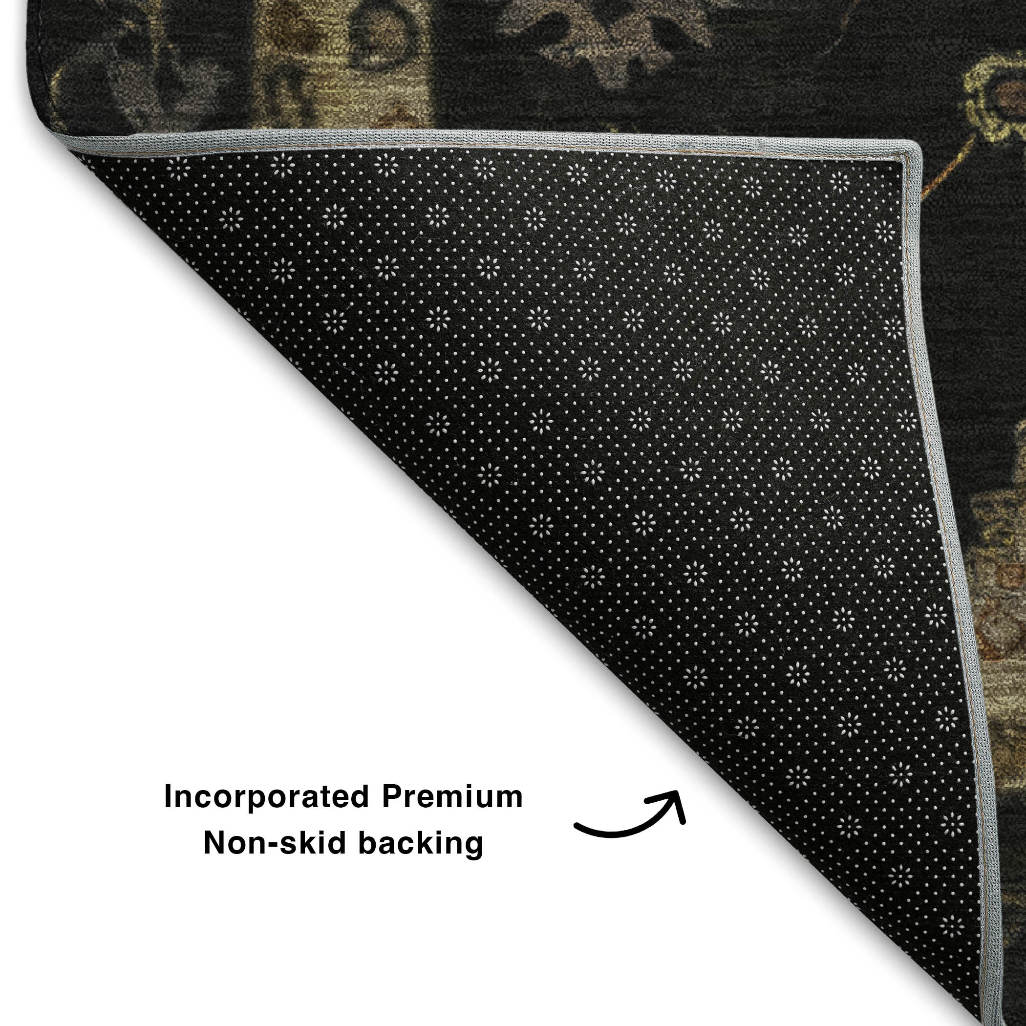 Add some artistry to your room with this 10-foot x 14-foot black and gold oriental washable area rug with uv protection. Ideal for spaces with kids and pets, this rug is stain resistant to help repel dirt and spilled liquids. Built to last, this rug crafted from polyester fibers is known for its durability and long lasting appeal. Rugs are a great way to showcase your style, hide imperfections, warm your home and reduce noise. This larger sized, traditional styled rug is ready to create a focal point or statement piece in your room. 120.00-inch h x 168.00-inch w x 0.39-inch d.