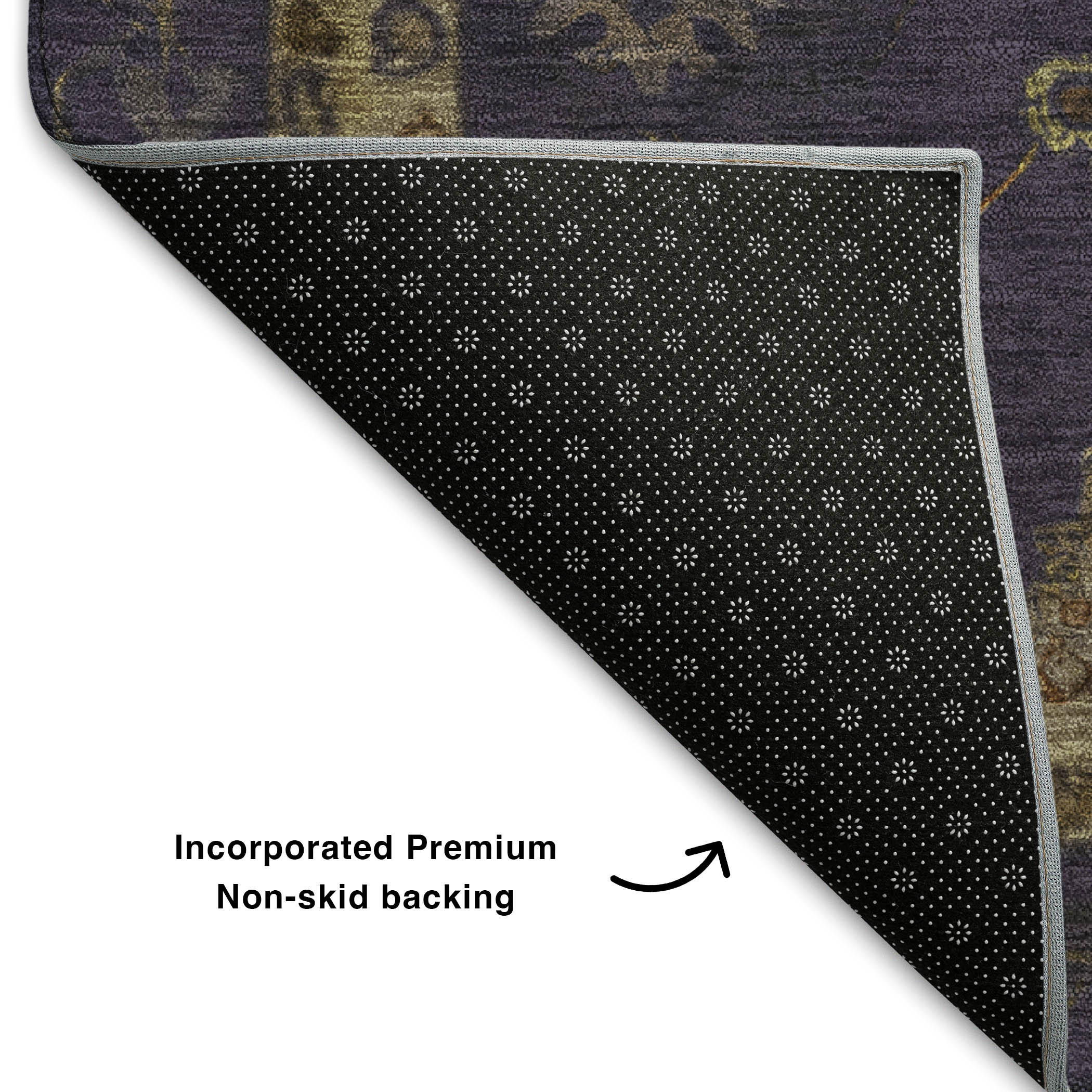 This 10-foot x 14-foot eggplant and beige oriental washable area rug with uv protection, is a great way to add warmth to a room. Ideal for spaces with kids and pets, this rug is stain resistant to help repel dirt and spilled liquids. Built to last, this rug crafted from polyester fibers is known for its durability and long lasting appeal. Rugs are a great way to showcase your style, hide imperfections, warm your home and reduce noise. This larger sized, traditional styled rug is ready to create a focal point or statement piece in your room. 120.00-inch h x 168.00-inch w x 0.39-inch d.