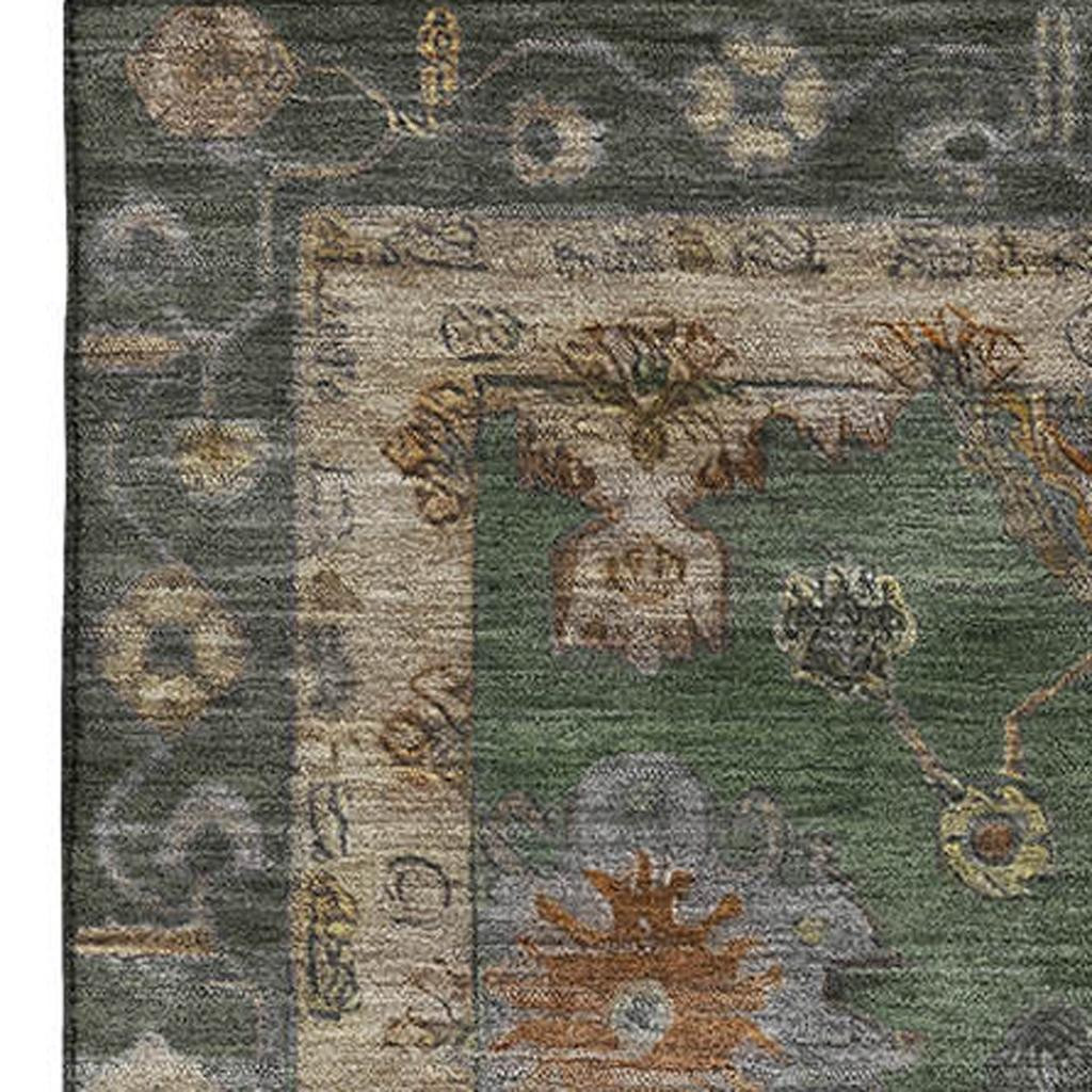 Add some artistry to your room with this 3-foot x 5-foot fern green and gold oriental washable area rug with uv protection. Ideal for spaces with kids and pets, this rug is stain resistant to help repel dirt and spilled liquids. Built to last, this rug crafted from polyester fibers is known for its durability and long lasting appeal. Rugs are a great way to showcase your style, hide imperfections, warm your home and reduce noise. This smaller sized, traditional styled rug is just what you need for your walkway, bedside, in front of door, cabinet, refrigerator, or chair. 36.00-inch h x 60.00-inch w x 0.39-inch d.