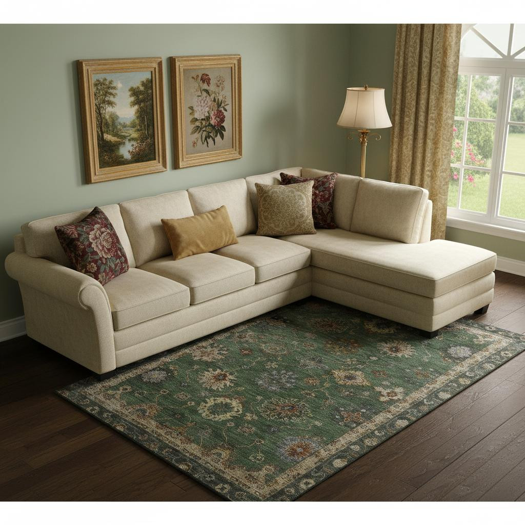 Set an inviting tone in your space with this 8-foot x 10-foot fern green and gold oriental washable area rug with uv protection. Ideal for spaces with kids and pets, this rug is stain resistant to help repel dirt and spilled liquids. Built to last, this rug crafted from polyester fibers is known for its durability and long lasting appeal. Rugs are a great way to showcase your style, hide imperfections, warm your home and reduce noise. This larger sized, traditional styled rug is ready to create a focal point or statement piece in your room. 96.00-inch h x 120.00-inch w x 0.39-inch d.