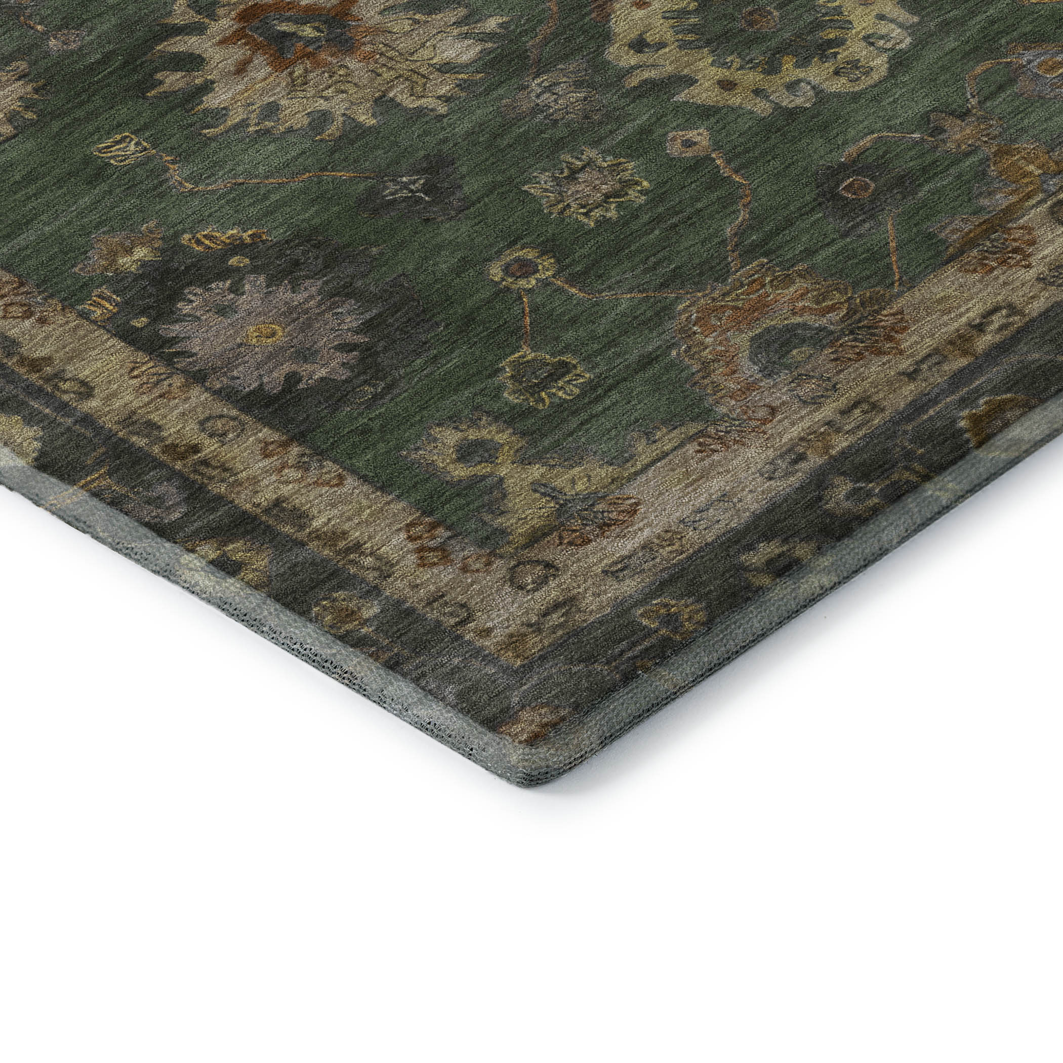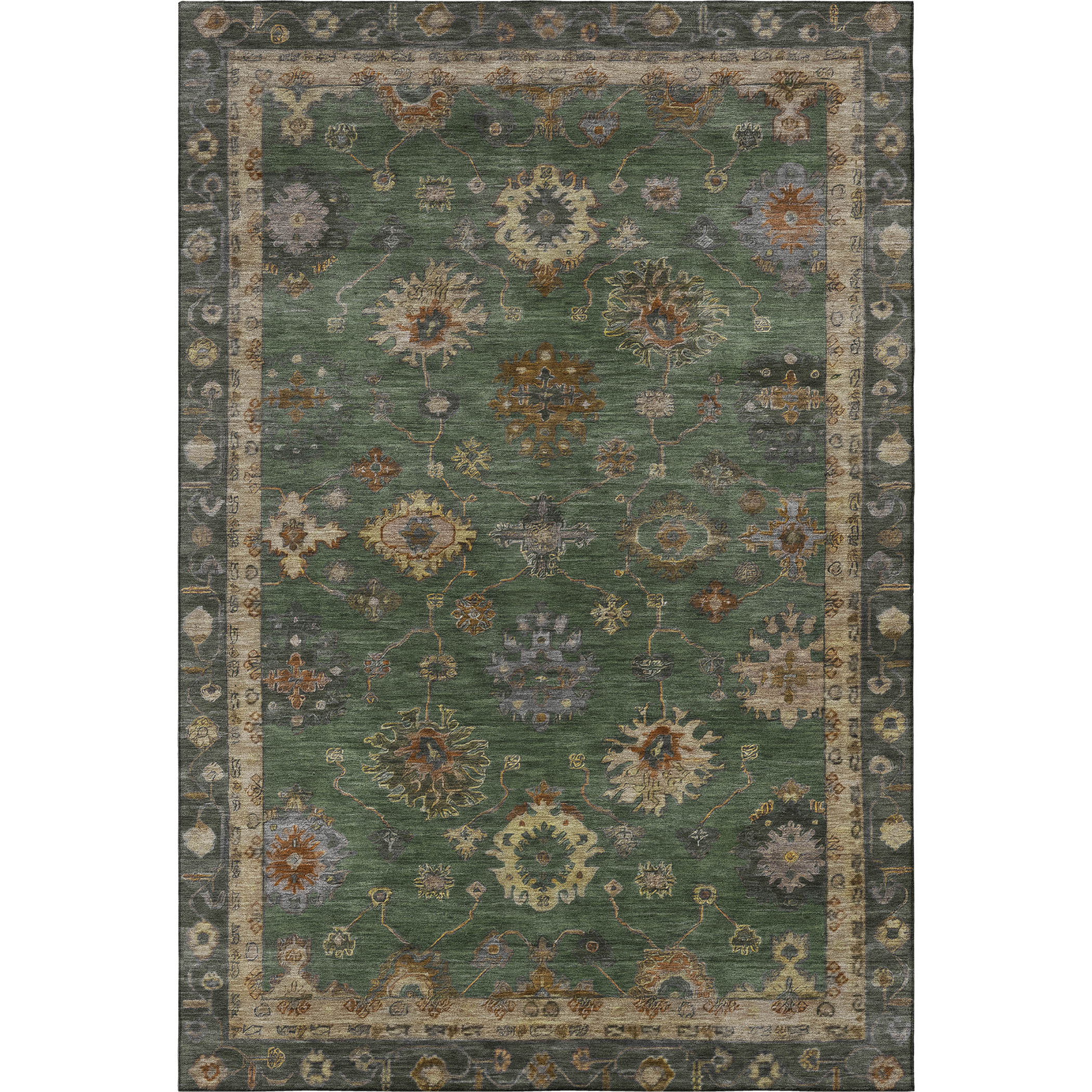 This 10-foot x 14-foot fern green and gold oriental washable area rug with uv protection, is a great way to add warmth to a room. Ideal for spaces with kids and pets, this rug is stain resistant to help repel dirt and spilled liquids. Built to last, this rug crafted from polyester fibers is known for its durability and long lasting appeal. Rugs are a great way to showcase your style, hide imperfections, warm your home and reduce noise. This larger sized, traditional styled rug is ready to create a focal point or statement piece in your room. 120.00-inch h x 168.00-inch w x 0.39-inch d.
