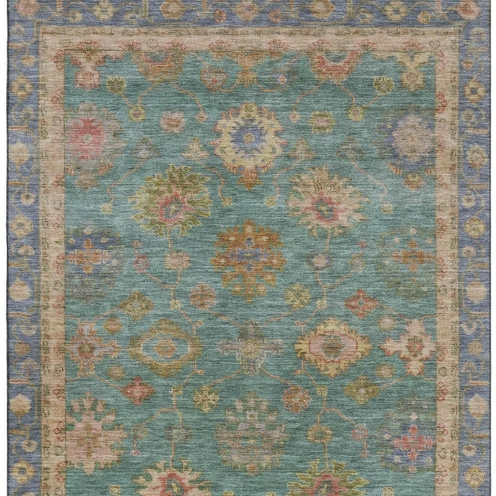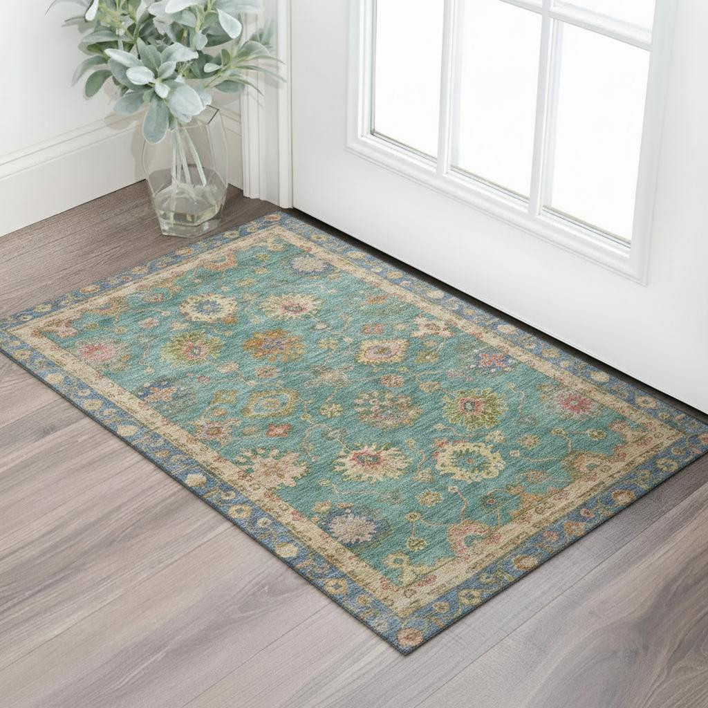 Add great coloration and comfortable texture to your space with this 3-foot x 5-foot teal and blush oriental washable area rug with uv protection. Ideal for spaces with kids and pets, this rug is stain resistant to help repel dirt and spilled liquids. Built to last, this rug crafted from polyester fibers is known for its durability and long lasting appeal. Rugs are a great way to showcase your style, hide imperfections, warm your home and reduce noise. This smaller sized, traditional styled rug is just what you need for your walkway, bedside, in front of door, cabinet, refrigerator, or chair. 36.00-inch h x 60.00-inch w x 0.39-inch d.