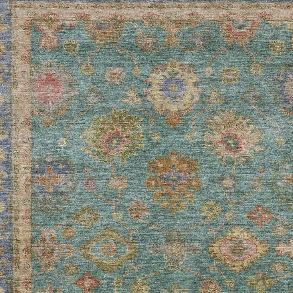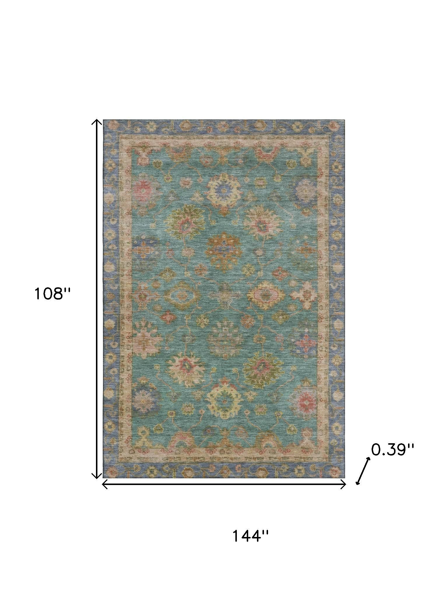 Add great coloration and comfortable texture to your space with this 9-foot x 12-foot teal and blush oriental washable area rug with uv protection. Ideal for spaces with kids and pets, this rug is stain resistant to help repel dirt and spilled liquids. Built to last, this rug crafted from polyester fibers is known for its durability and long lasting appeal. Rugs are a great way to showcase your style, hide imperfections, warm your home and reduce noise. This larger sized, traditional styled rug is ready to create a focal point or statement piece in your room. 108.00-inch h x 144.00-inch w x 0.39-inch d.