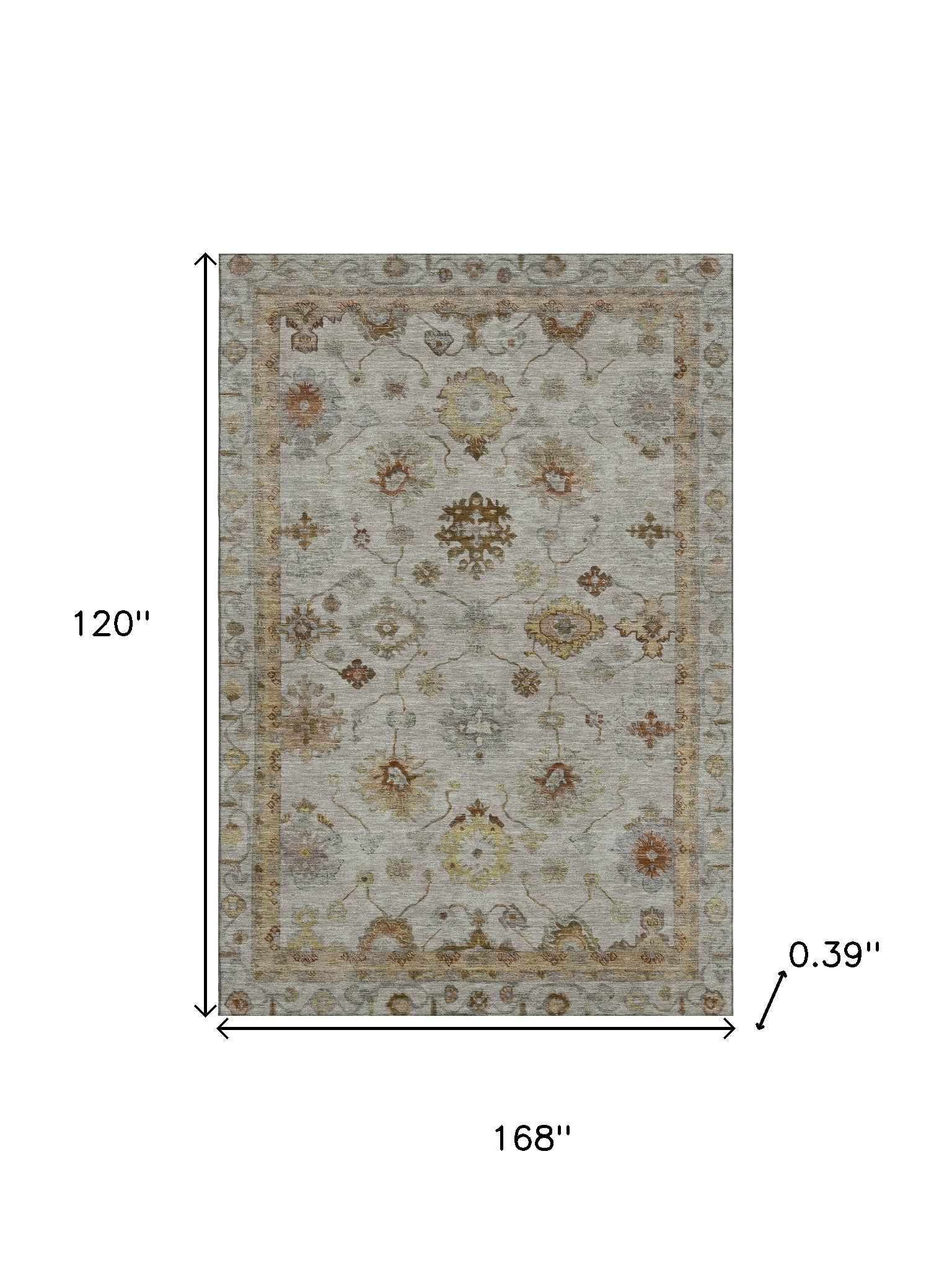 This 10-foot x 14-foot taupe and beige oriental washable area rug with uv protection, is a great way to add warmth to a room. Ideal for spaces with kids and pets, this rug is stain resistant to help repel dirt and spilled liquids. Built to last, this rug crafted from polyester fibers is known for its durability and long lasting appeal. Rugs are a great way to showcase your style, hide imperfections, warm your home and reduce noise. This larger sized, traditional styled rug is ready to create a focal point or statement piece in your room. 120.00-inch h x 168.00-inch w x 0.39-inch d.