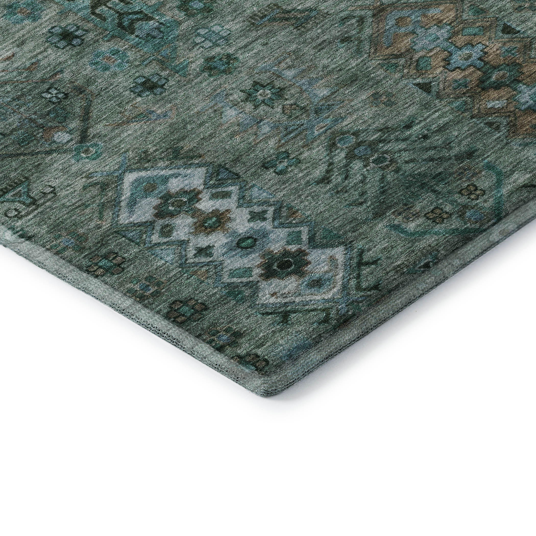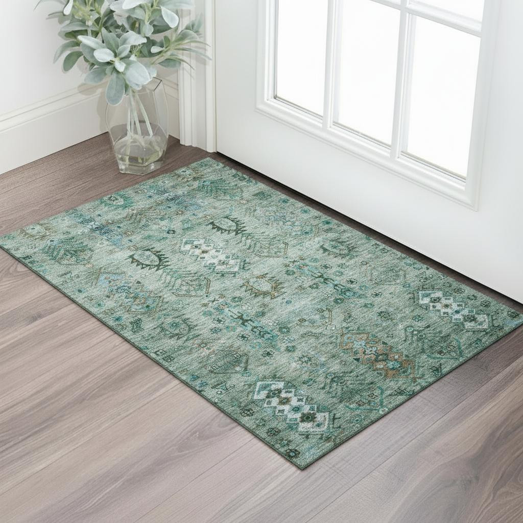 Add great coloration and comfortable texture to your space with this 3-foot x 5-foot green and teal southwestern washable area rug with uv protection. Ideal for spaces with kids and pets, this rug is stain resistant to help repel dirt and spilled liquids. Built to last, this rug crafted from polyester fibers is known for its durability and long lasting appeal. Rugs are a great way to showcase your style, hide imperfections, warm your home and reduce noise. This smaller sized, traditional styled rug is just what you need for your walkway, bedside, in front of door, cabinet, refrigerator, or chair. 36.00-inch h x 60.00-inch w x 0.39-inch d.