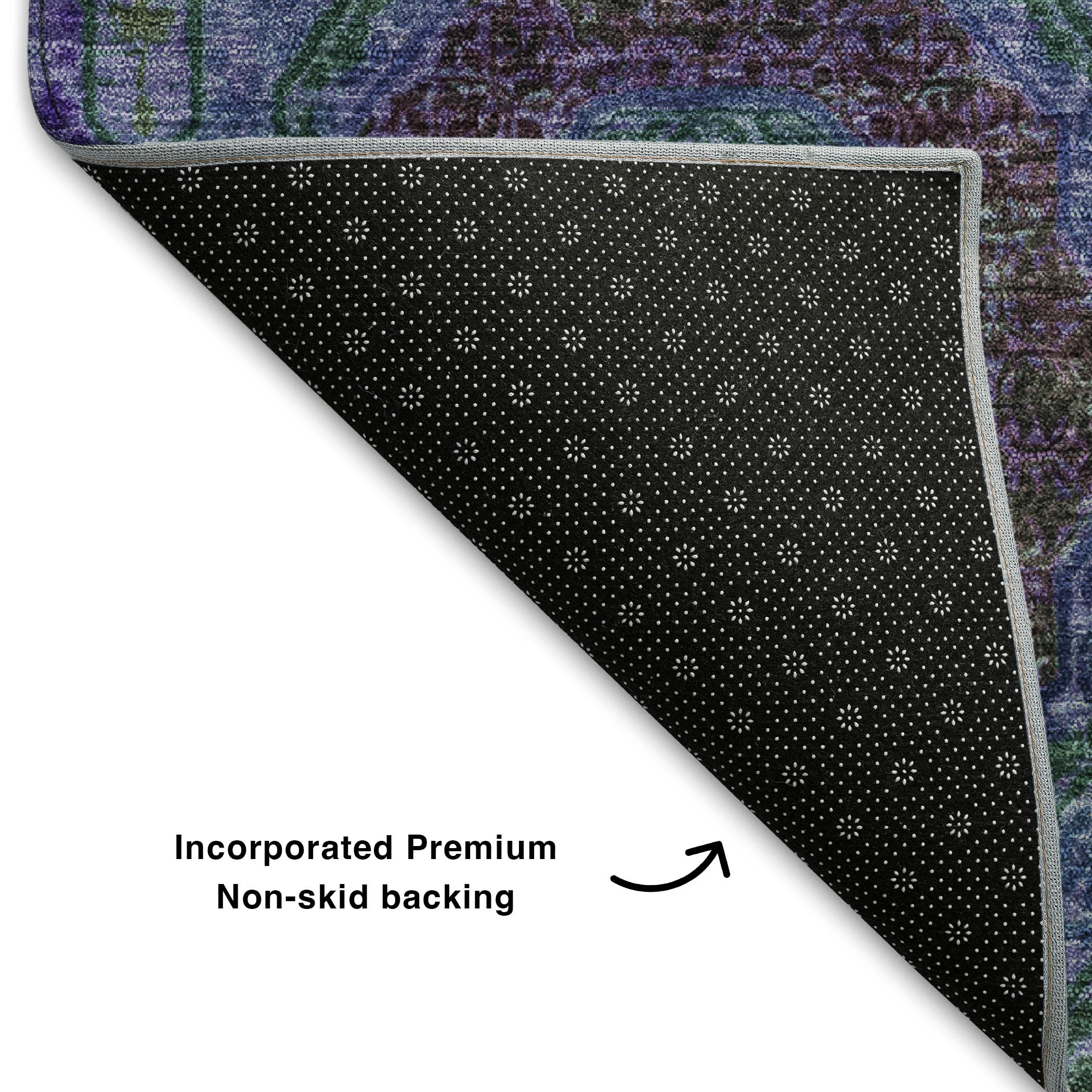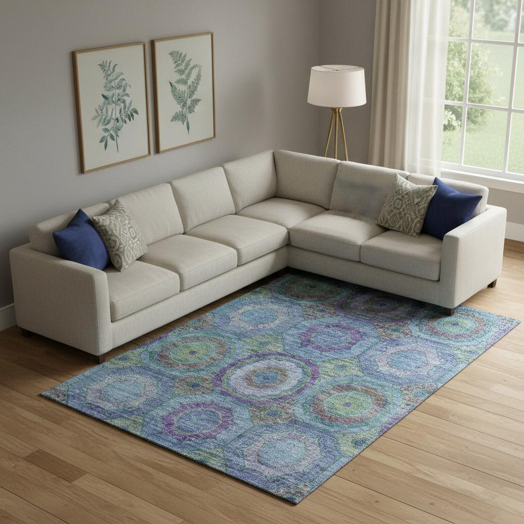 This 10-foot x 14-foot blue and purple geometric washable area rug with uv protection, is a great way to add warmth to a room. Ideal for spaces with kids and pets, this rug is stain resistant to help repel dirt and spilled liquids. Built to last, this rug crafted from polyester fibers is known for its durability and long lasting appeal. Rugs are a great way to showcase your style, hide imperfections, warm your home and reduce noise. This larger sized, transitional styled rug is ready to create a focal point or statement piece in your room. 120.00-inch h x 168.00-inch w x 0.39-inch d.
