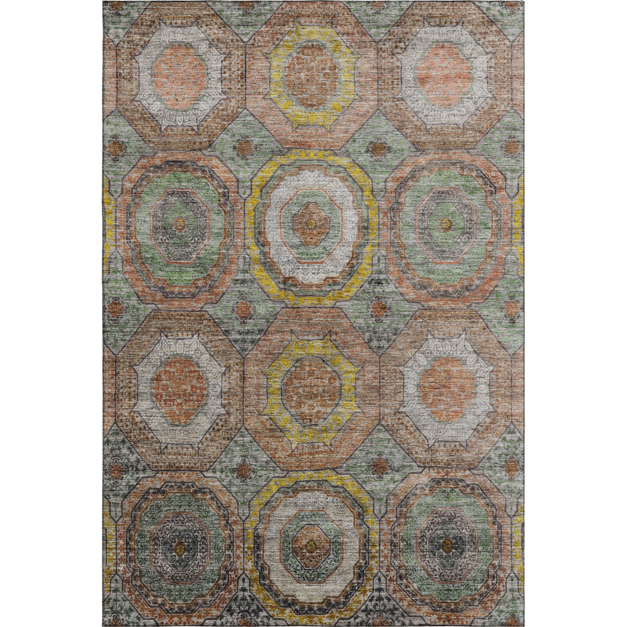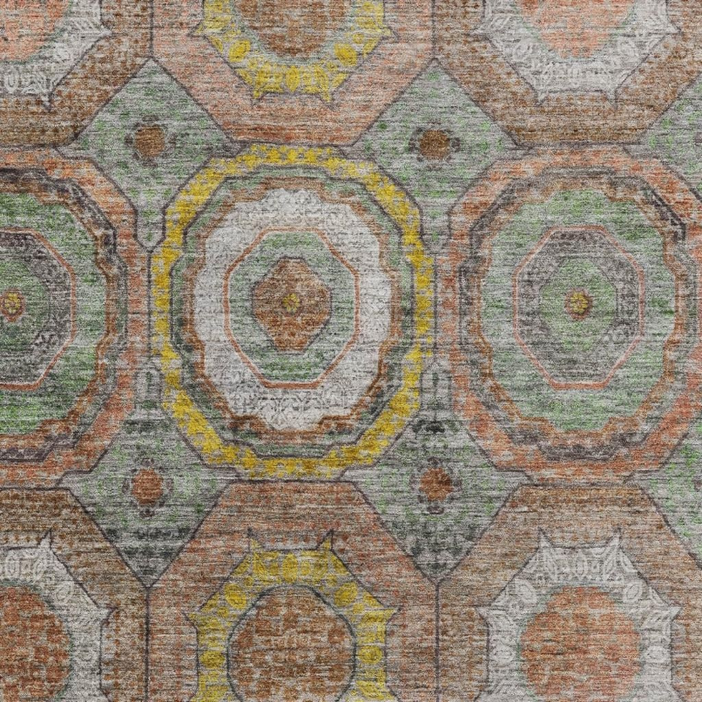 Set an inviting tone in your space with this 3-foot x 5-foot sage and gold geometric washable area rug with uv protection. Ideal for spaces with kids and pets, this rug is stain resistant to help repel dirt and spilled liquids. Built to last, this rug crafted from polyester fibers is known for its durability and long lasting appeal. Rugs are a great way to showcase your style, hide imperfections, warm your home and reduce noise. This smaller sized, transitional styled rug is just what you need for your walkway, bedside, in front of door, cabinet, refrigerator, or chair. 36.00-inch h x 60.00-inch w x 0.39-inch d.