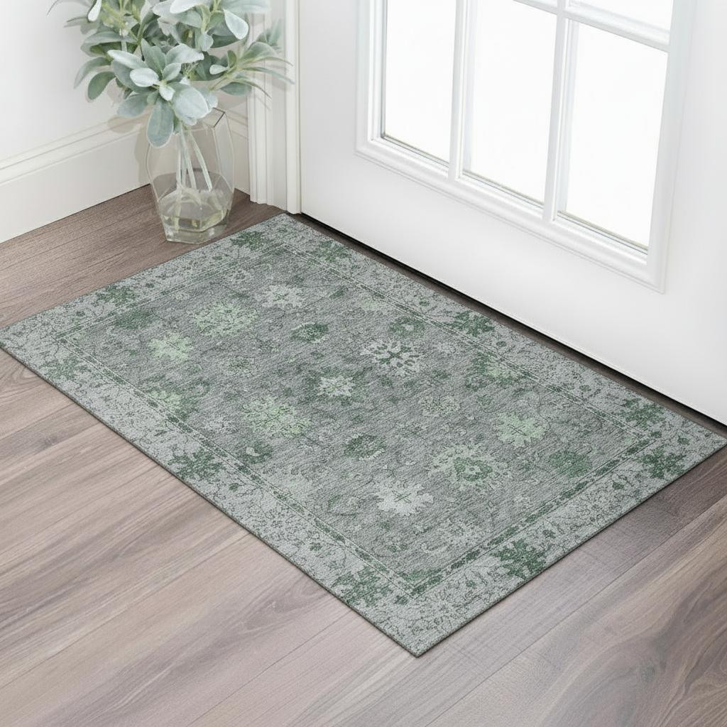 Add great coloration and comfortable texture to your space with this 3-foot x 5-foot sage and gray oriental washable area rug with uv protection. Ideal for spaces with kids and pets, this rug is stain resistant to help repel dirt and spilled liquids. Built to last, this rug crafted from polyester fibers is known for its durability and long lasting appeal. Rugs are a great way to showcase your style, hide imperfections, warm your home and reduce noise. This smaller sized, traditional styled rug is just what you need for your walkway, bedside, in front of door, cabinet, refrigerator, or chair. 36.00-inch h x 60.00-inch w x 0.39-inch d.