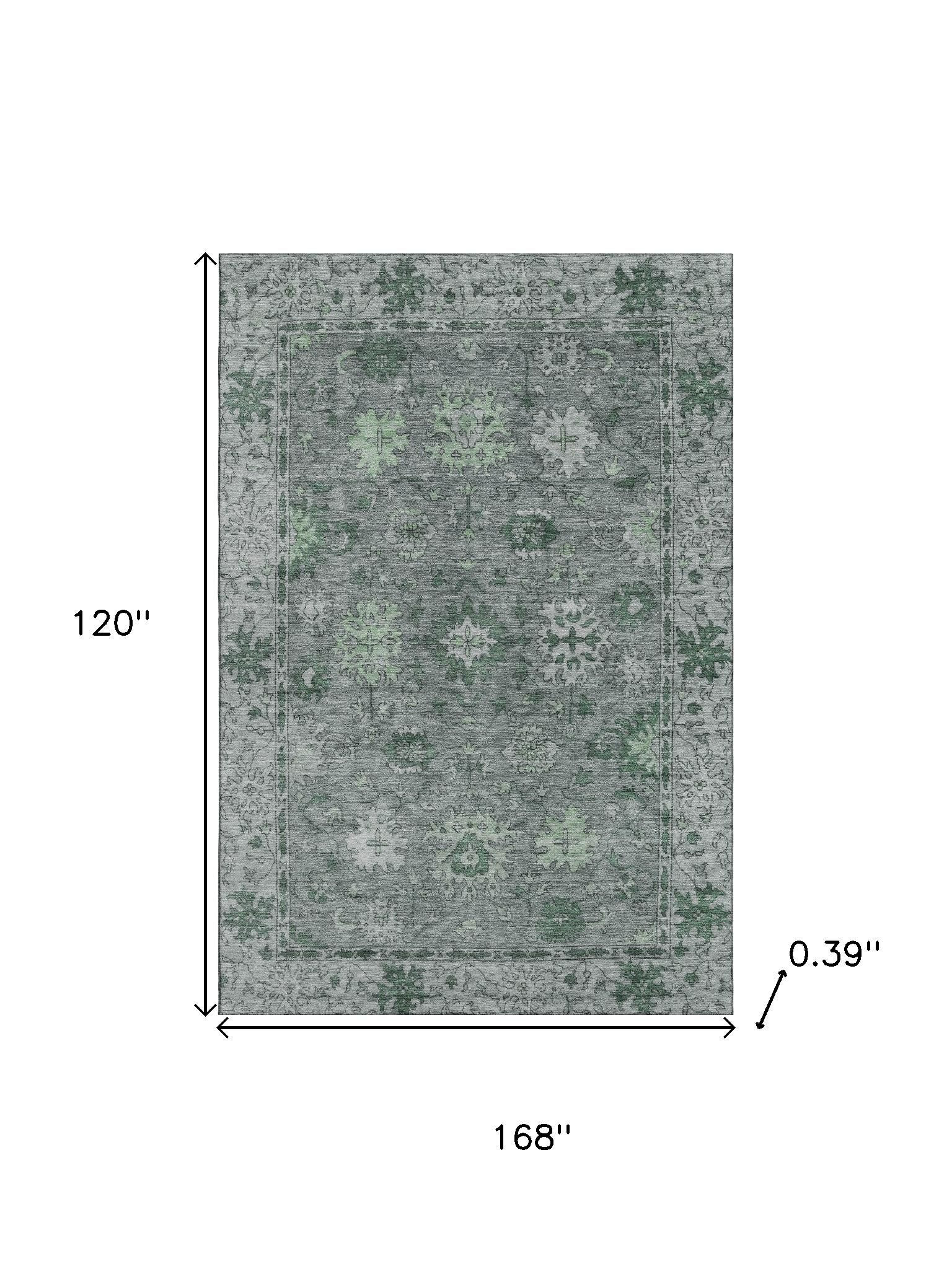 Set an inviting tone in your space with this 10-foot x 14-foot sage and gray oriental washable area rug with uv protection. Ideal for spaces with kids and pets, this rug is stain resistant to help repel dirt and spilled liquids. Built to last, this rug crafted from polyester fibers is known for its durability and long lasting appeal. Rugs are a great way to showcase your style, hide imperfections, warm your home and reduce noise. This larger sized, traditional styled rug is ready to create a focal point or statement piece in your room. 120.00-inch h x 168.00-inch w x 0.39-inch d.