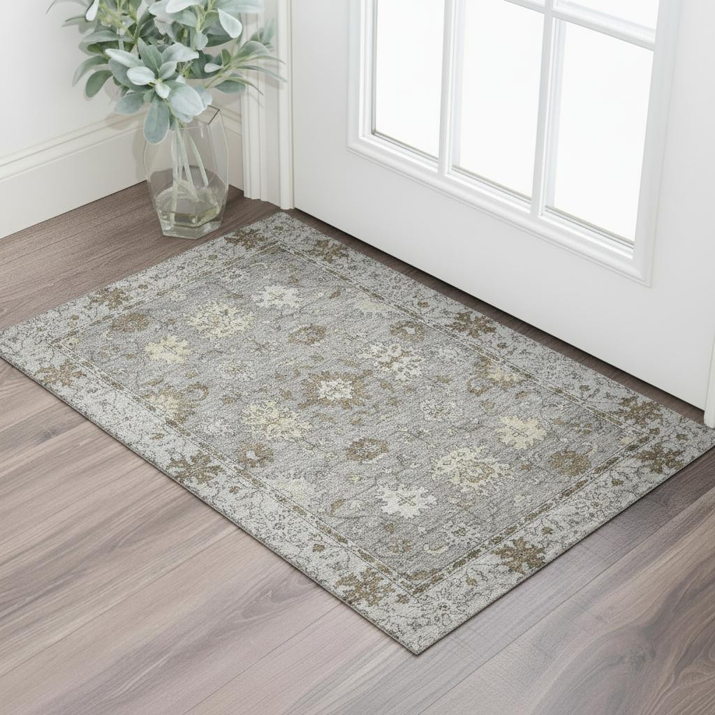 Add some artistry to your room with this 3-foot x 5-foot pewter and taupe oriental washable area rug with uv protection. Ideal for spaces with kids and pets, this rug is stain resistant to help repel dirt and spilled liquids. Built to last, this rug crafted from polyester fibers is known for its durability and long lasting appeal. Rugs are a great way to showcase your style, hide imperfections, warm your home and reduce noise. This smaller sized, traditional styled rug is just what you need for your walkway, bedside, in front of door, cabinet, refrigerator, or chair. 36.00-inch h x 60.00-inch w x 0.39-inch d.