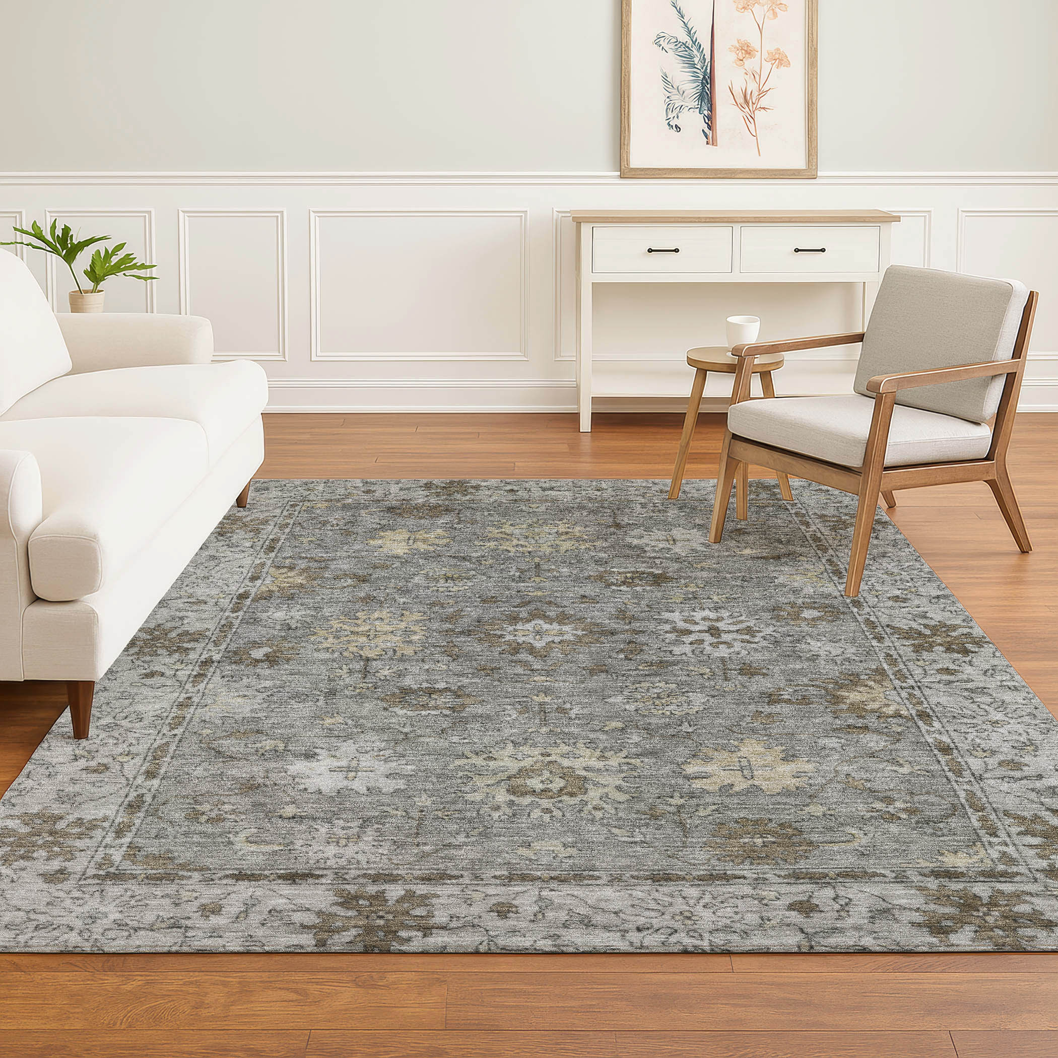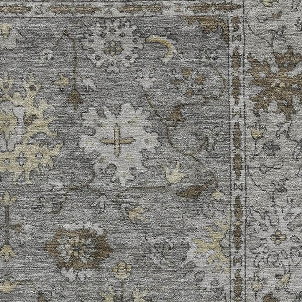 Set an inviting tone in your space with this 5-foot x 8-foot pewter and taupe oriental washable area rug with uv protection. Ideal for spaces with kids and pets, this rug is stain resistant to help repel dirt and spilled liquids. Built to last, this rug crafted from polyester fibers is known for its durability and long lasting appeal. Rugs are a great way to showcase your style, hide imperfections, warm your home and reduce noise. This larger sized, traditional styled rug is ready to create a focal point or statement piece in your room. 60.00-inch h x 90.00-inch w x 0.39-inch d.