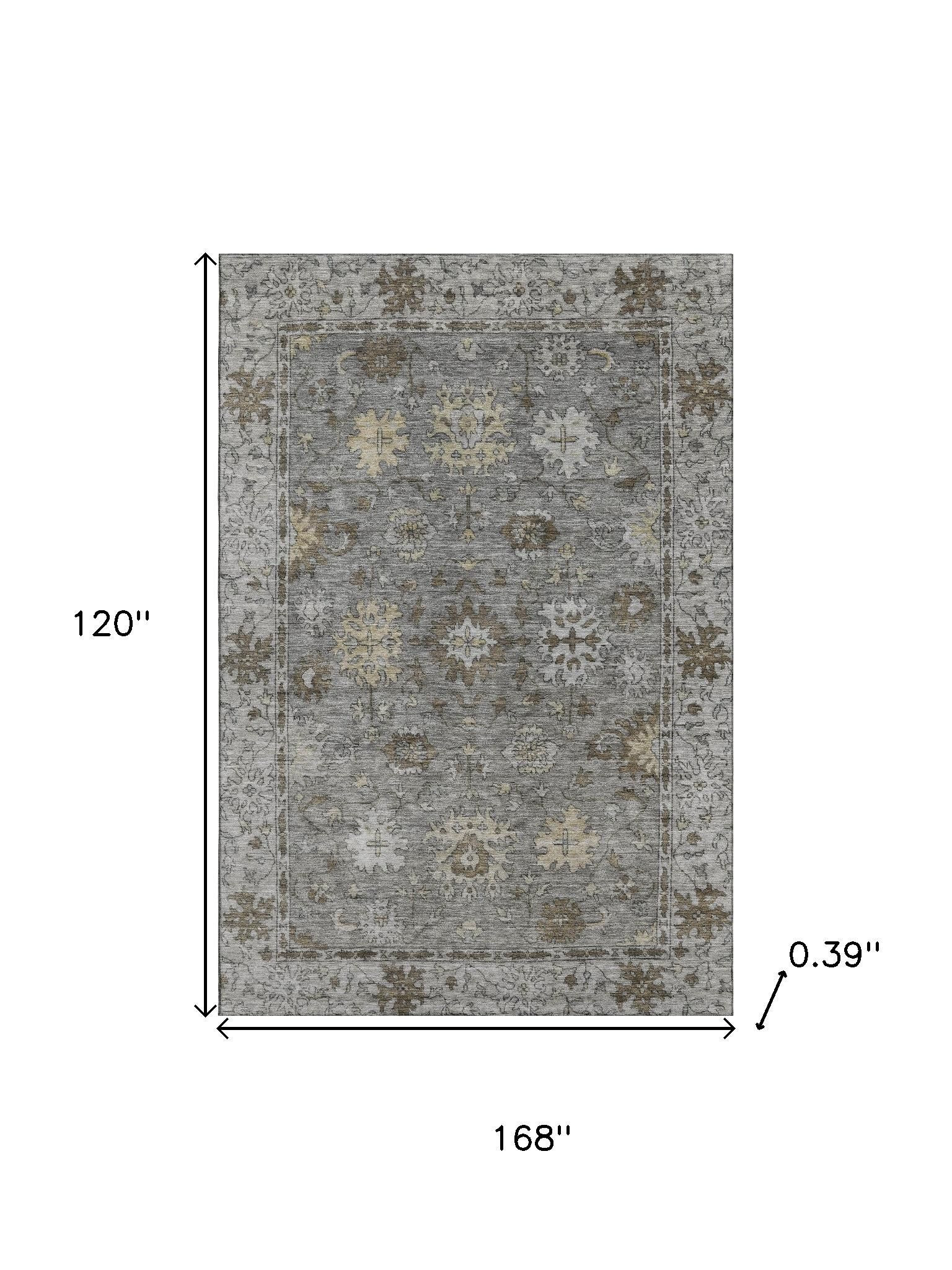 Add great coloration and comfortable texture to your space with this 10-foot x 14-foot pewter and taupe oriental washable area rug with uv protection. Ideal for spaces with kids and pets, this rug is stain resistant to help repel dirt and spilled liquids. Built to last, this rug crafted from polyester fibers is known for its durability and long lasting appeal. Rugs are a great way to showcase your style, hide imperfections, warm your home and reduce noise. This larger sized, traditional styled rug is ready to create a focal point or statement piece in your room. 120.00-inch h x 168.00-inch w x 0.39-inch d.