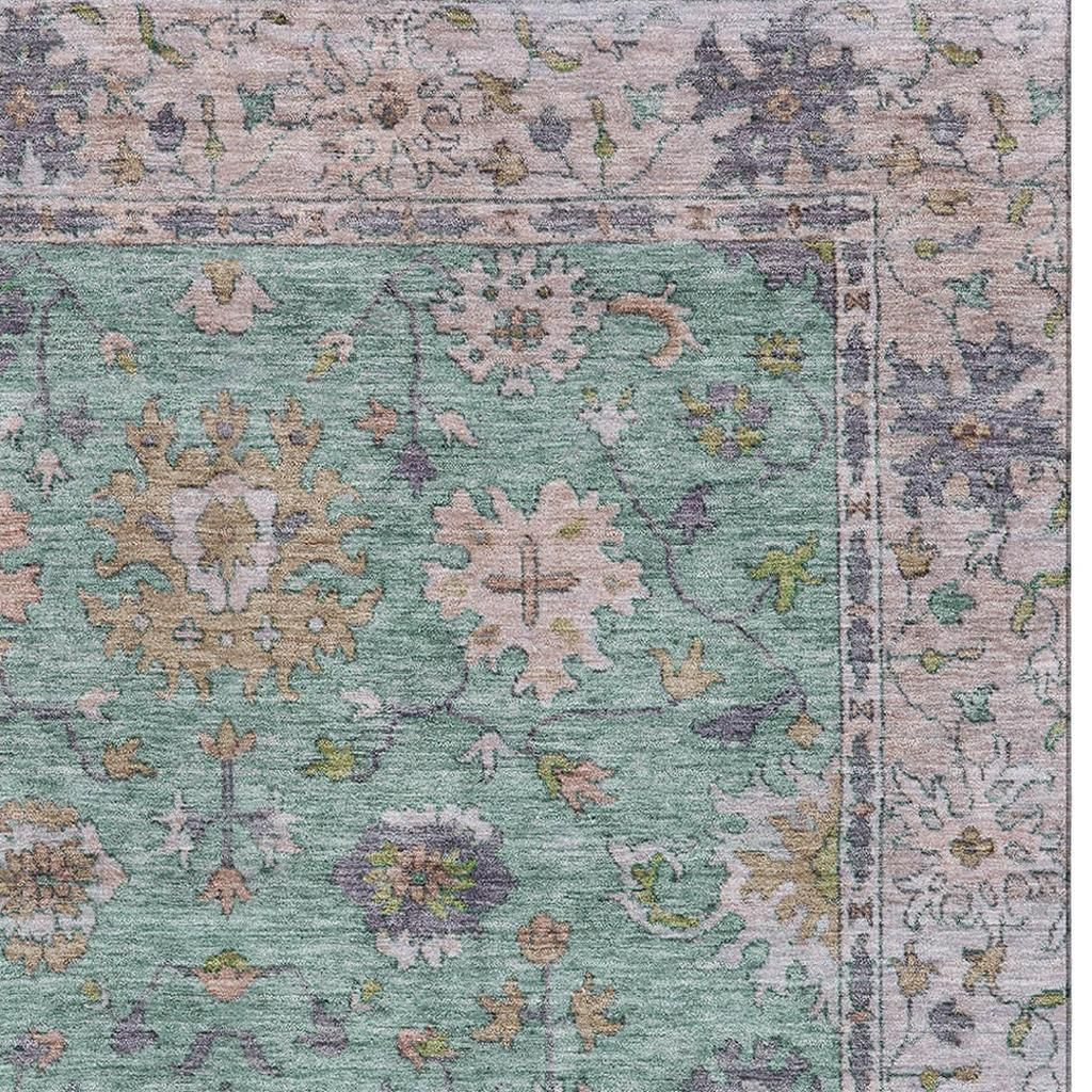 This 3-foot x 5-foot mint green and peach oriental washable area rug with uv protection, is a great way to add warmth to a room. Ideal for spaces with kids and pets, this rug is stain resistant to help repel dirt and spilled liquids. Built to last, this rug crafted from polyester fibers is known for its durability and long lasting appeal. Rugs are a great way to showcase your style, hide imperfections, warm your home and reduce noise. This smaller sized, traditional styled rug is just what you need for your walkway, bedside, in front of door, cabinet, refrigerator, or chair. 36.00-inch h x 60.00-inch w x 0.39-inch d.