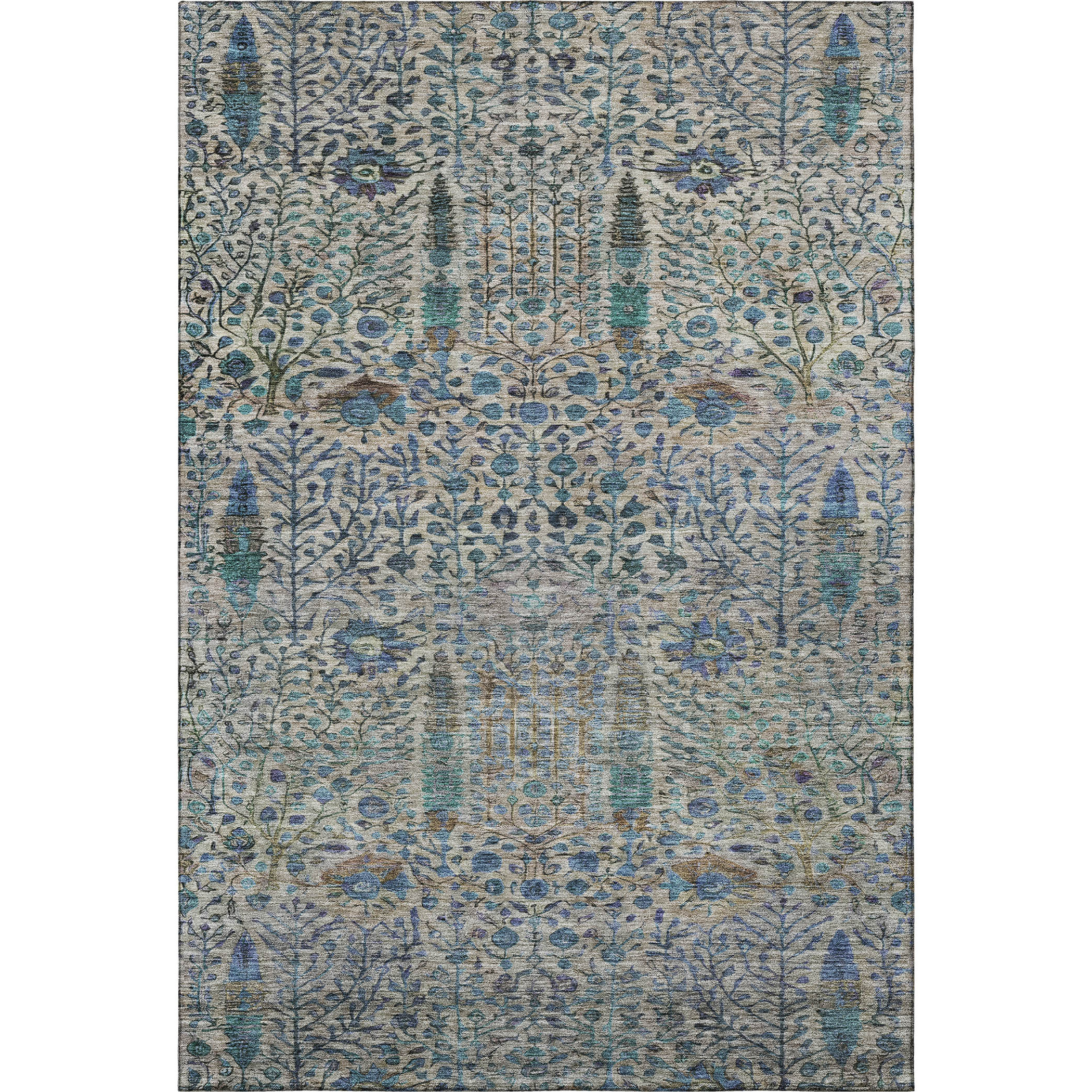 This 3-foot x 5-foot brown and teal floral vines washable area rug with uv protection, is a great way to add warmth to a room. Ideal for spaces with kids and pets, this rug is stain resistant to help repel dirt and spilled liquids. Built to last, this rug crafted from polyester fibers is known for its durability and long lasting appeal. Rugs are a great way to showcase your style, hide imperfections, warm your home and reduce noise. This smaller sized, transitional styled rug is just what you need for your walkway, bedside, in front of door, cabinet, refrigerator, or chair. 36.00-inch h x 60.00-inch w x 0.39-inch d.