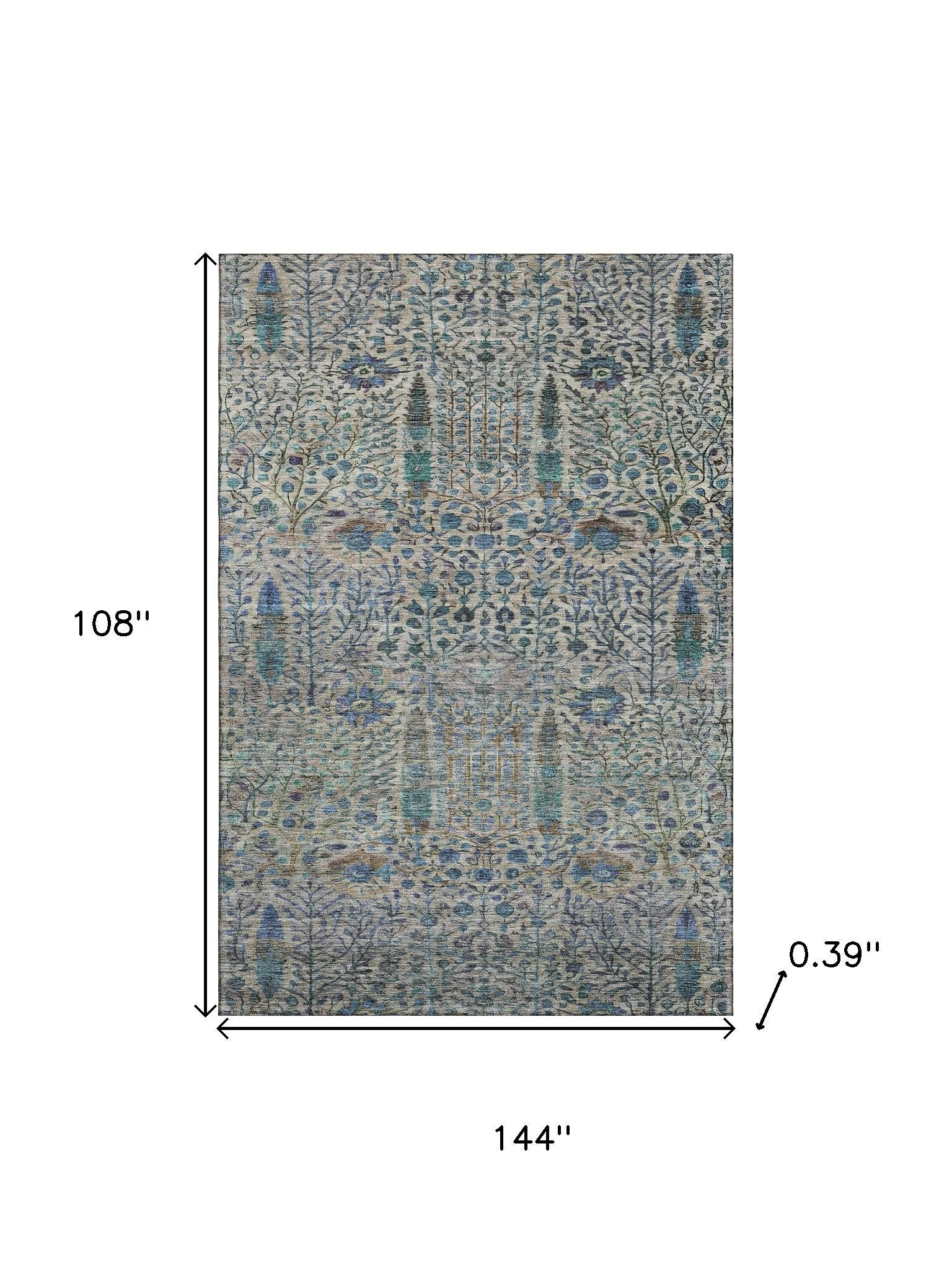 Add great coloration and comfortable texture to your space with this 9-foot x 12-foot brown and teal floral vines washable area rug with uv protection. Ideal for spaces with kids and pets, this rug is stain resistant to help repel dirt and spilled liquids. Built to last, this rug crafted from polyester fibers is known for its durability and long lasting appeal. Rugs are a great way to showcase your style, hide imperfections, warm your home and reduce noise. This larger sized, transitional styled rug is ready to create a focal point or statement piece in your room. 108.00-inch h x 144.00-inch w x 0.39-inch d.