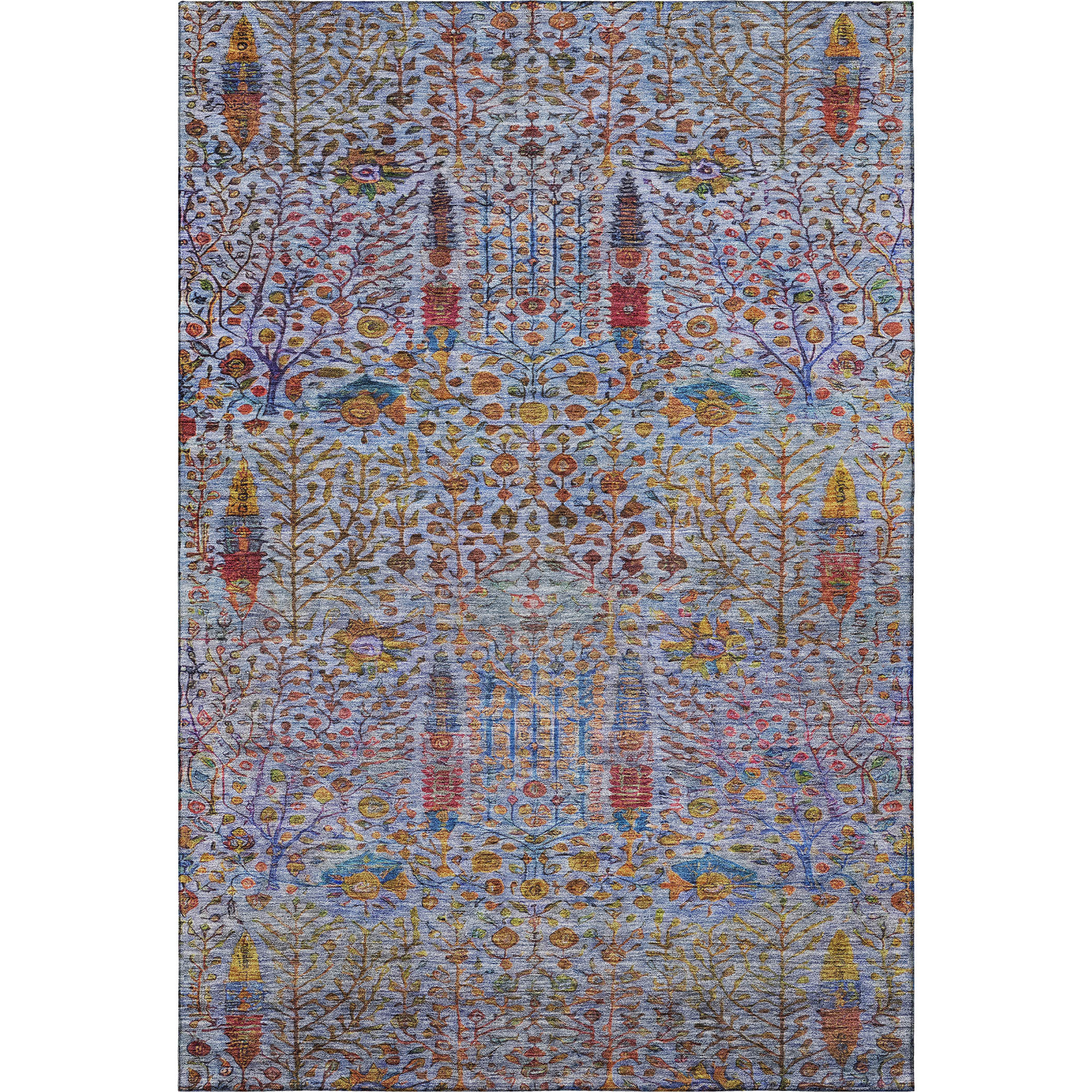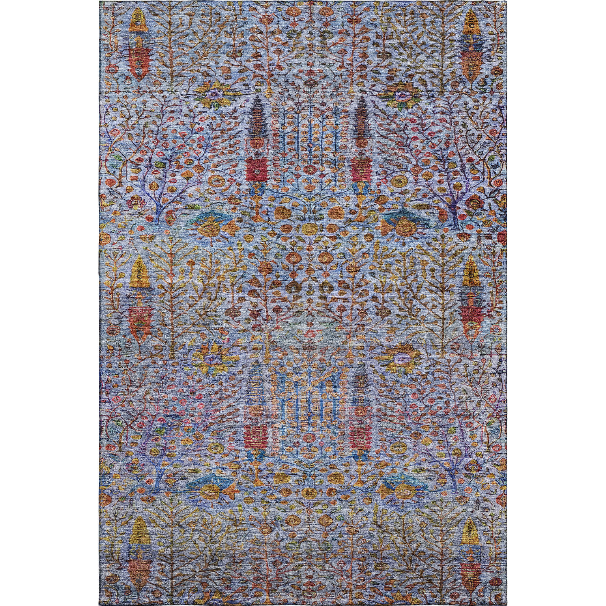 Add great coloration and comfortable texture to your space with this 8-foot x 10-foot blue and red floral vines washable area rug with uv protection. Ideal for spaces with kids and pets, this rug is stain resistant to help repel dirt and spilled liquids. Built to last, this rug crafted from polyester fibers is known for its durability and long lasting appeal. Rugs are a great way to showcase your style, hide imperfections, warm your home and reduce noise. This larger sized, transitional styled rug is ready to create a focal point or statement piece in your room. 96.00-inch h x 120.00-inch w x 0.39-inch d.