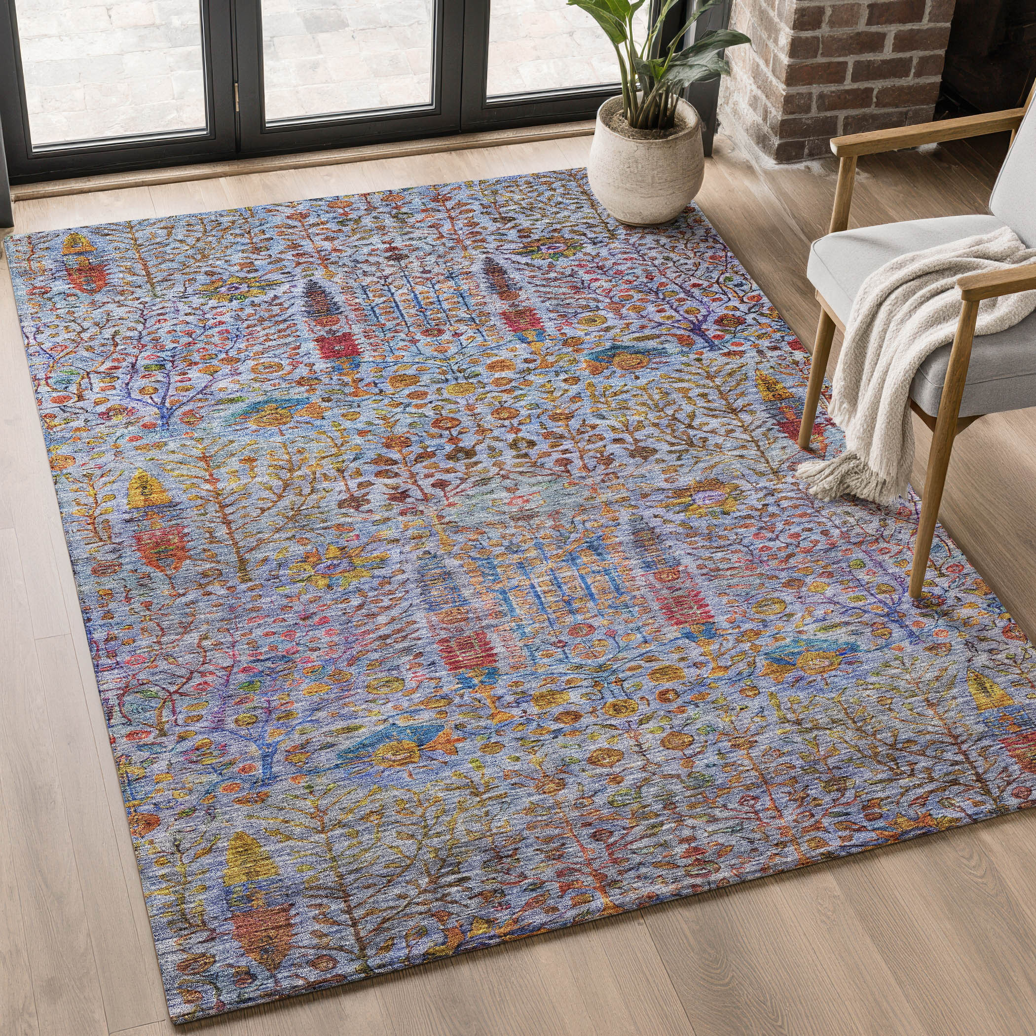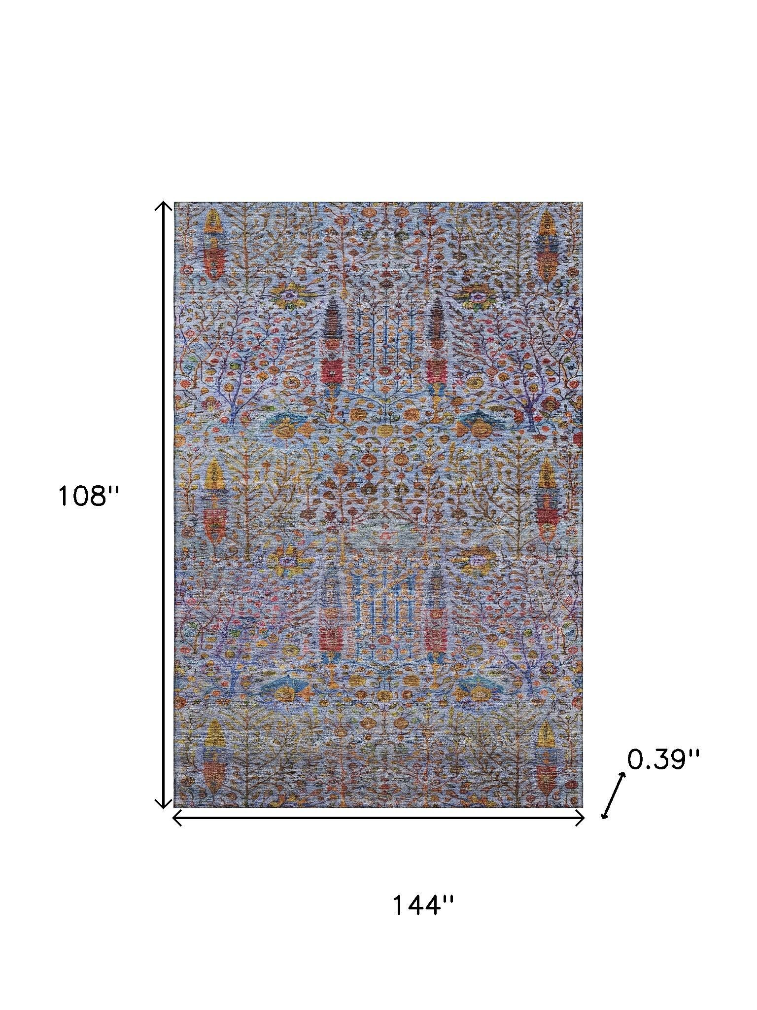 Set an inviting tone in your space with this 9-foot x 12-foot blue and red floral vines washable area rug with uv protection. Ideal for spaces with kids and pets, this rug is stain resistant to help repel dirt and spilled liquids. Built to last, this rug crafted from polyester fibers is known for its durability and long lasting appeal. Rugs are a great way to showcase your style, hide imperfections, warm your home and reduce noise. This larger sized, transitional styled rug is ready to create a focal point or statement piece in your room. 108.00-inch h x 144.00-inch w x 0.39-inch d.