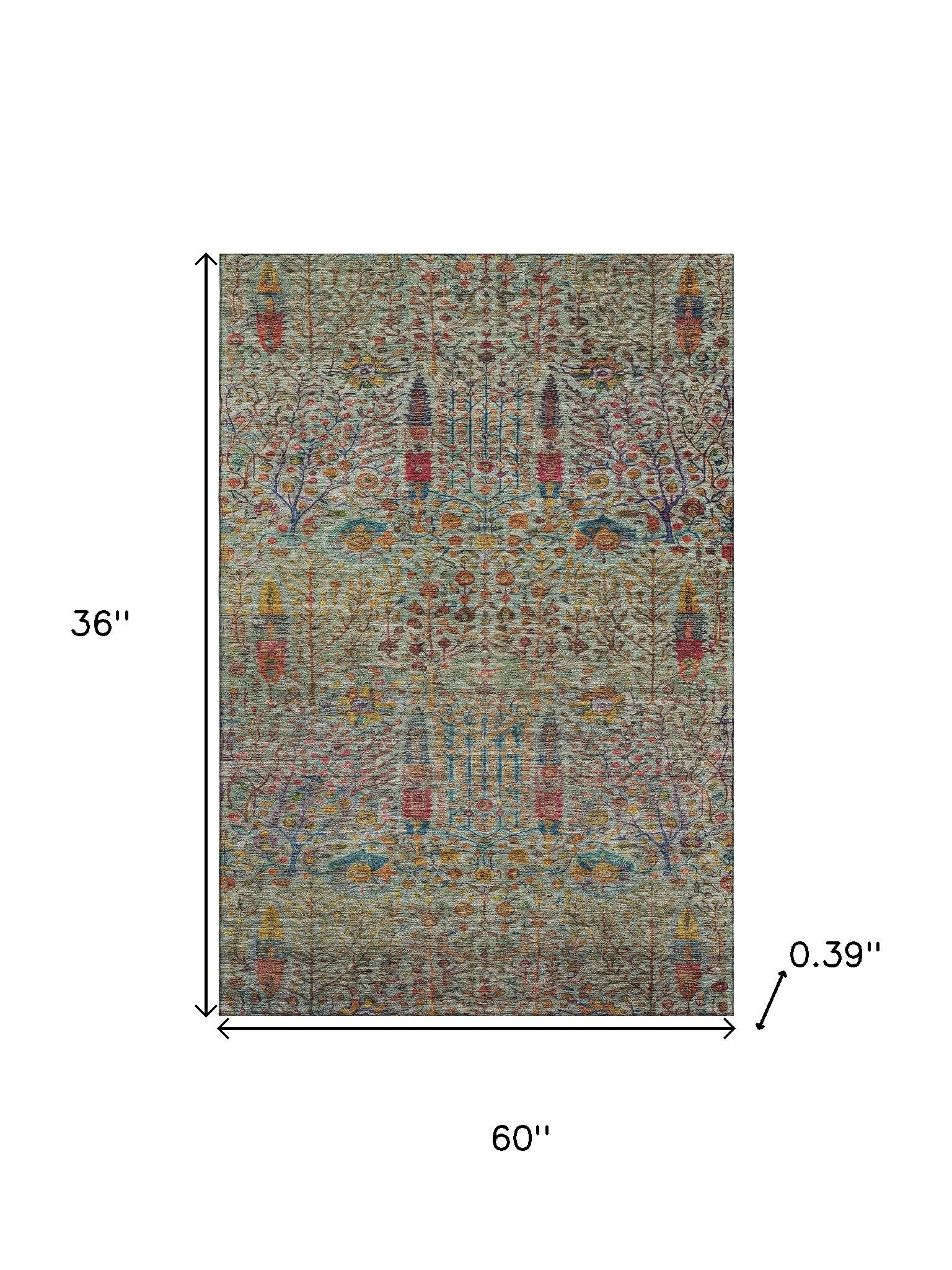 Set an inviting tone in your space with this 3-foot x 5-foot green and red floral vines washable area rug with uv protection. Ideal for spaces with kids and pets, this rug is stain resistant to help repel dirt and spilled liquids. Built to last, this rug crafted from polyester fibers is known for its durability and long lasting appeal. Rugs are a great way to showcase your style, hide imperfections, warm your home and reduce noise. This smaller sized, transitional styled rug is just what you need for your walkway, bedside, in front of door, cabinet, refrigerator, or chair. 36.00-inch h x 60.00-inch w x 0.39-inch d.