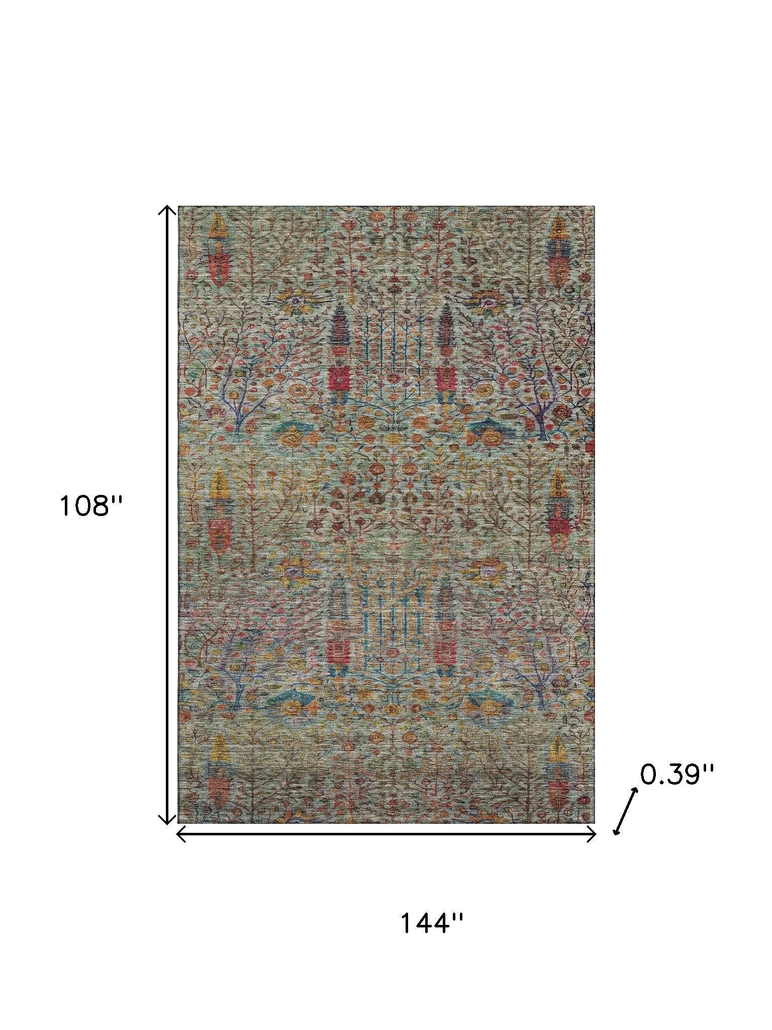 Add some artistry to your room with this 9-foot x 12-foot green and red floral vines washable area rug with uv protection. Ideal for spaces with kids and pets, this rug is stain resistant to help repel dirt and spilled liquids. Built to last, this rug crafted from polyester fibers is known for its durability and long lasting appeal. Rugs are a great way to showcase your style, hide imperfections, warm your home and reduce noise. This larger sized, transitional styled rug is ready to create a focal point or statement piece in your room. 108.00-inch h x 144.00-inch w x 0.39-inch d.