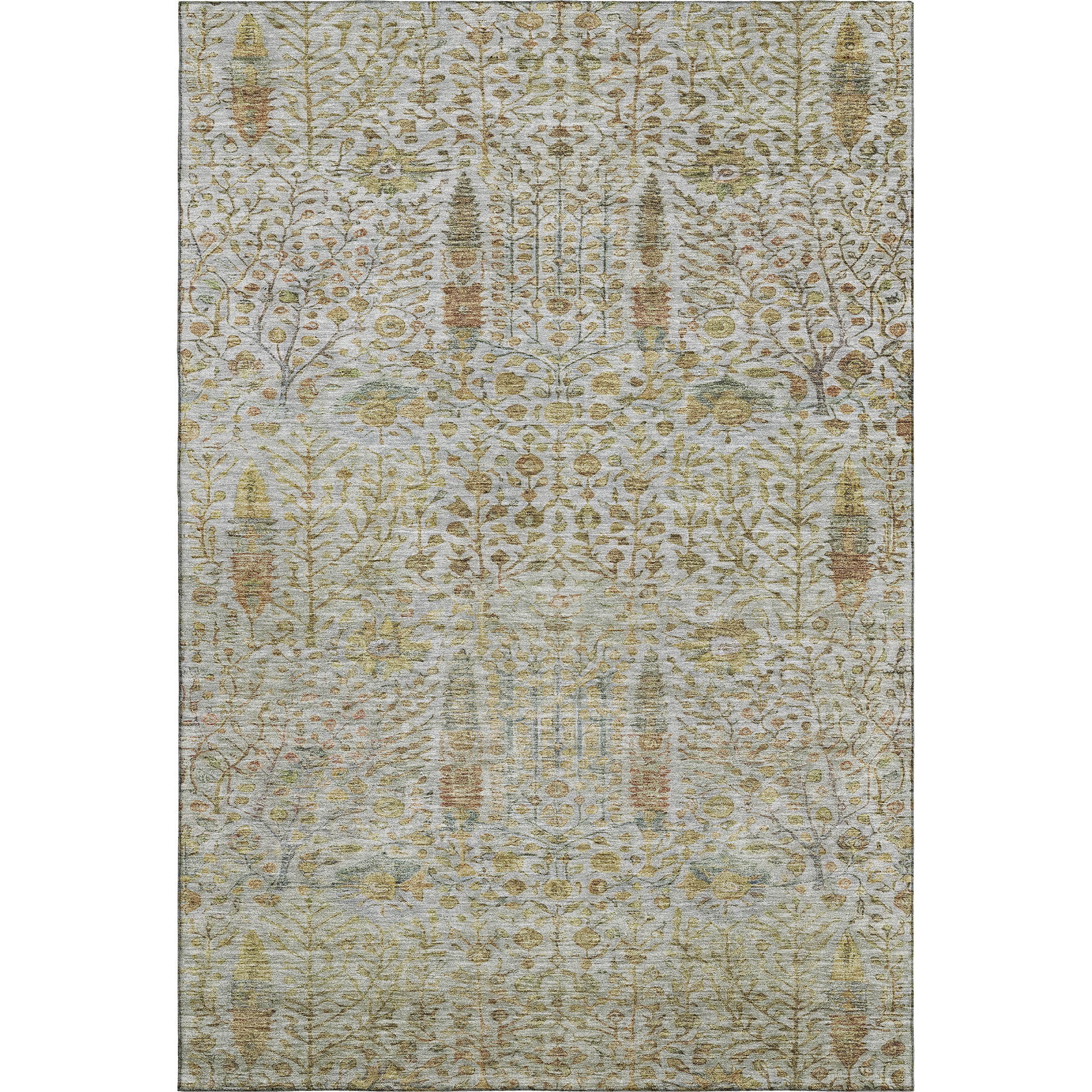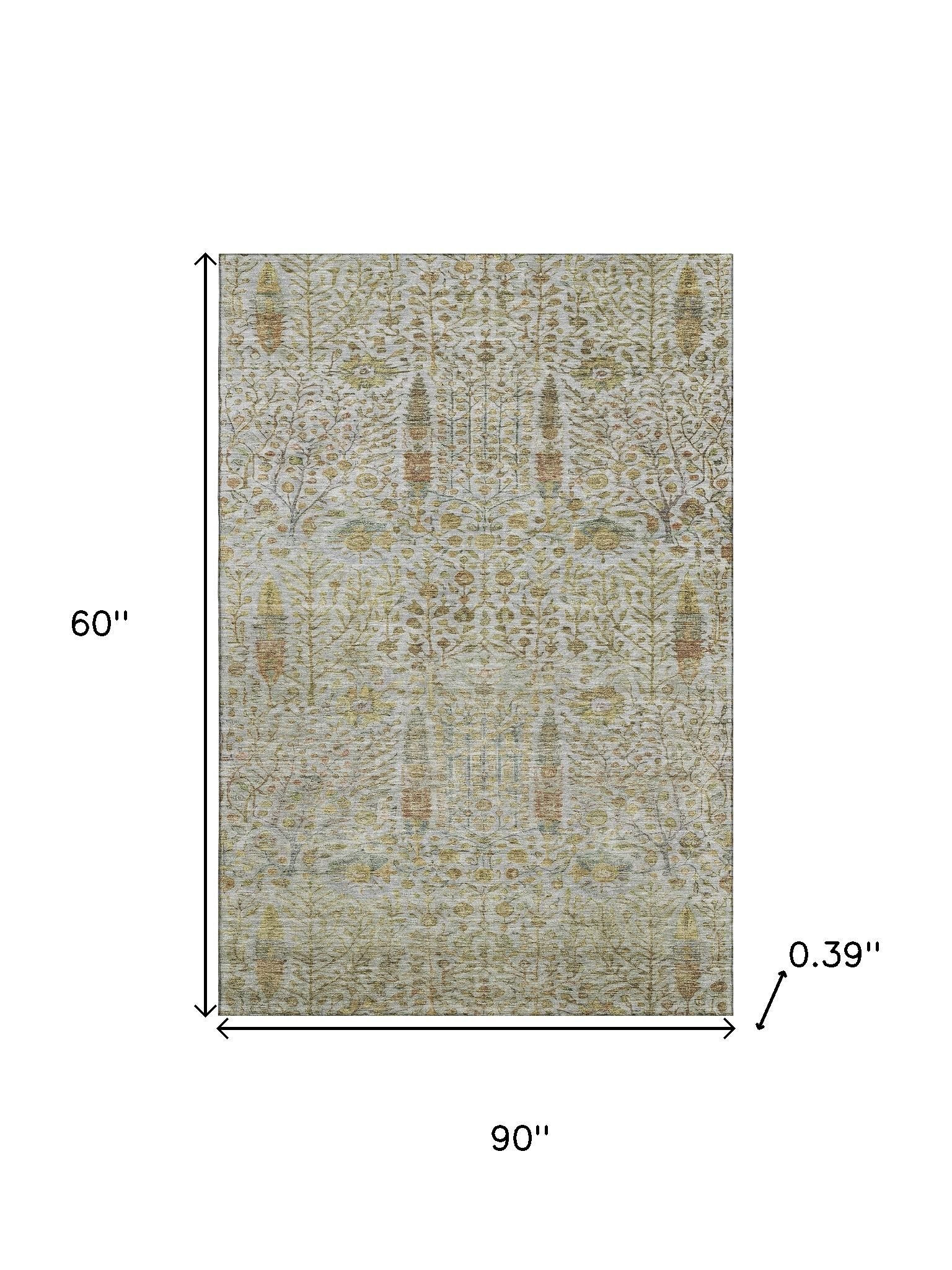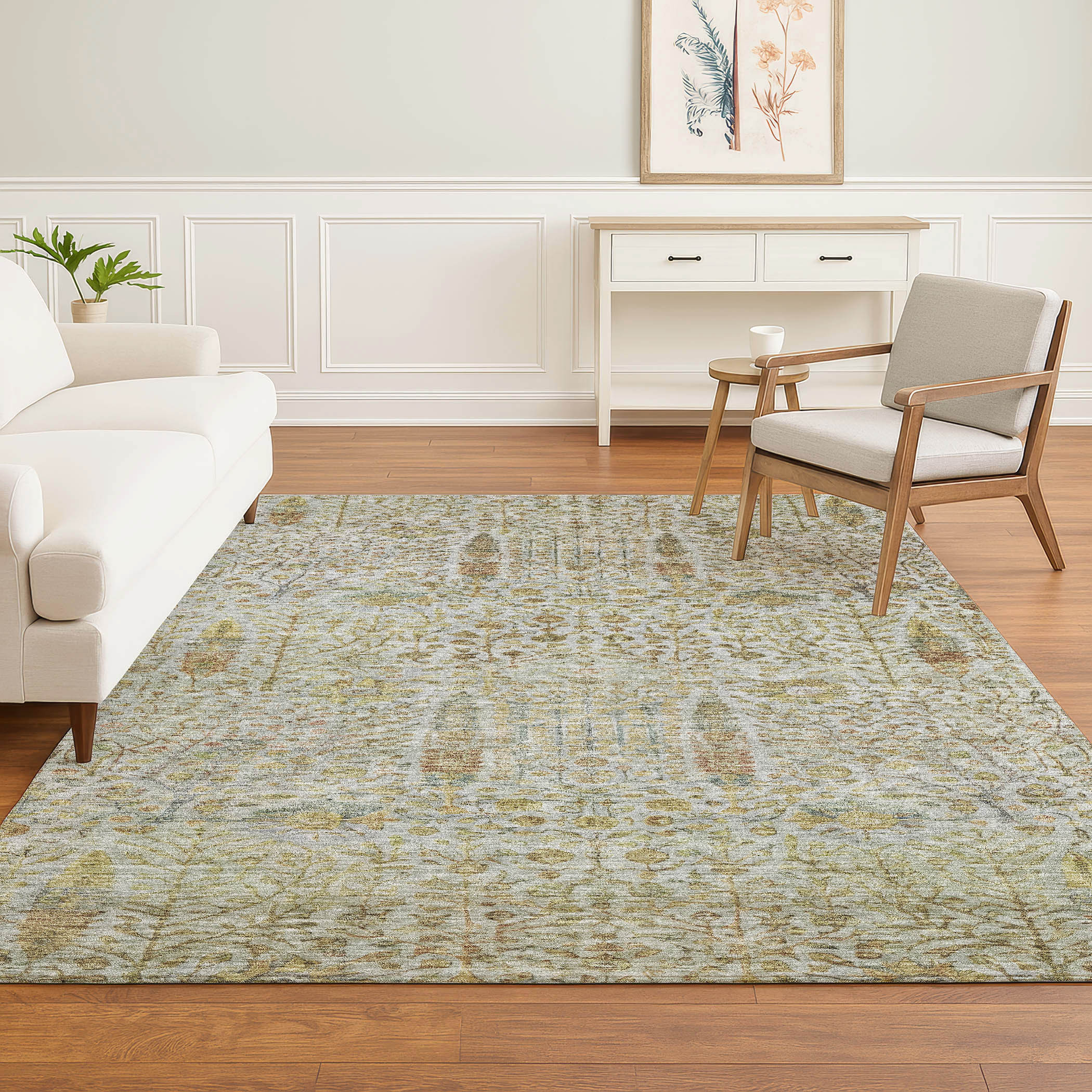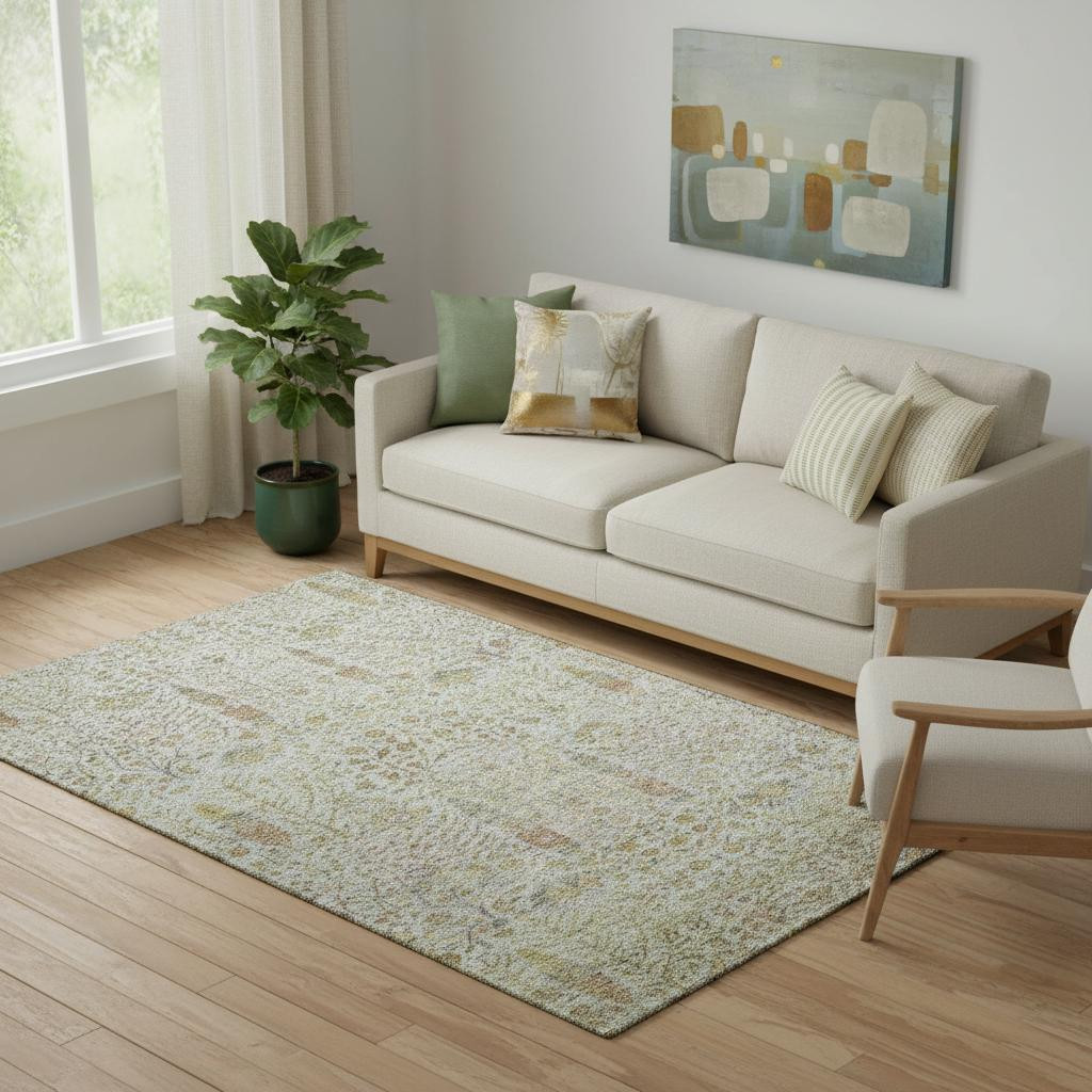 Add some artistry to your room with this 5-foot x 8-foot linen and gold floral vines washable area rug with uv protection. Ideal for spaces with kids and pets, this rug is stain resistant to help repel dirt and spilled liquids. Built to last, this rug crafted from polyester fibers is known for its durability and long lasting appeal. Rugs are a great way to showcase your style, hide imperfections, warm your home and reduce noise. This larger sized, transitional styled rug is ready to create a focal point or statement piece in your room. 60.00-inch h x 90.00-inch w x 0.39-inch d.