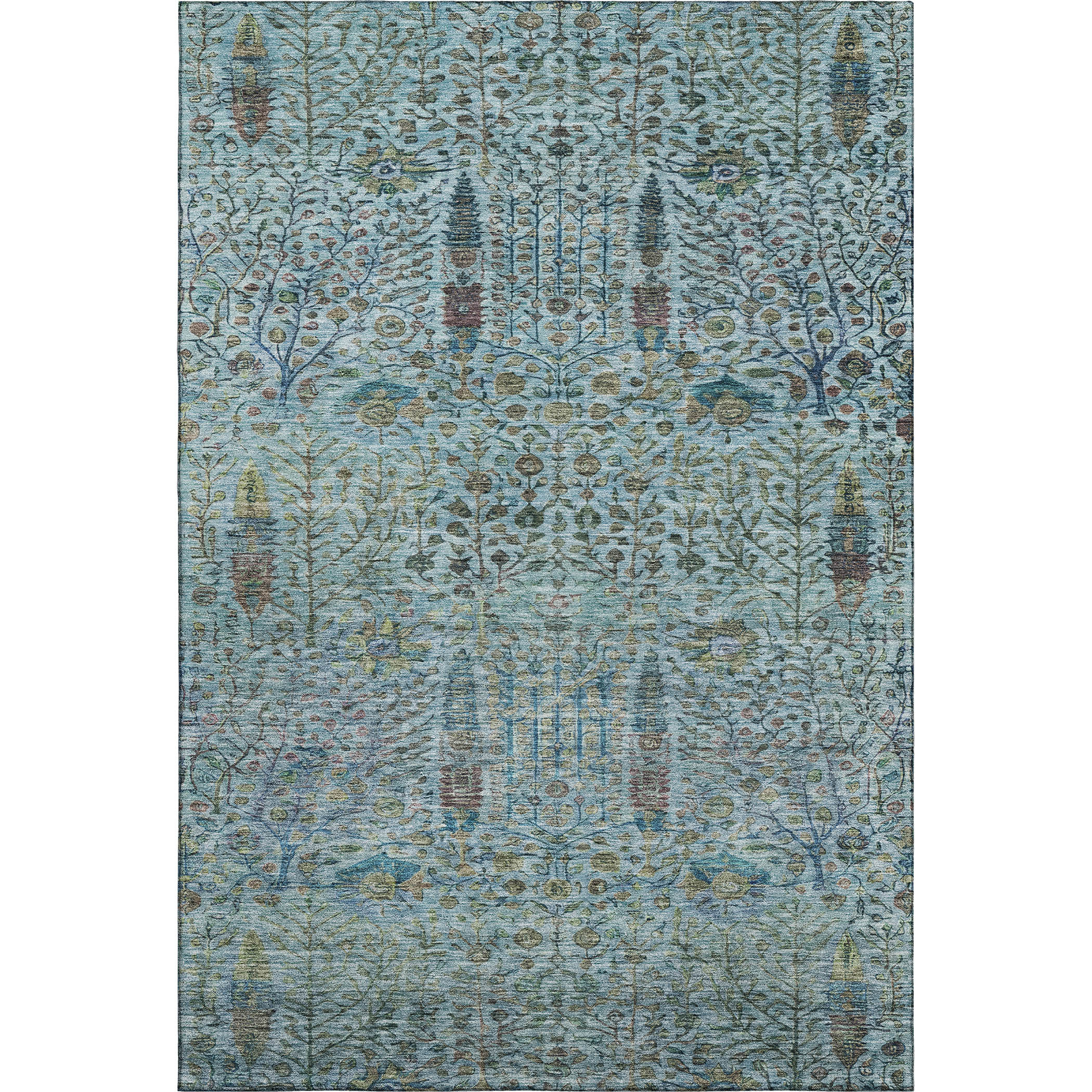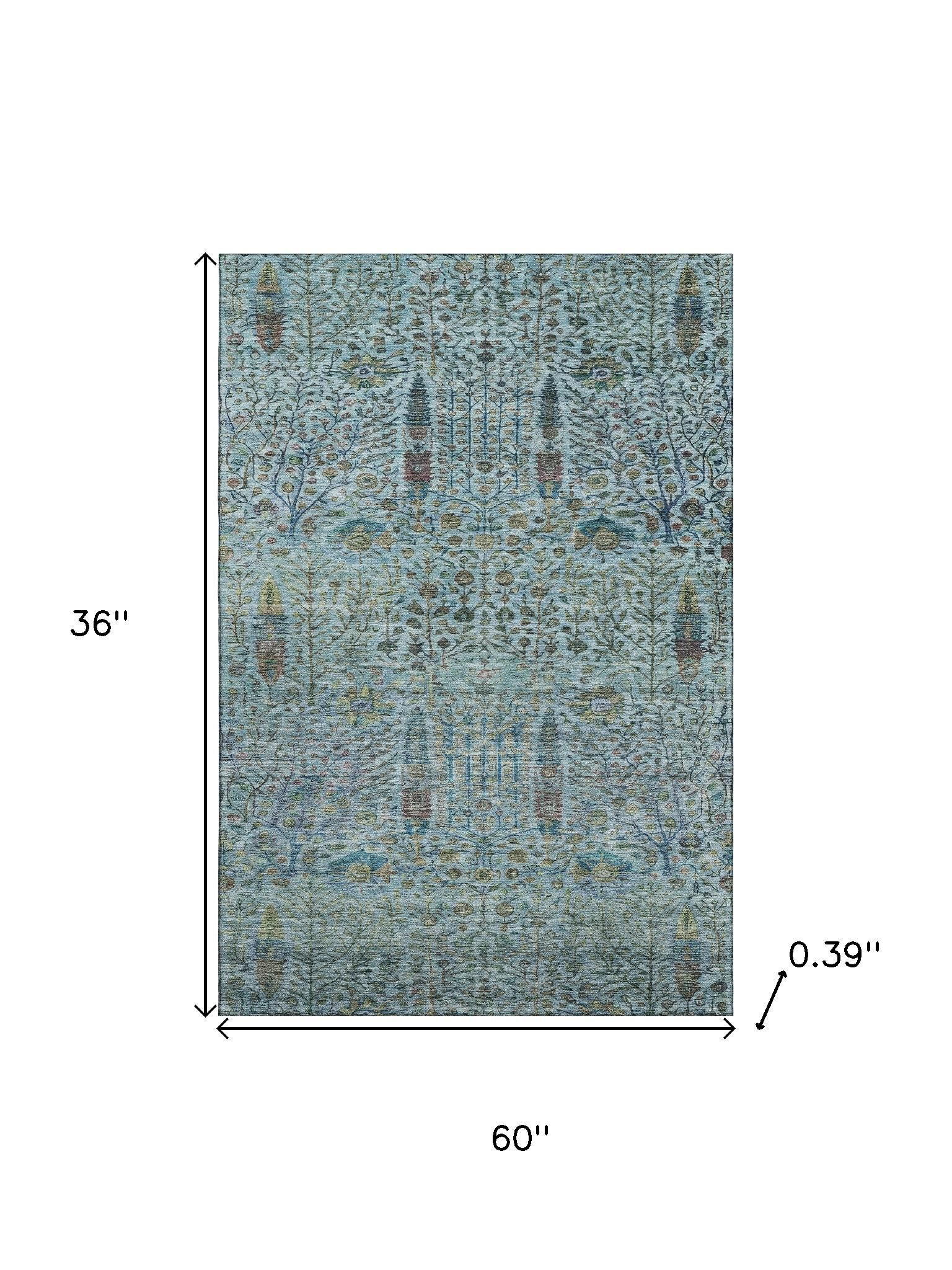 Add some artistry to your room with this 3-foot x 5-foot teal and pale aqua floral vines washable area rug with uv protection. Ideal for spaces with kids and pets, this rug is stain resistant to help repel dirt and spilled liquids. Built to last, this rug crafted from polyester fibers is known for its durability and long lasting appeal. Rugs are a great way to showcase your style, hide imperfections, warm your home and reduce noise. This smaller sized, transitional styled rug is just what you need for your walkway, bedside, in front of door, cabinet, refrigerator, or chair. 36.00-inch h x 60.00-inch w x 0.39-inch d.