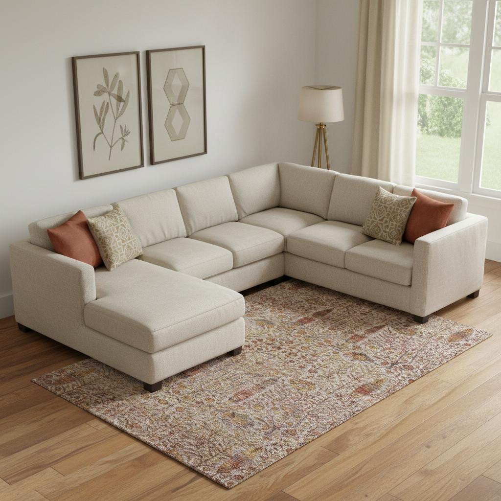 This 9-foot x 12-foot terra cotta and beige floral vines washable area rug with uv protection, is a great way to add warmth to a room. Ideal for spaces with kids and pets, this rug is stain resistant to help repel dirt and spilled liquids. Built to last, this rug crafted from polyester fibers is known for its durability and long lasting appeal. Rugs are a great way to showcase your style, hide imperfections, warm your home and reduce noise. This larger sized, transitional styled rug is ready to create a focal point or statement piece in your room. 108.00-inch h x 144.00-inch w x 0.39-inch d.