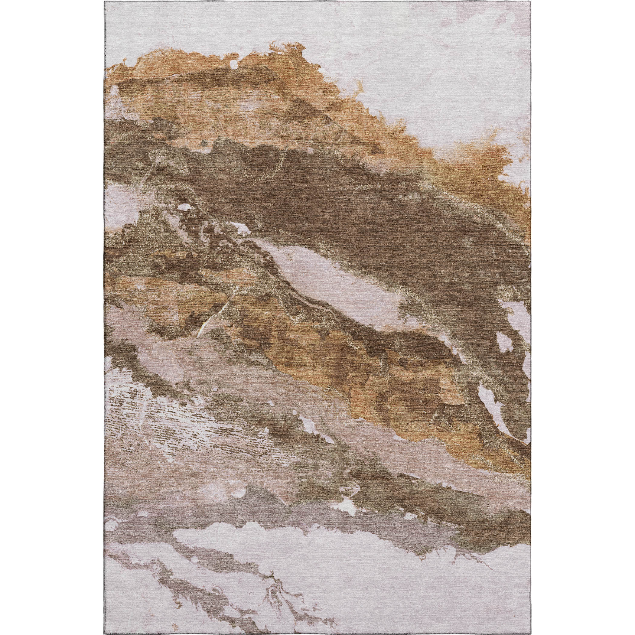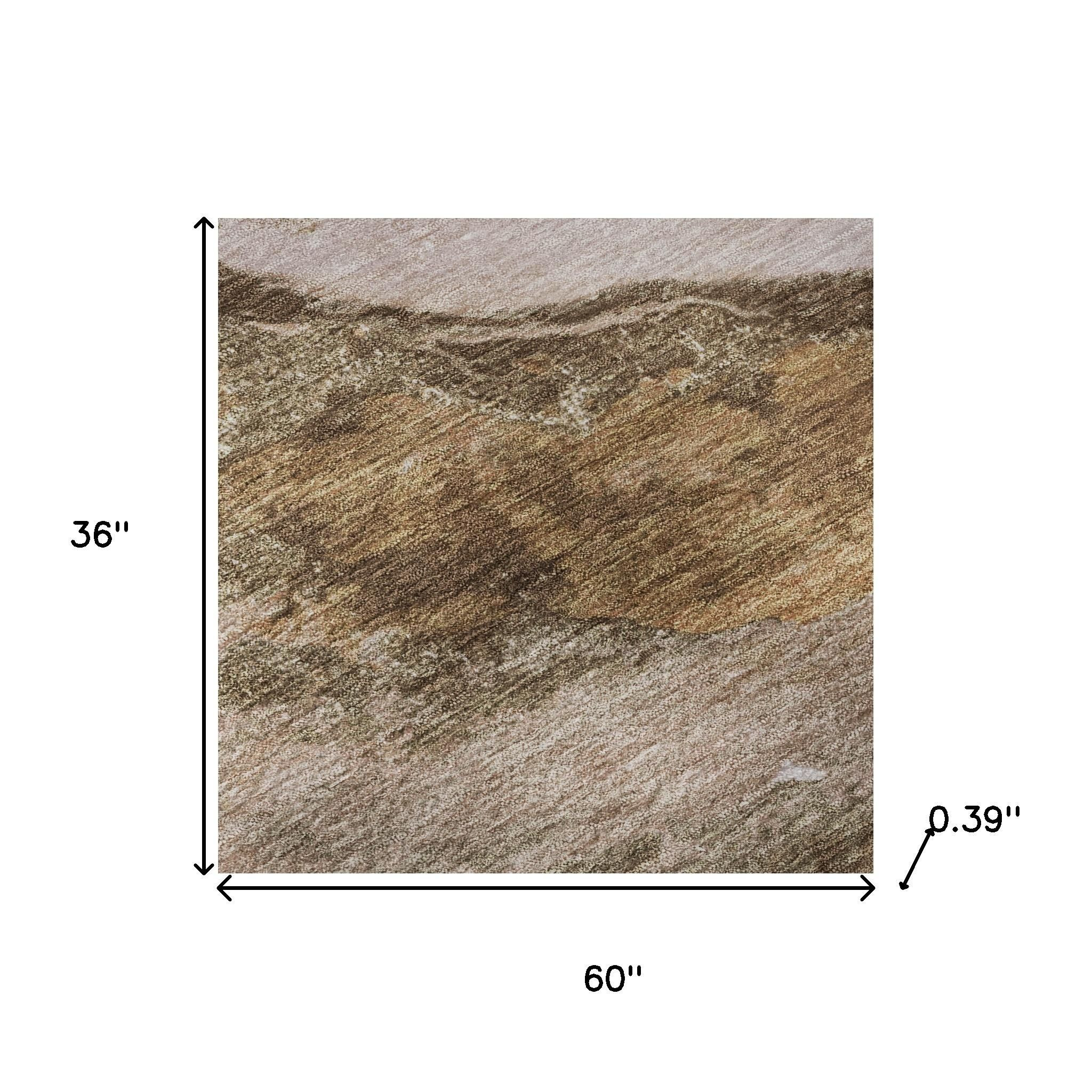 Add some artistry to your room with this 3-foot x 5-foot brown and ivory abstract washable area rug with uv protection. Ideal for spaces with kids and pets, this rug is stain resistant to help repel dirt and spilled liquids. Built to last, this rug crafted from polyester fibers is known for its durability and long lasting appeal. Rugs are a great way to showcase your style, hide imperfections, warm your home and reduce noise. This smaller sized, transitional styled rug is just what you need for your walkway, bedside, in front of door, cabinet, refrigerator, or chair. 36.00-inch h x 60.00-inch w x 0.39-inch d.